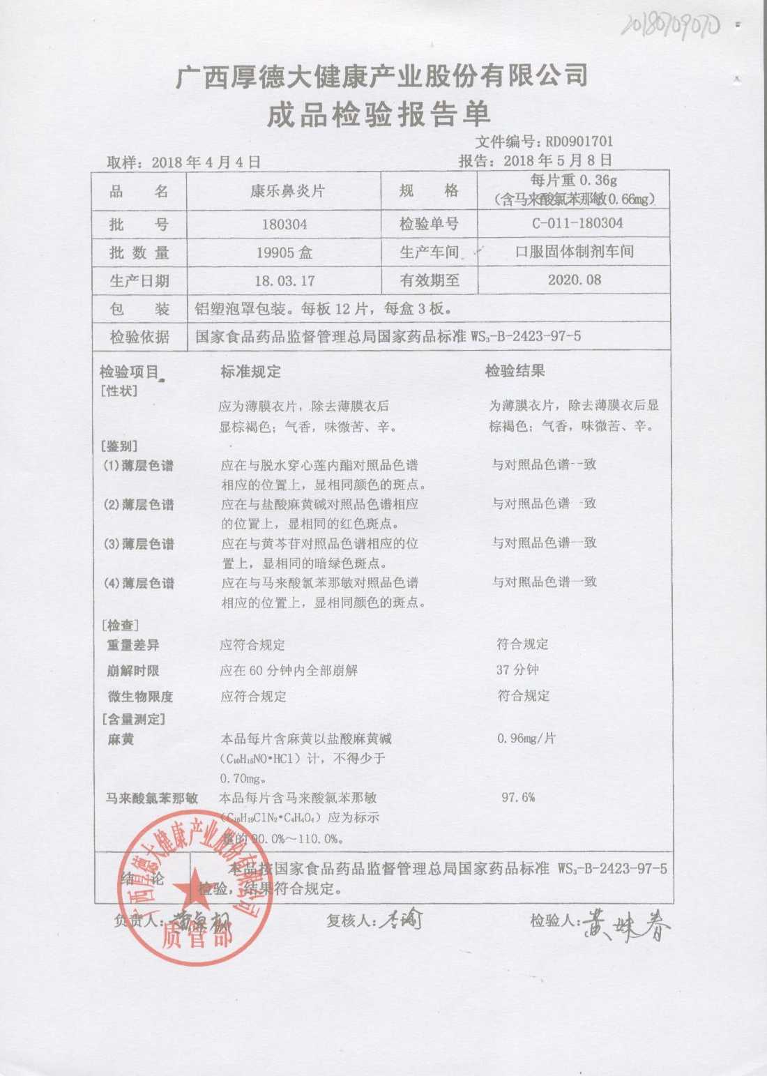 | 康樂鼻炎片 | 0.36g*36粒 | 190802 | 查看詳情 |