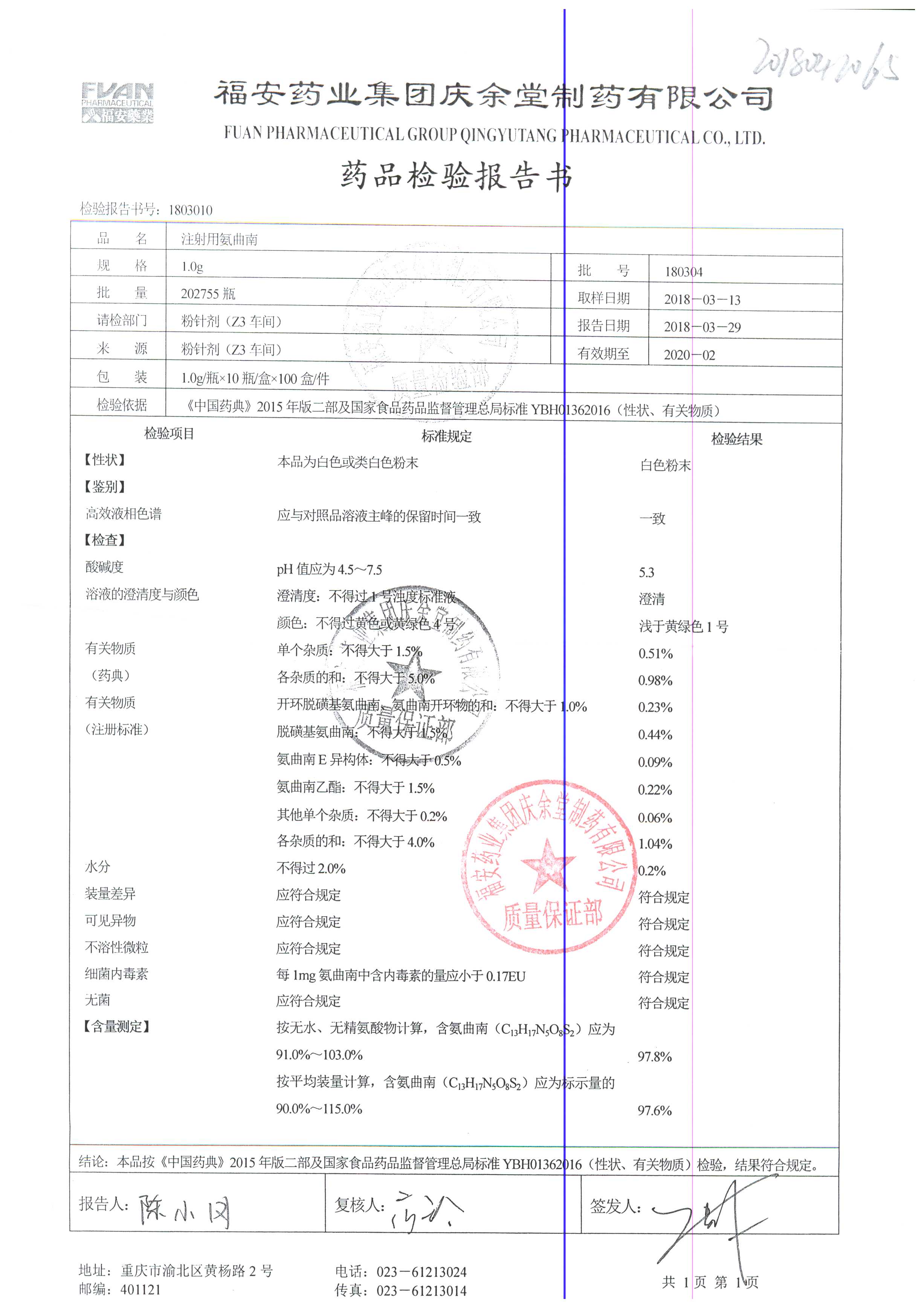 | 名稱(chēng) | 規(guī)格 | 批號(hào) | 藥檢報(bào)告 |