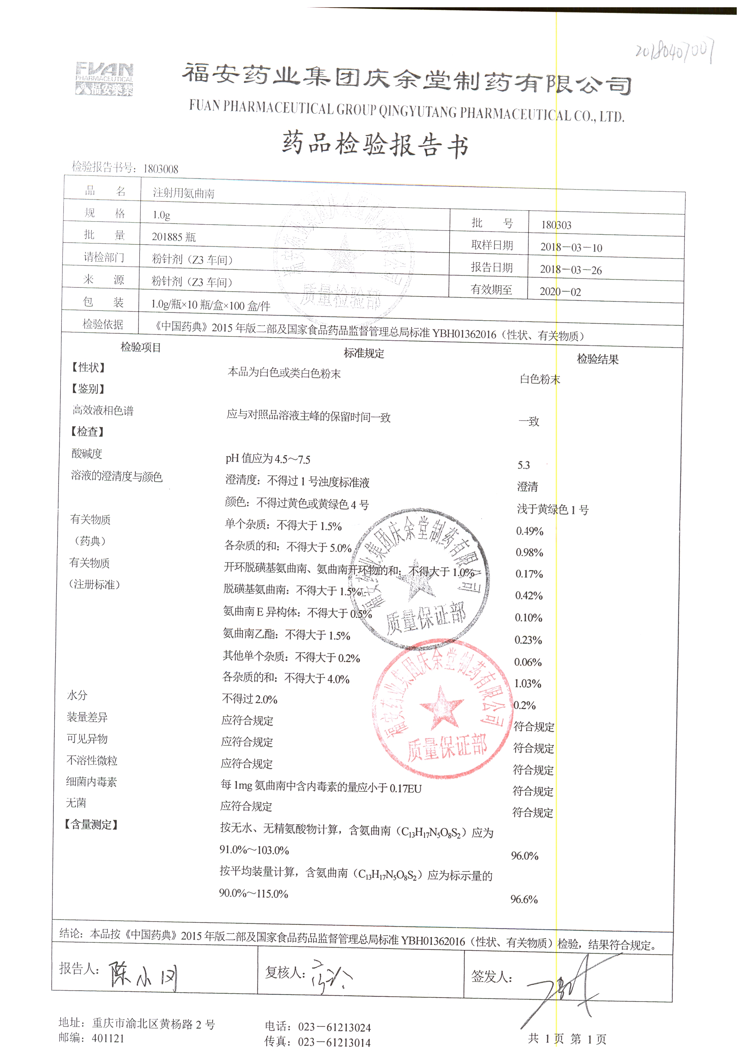 | 注射用氨曲南 | 1.0g | 180305 | 查看詳情 |