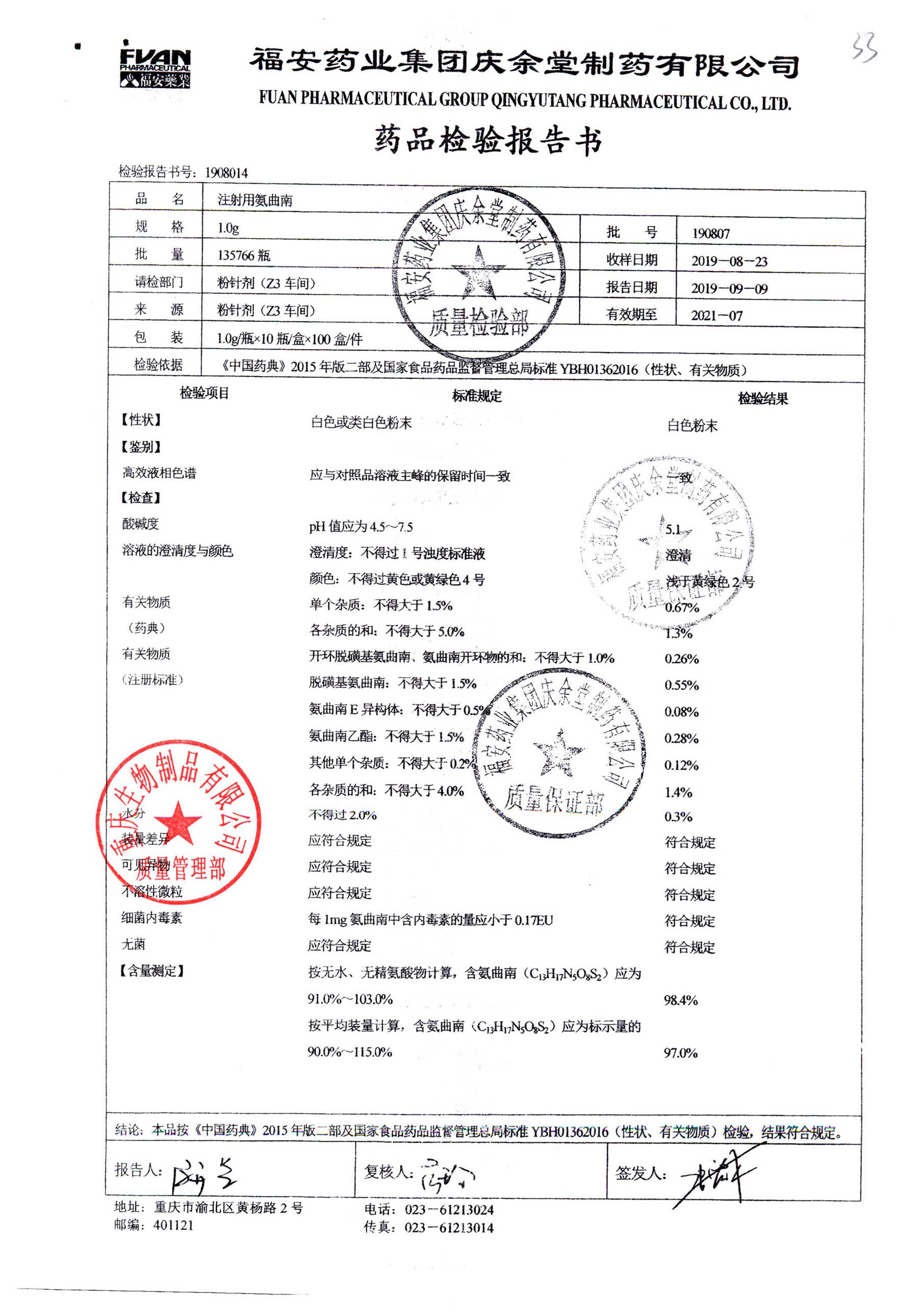 | 注射用氨曲南 | 1.0g | 190808 | 查看詳情 |