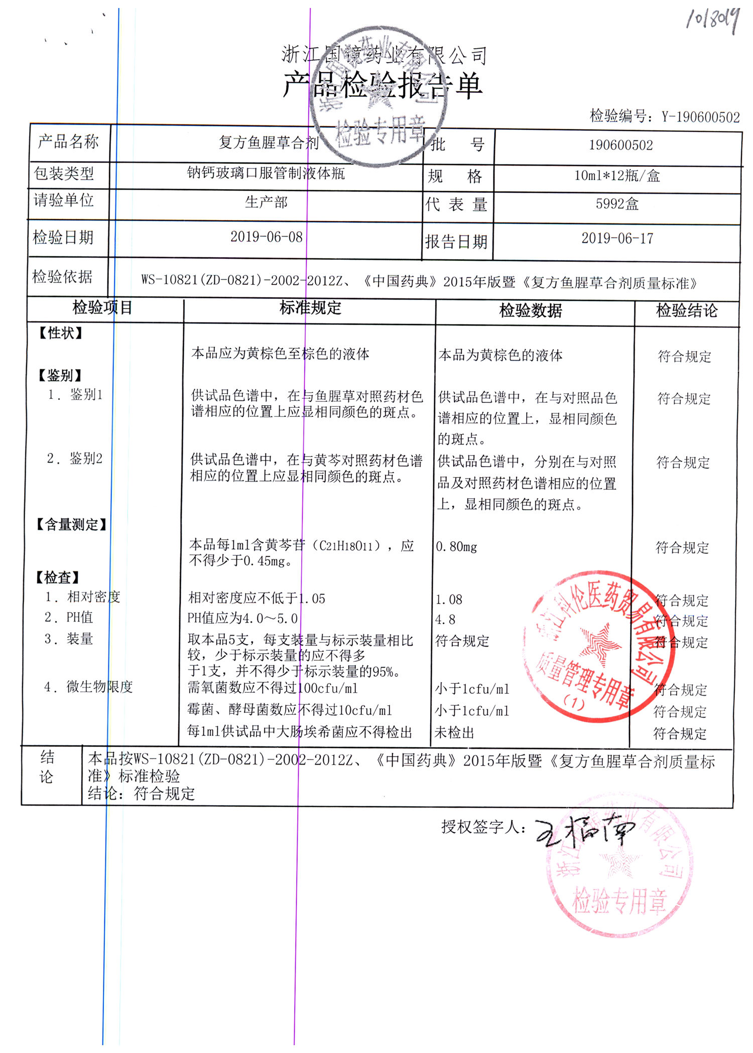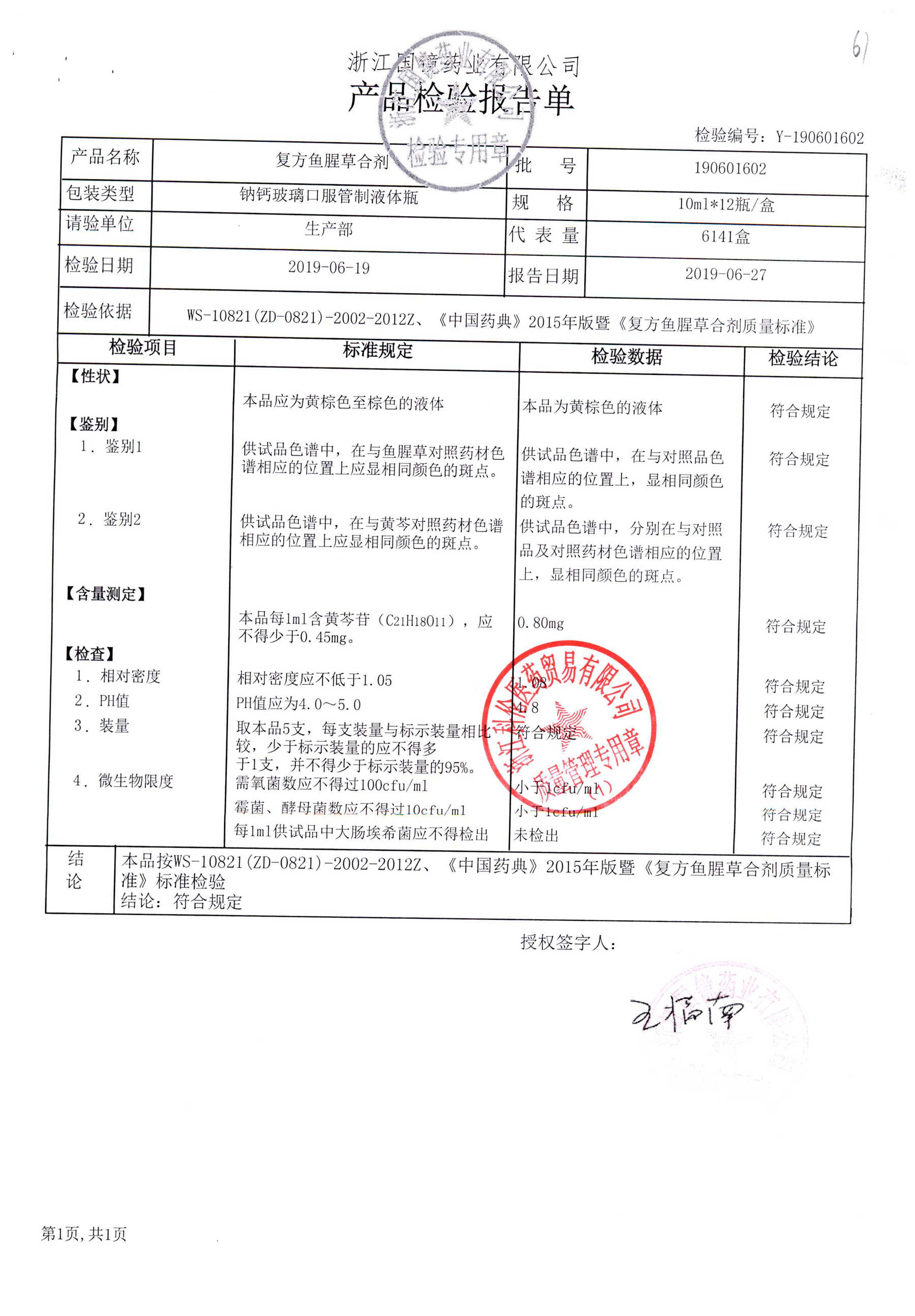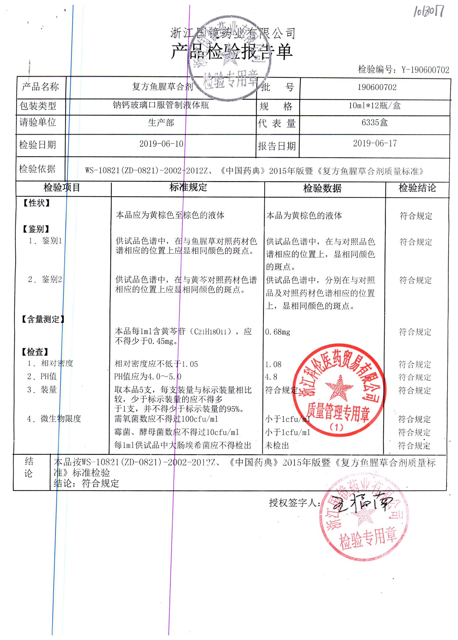 復方魚腥草合劑 10ml 190601602 查看詳情