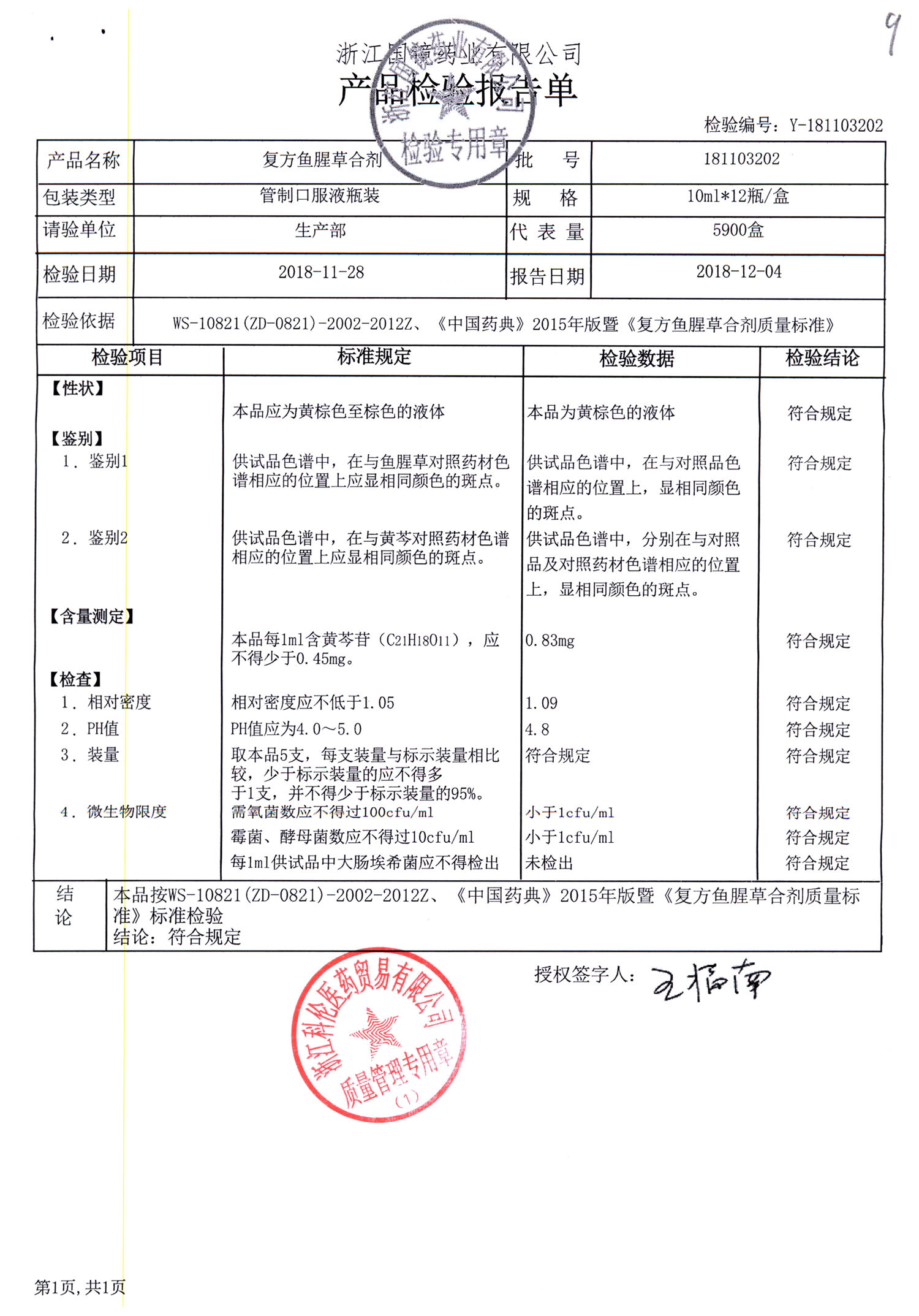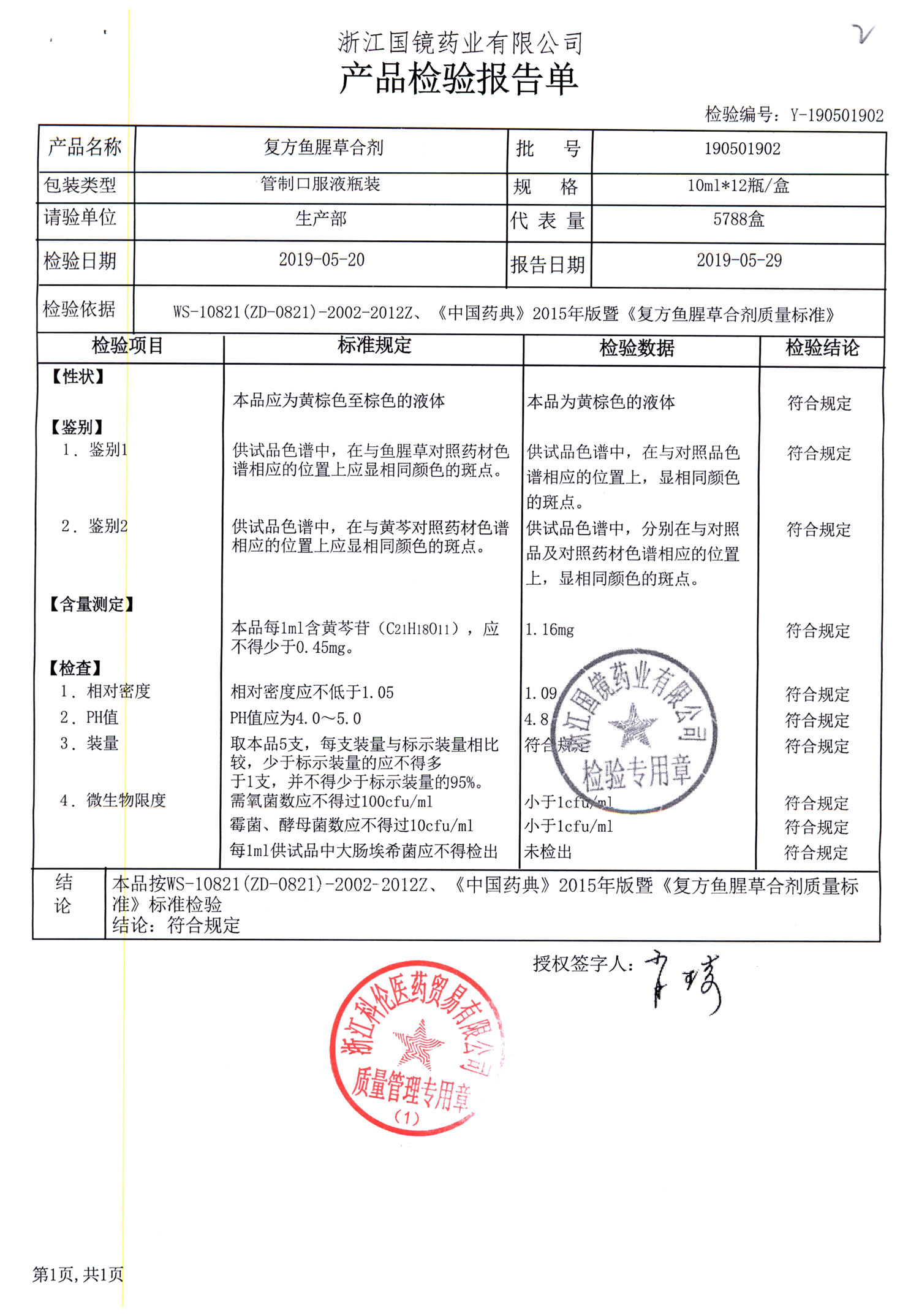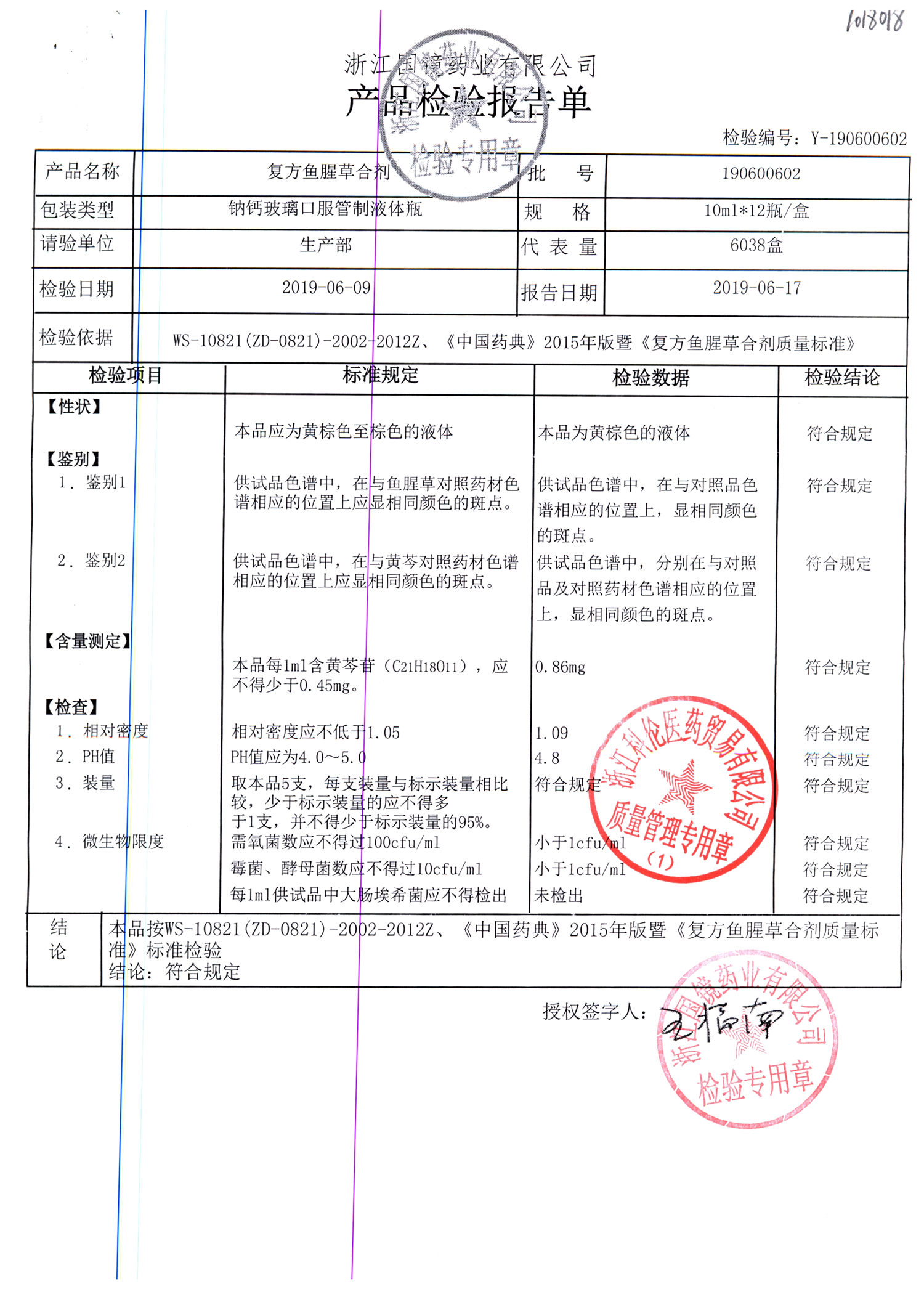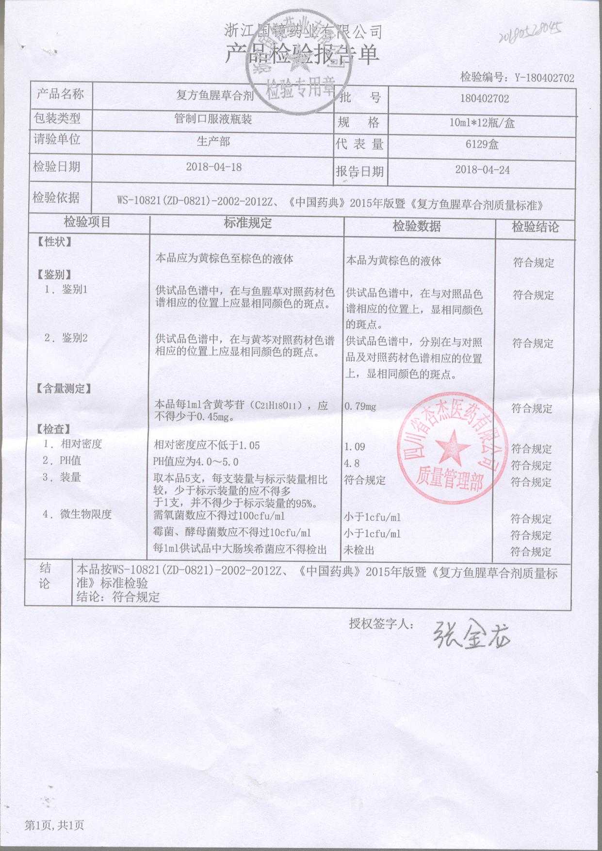 復方魚腥草合劑 10ml 190601602 查看詳情