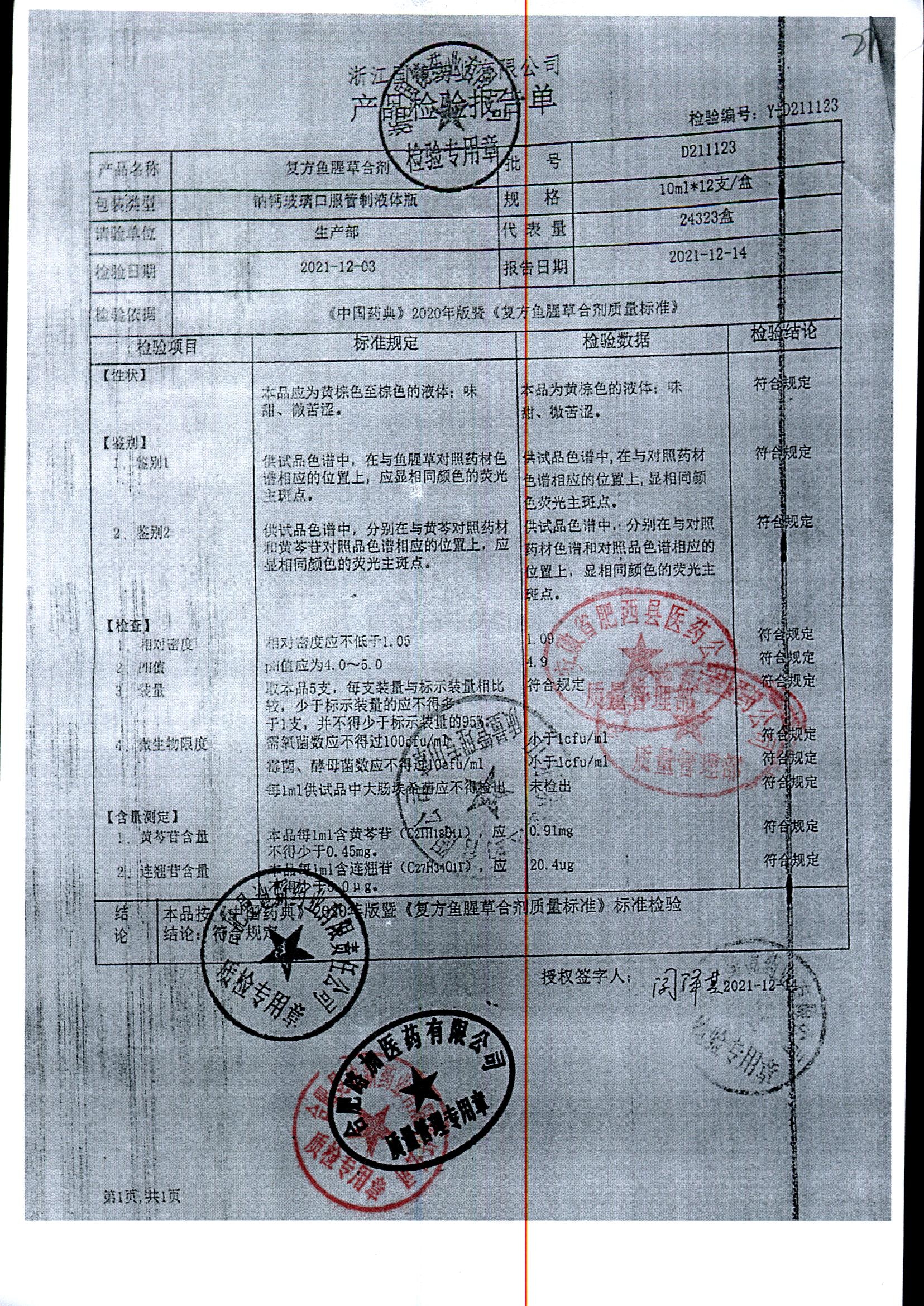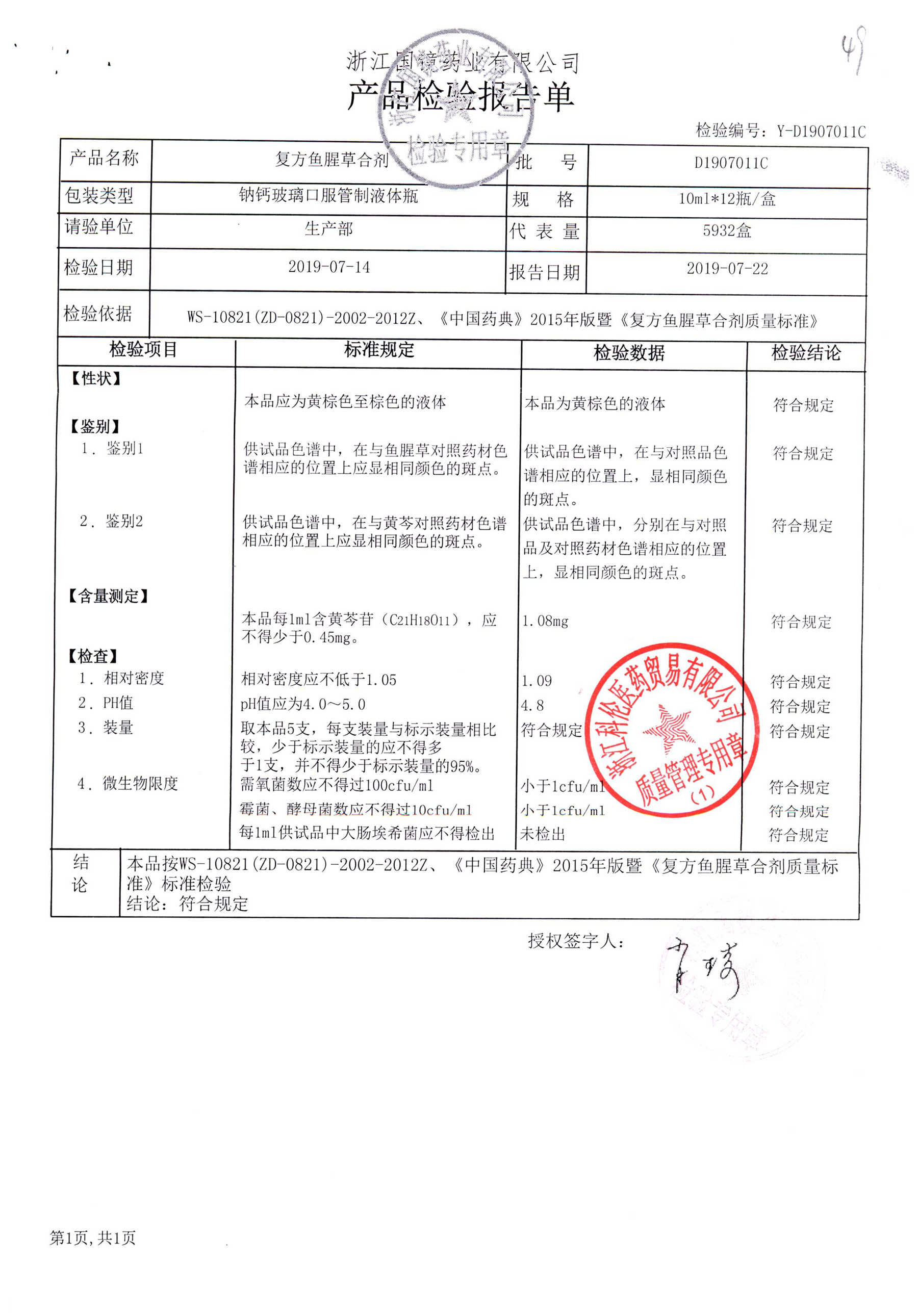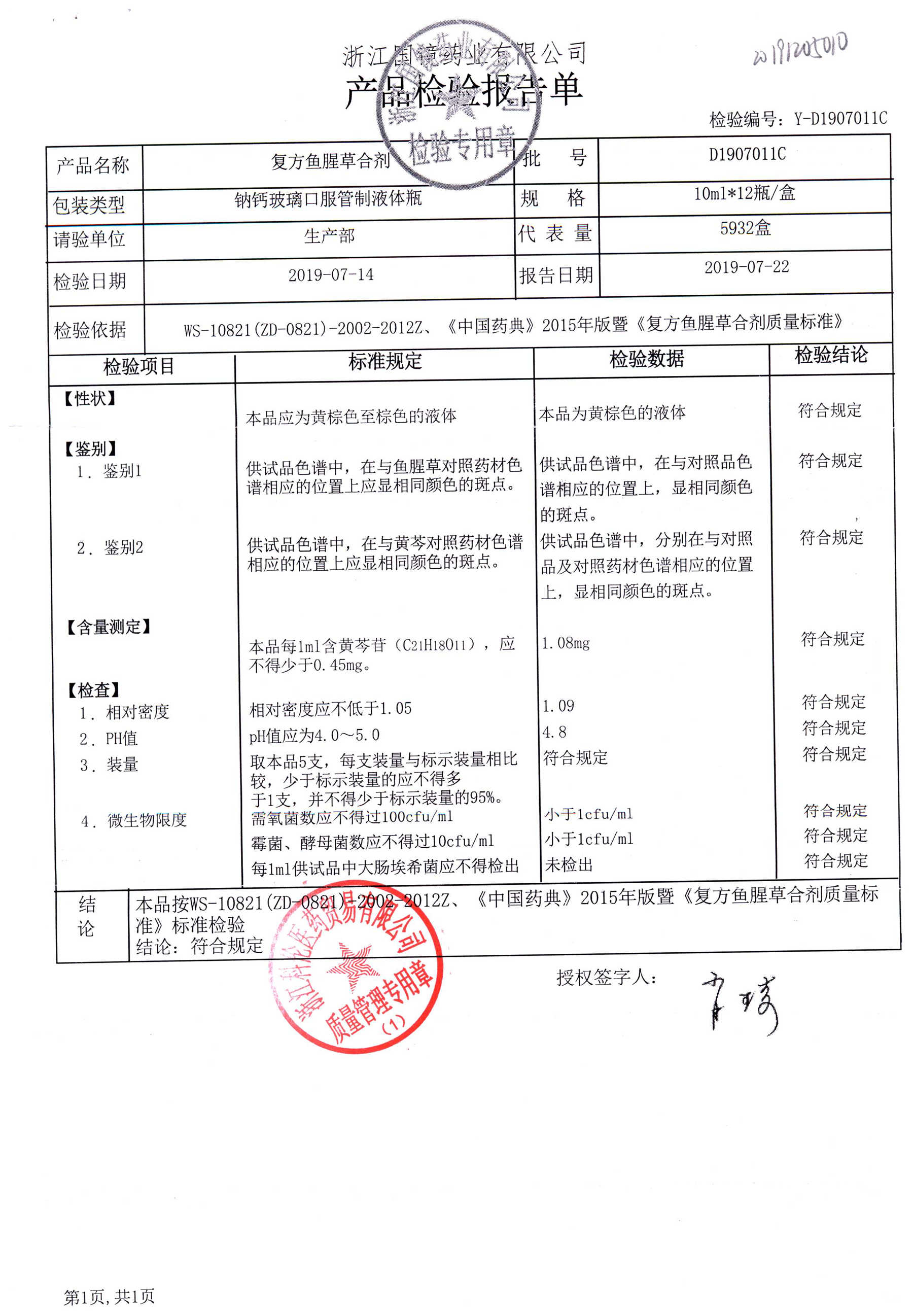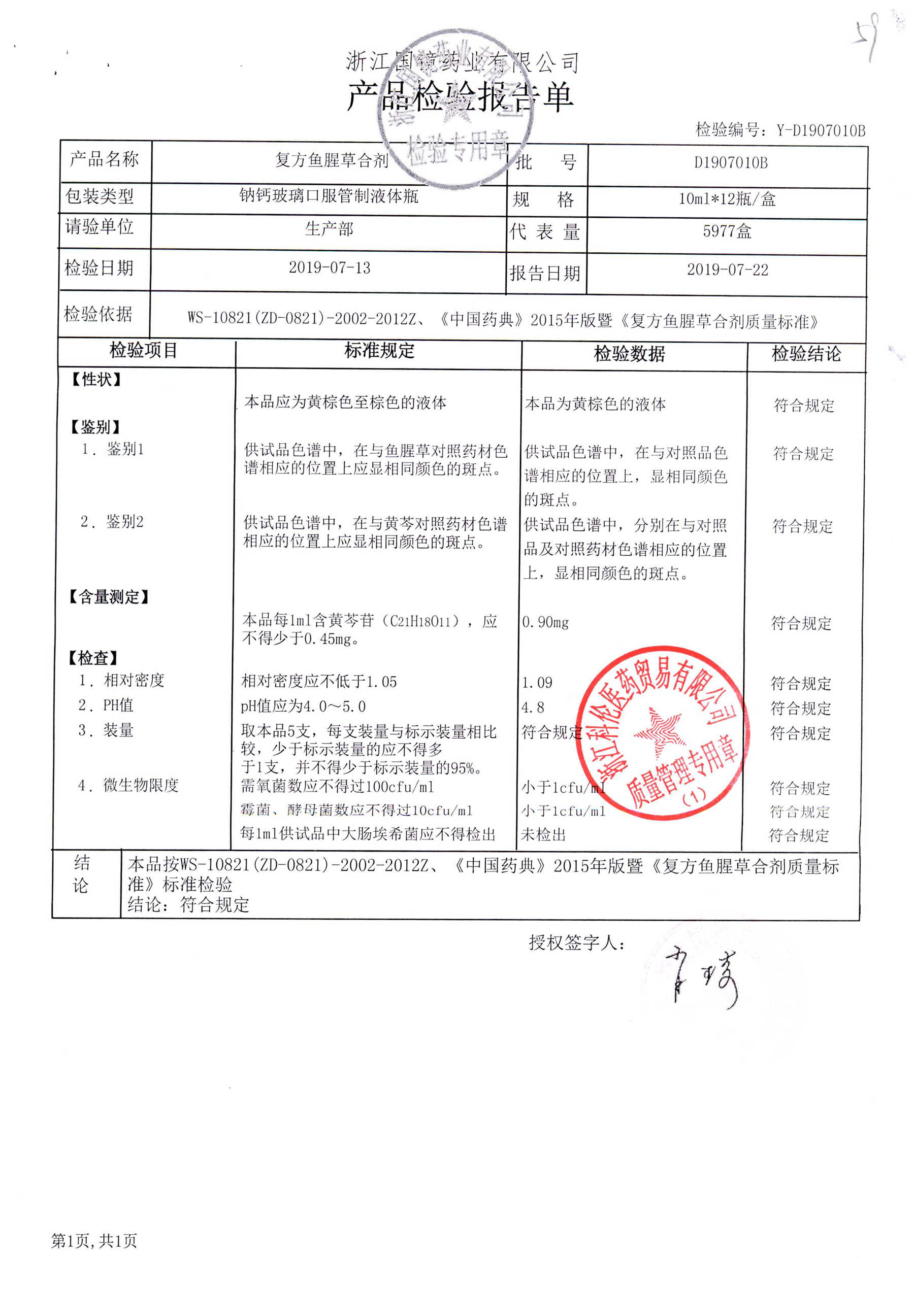 復方魚腥草合劑 10ml D1907011C 查看詳情