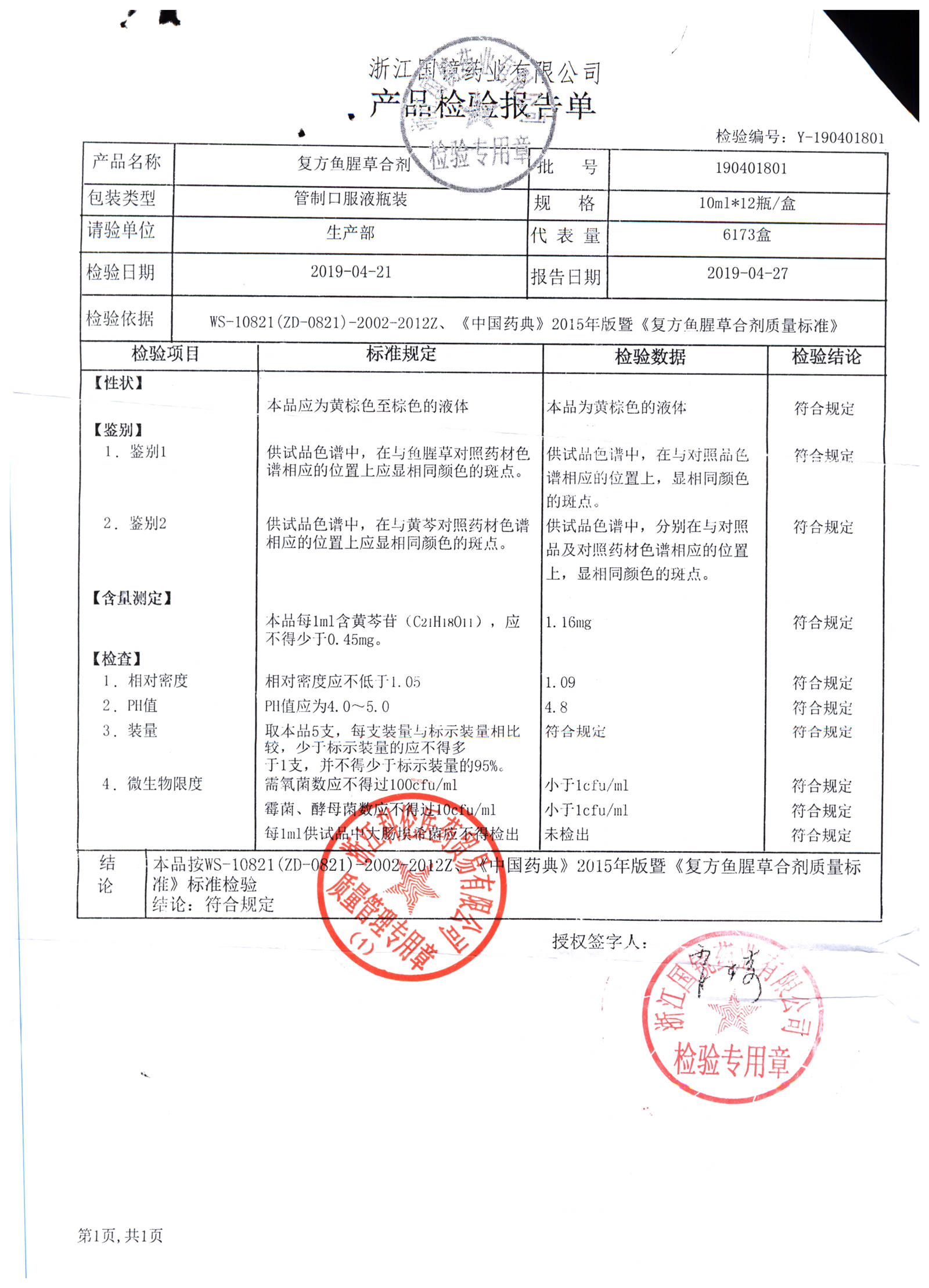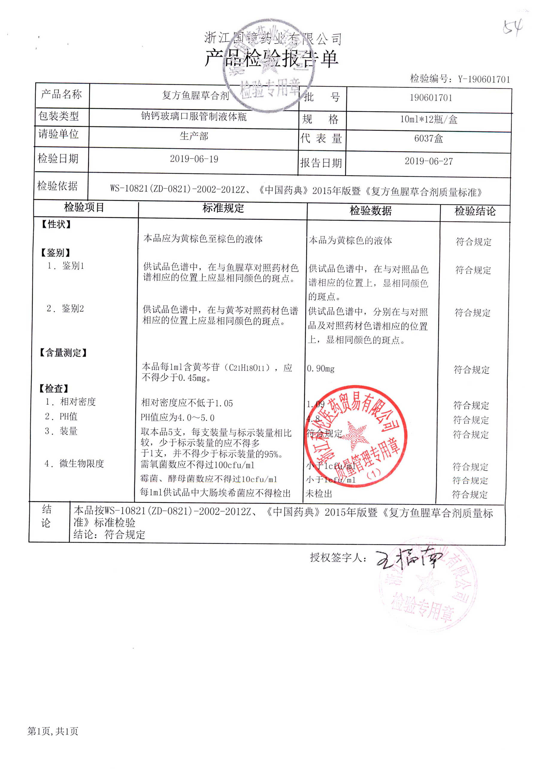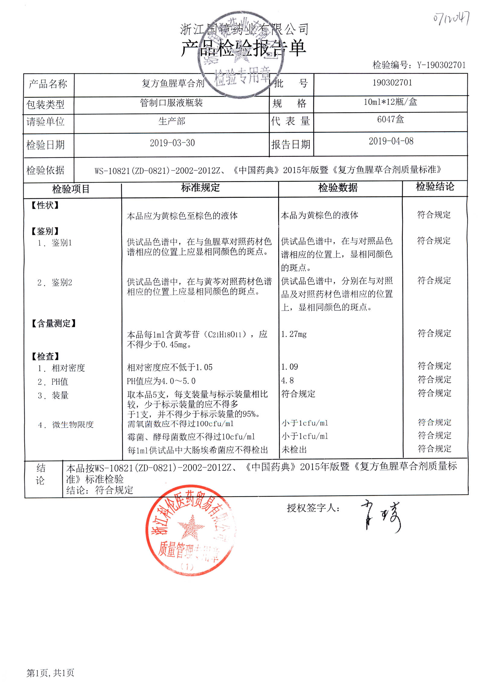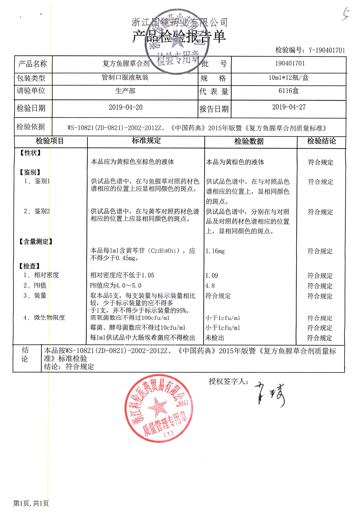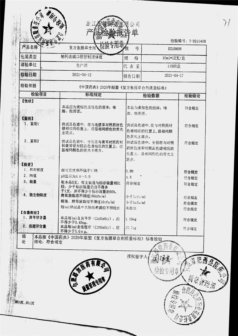 復方魚腥草合劑 10ml D1907011C 查看詳情