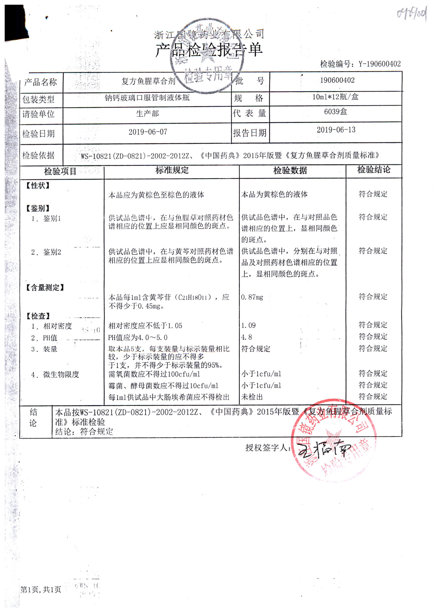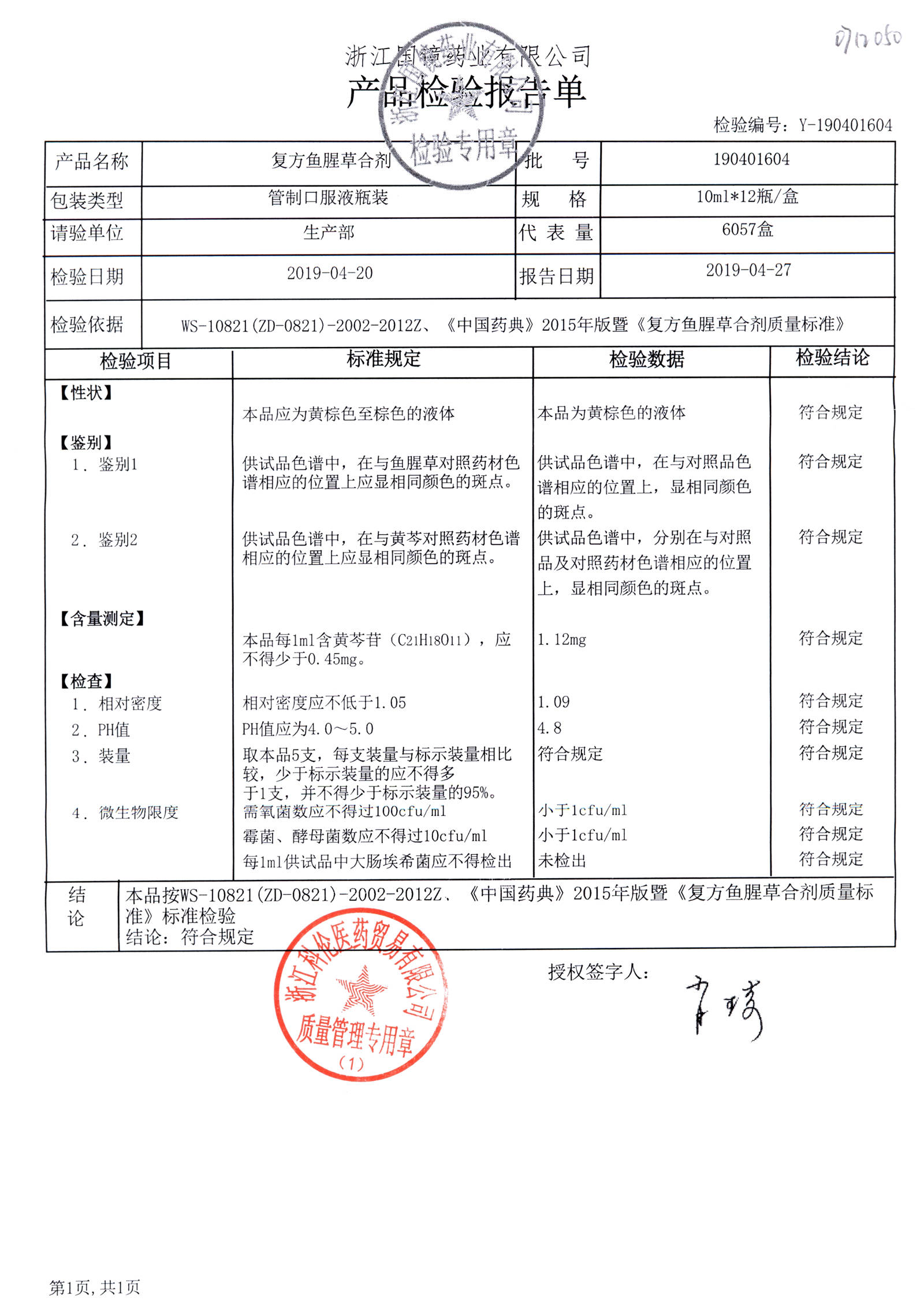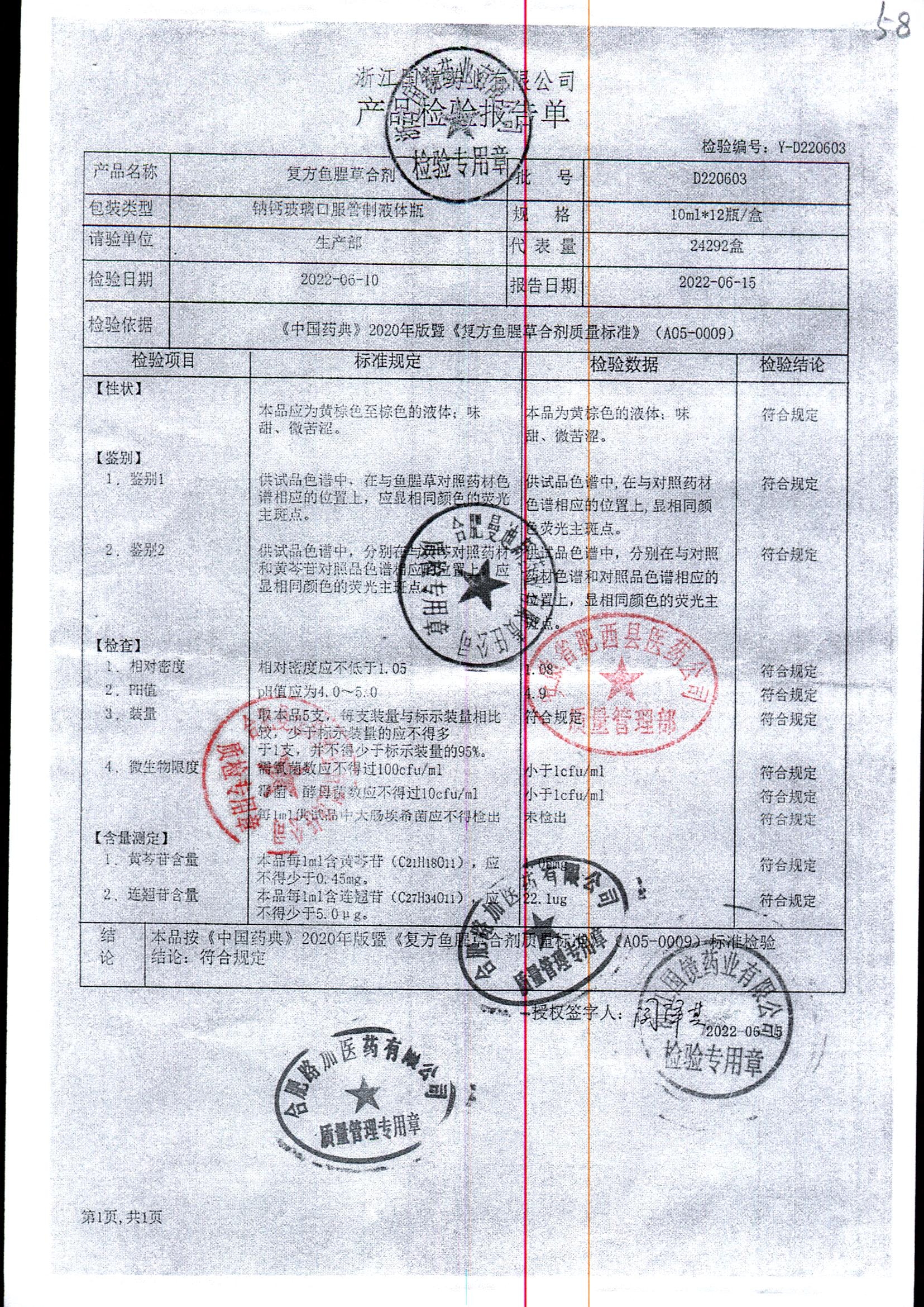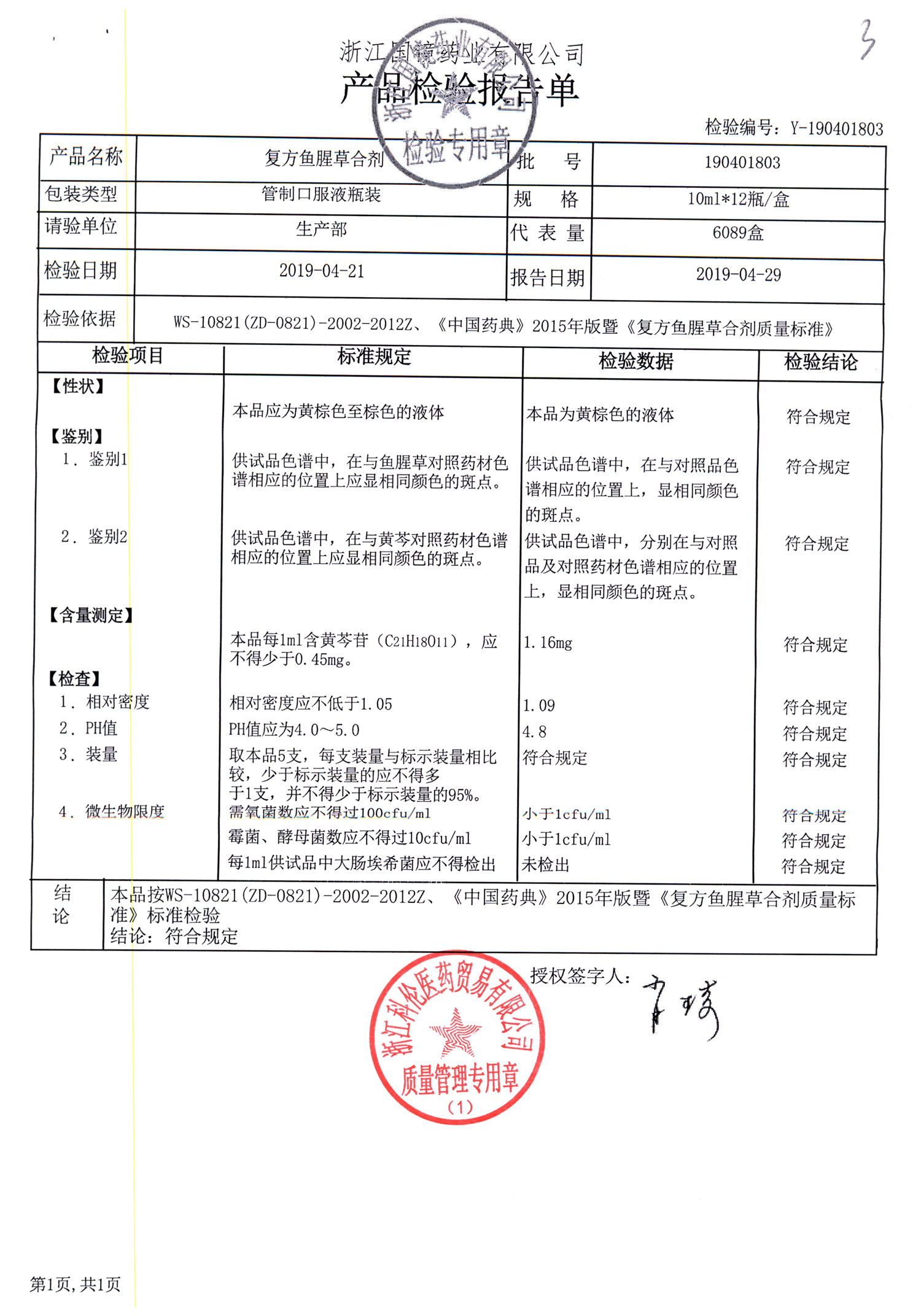 復方魚腥草合劑 10ml D1907011C 查看詳情