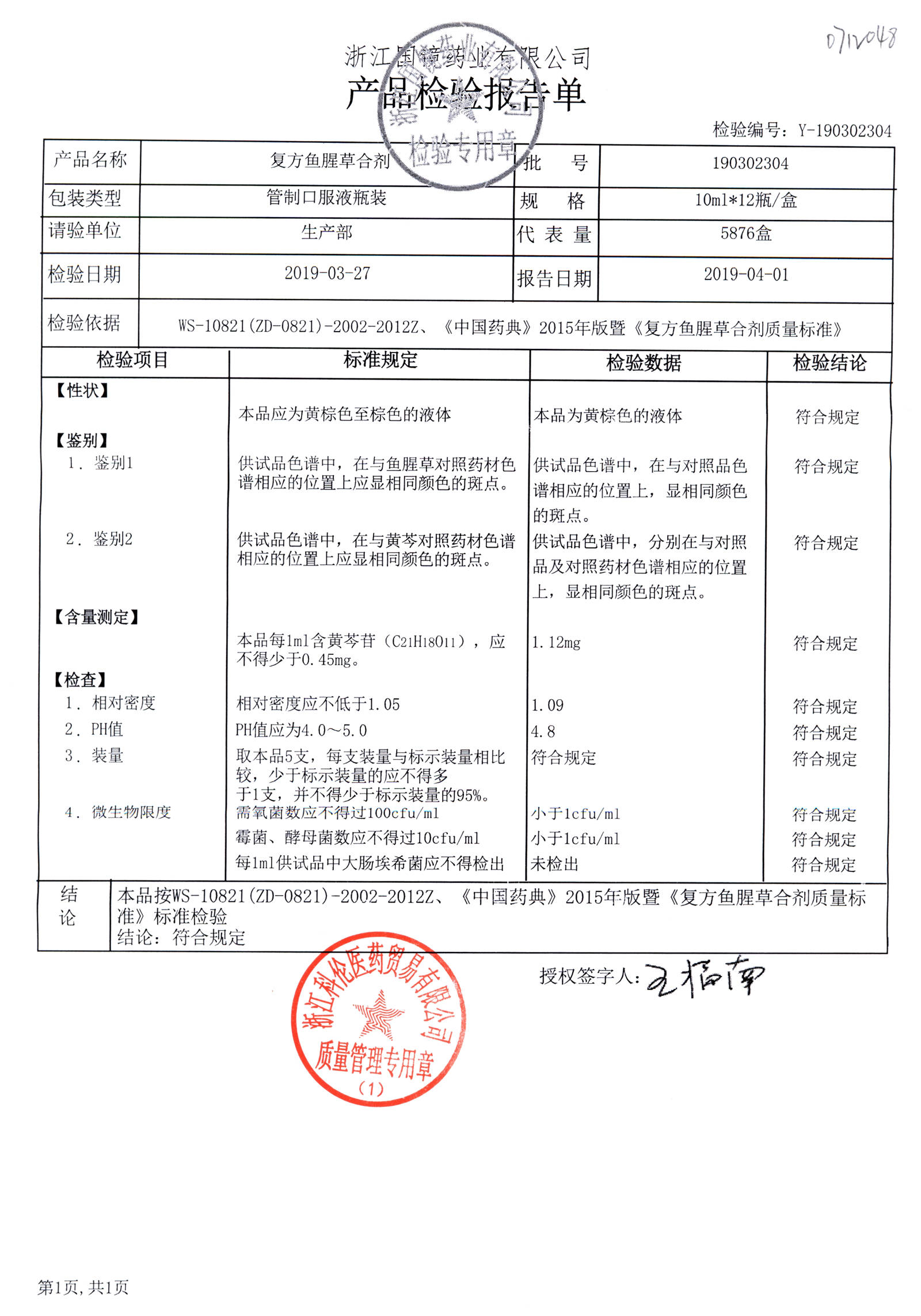 復方魚腥草合劑 10ml 190302304 查看詳情