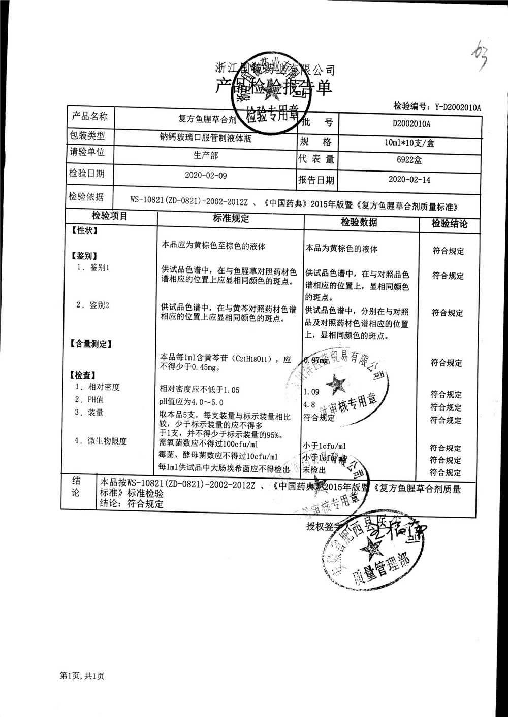 復方魚腥草合劑 10ml D2002010A 查看詳情