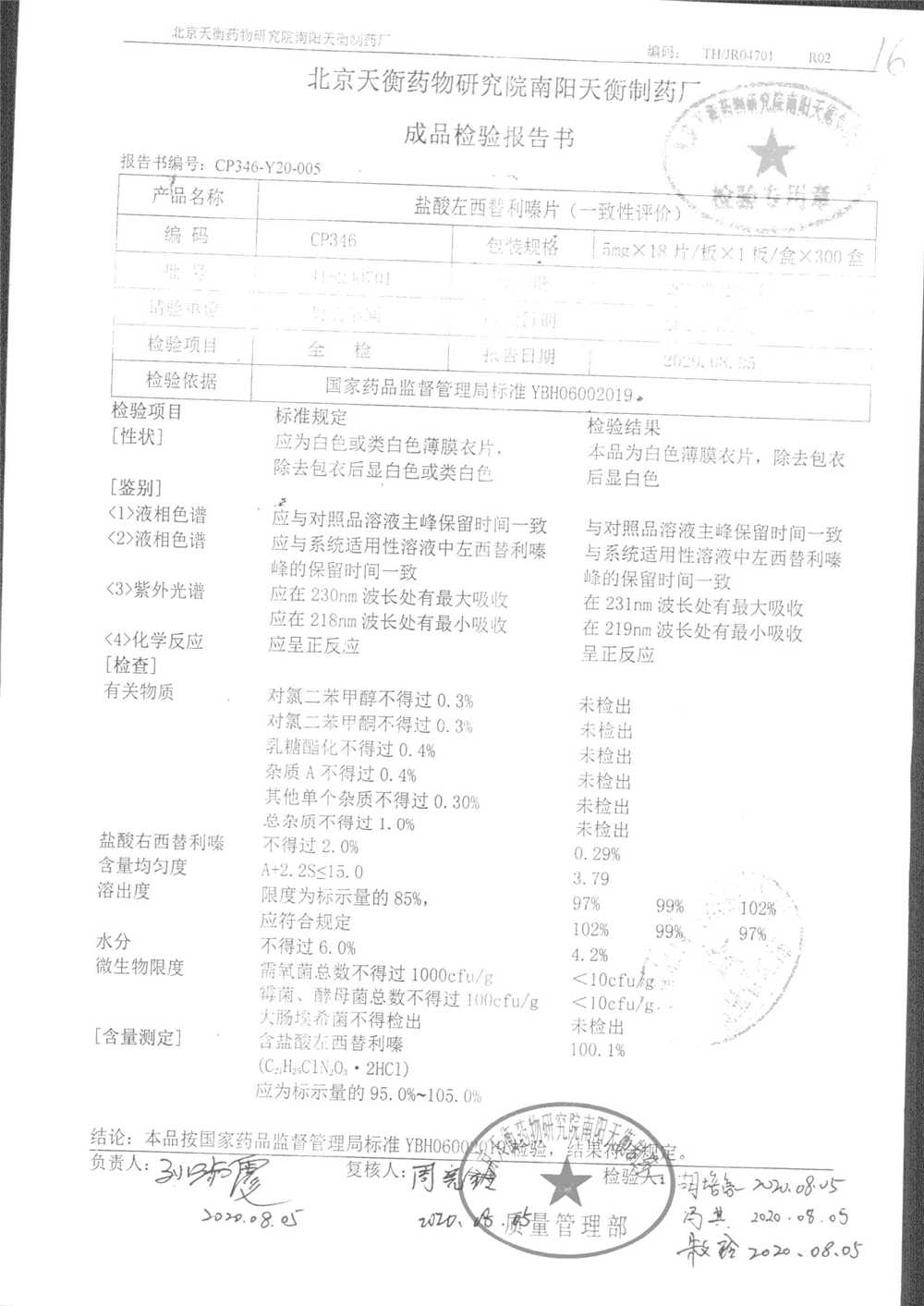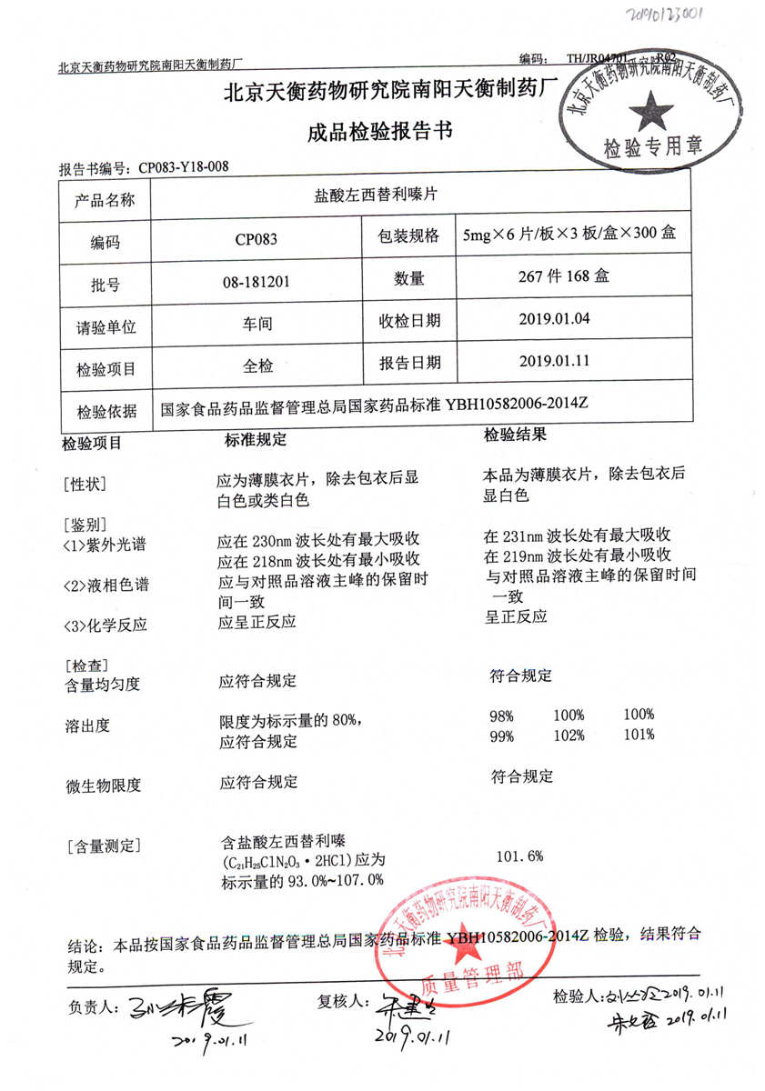 鹽酸左西替利嗪片 5mg*18s 41-191002 查看詳情
