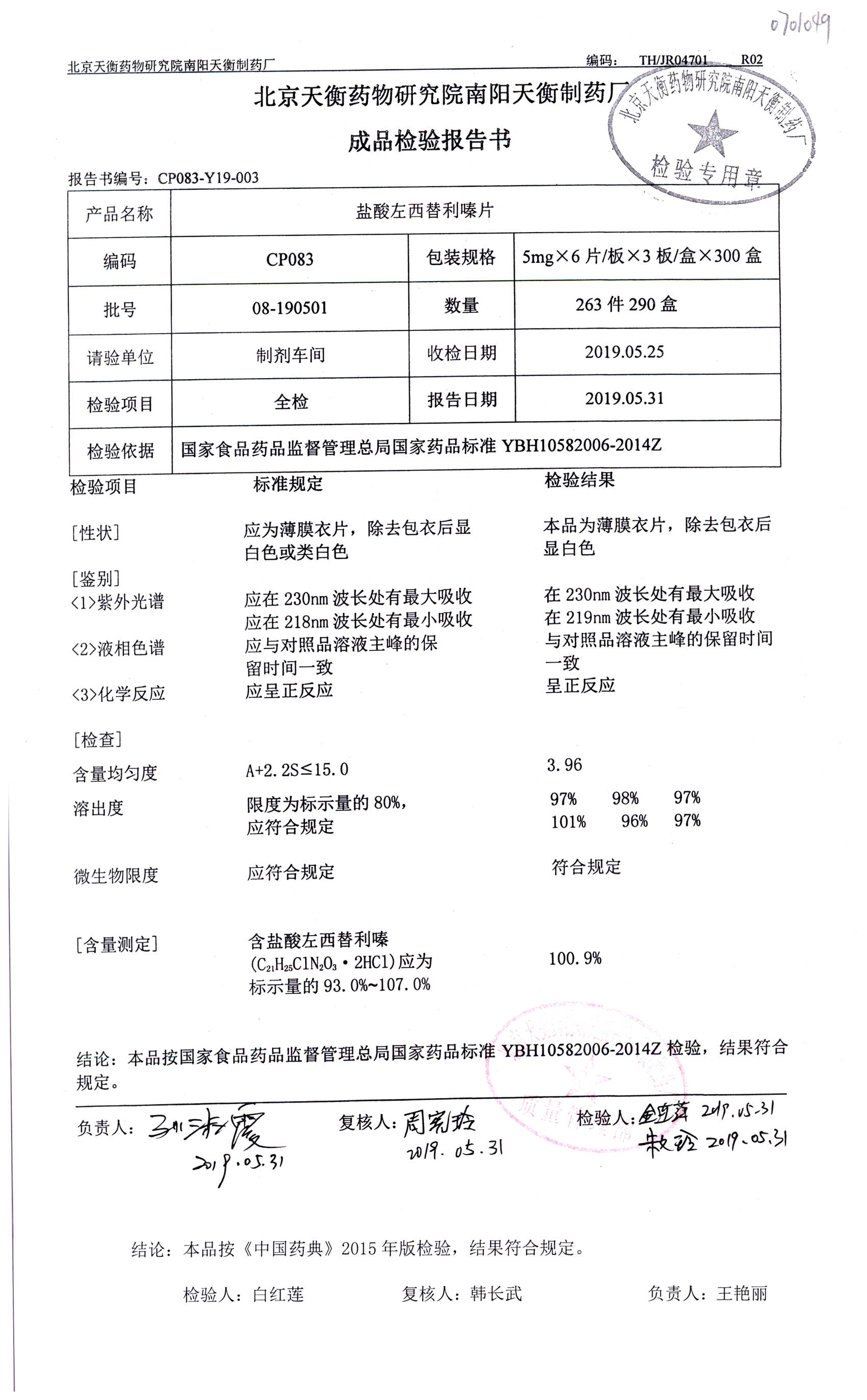 鹽酸左西替利嗪片 5mg*18s 08-190203 查看詳情