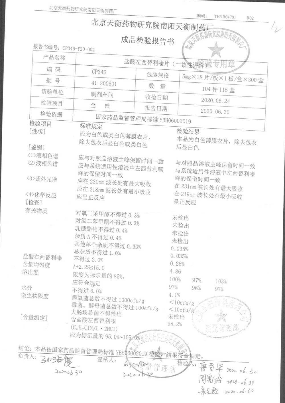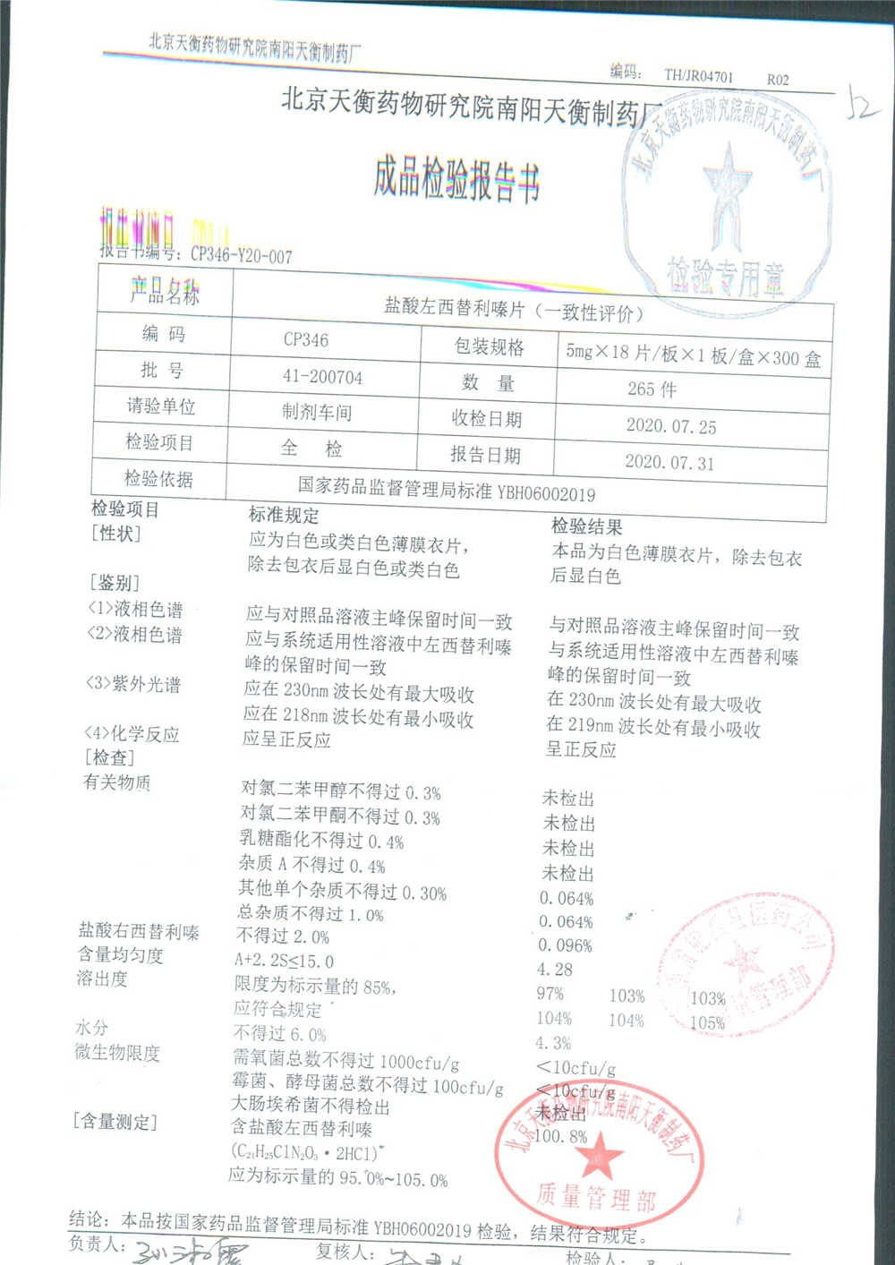 鹽酸左西替利嗪片 5mg*18s 41-200704 查看詳情