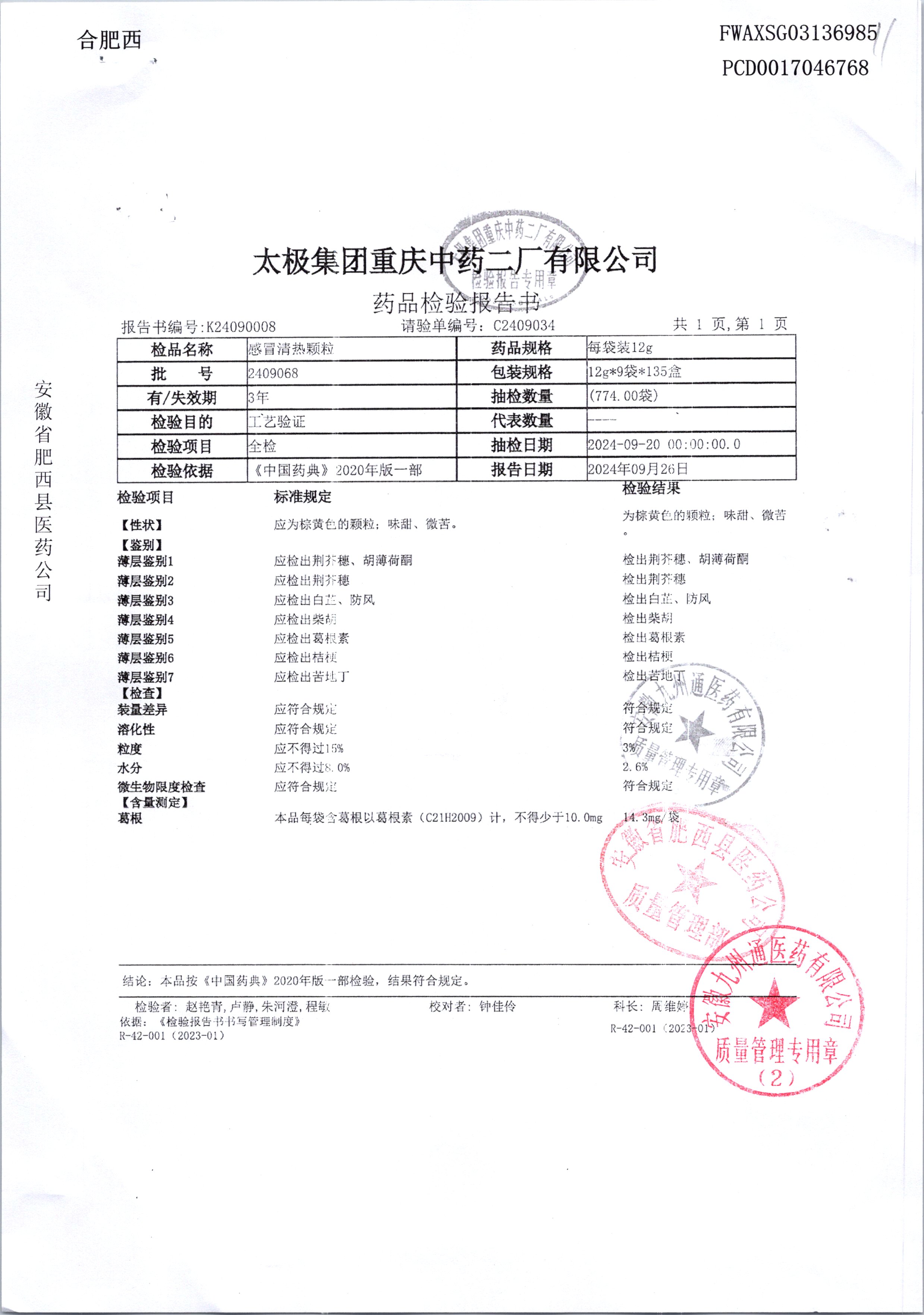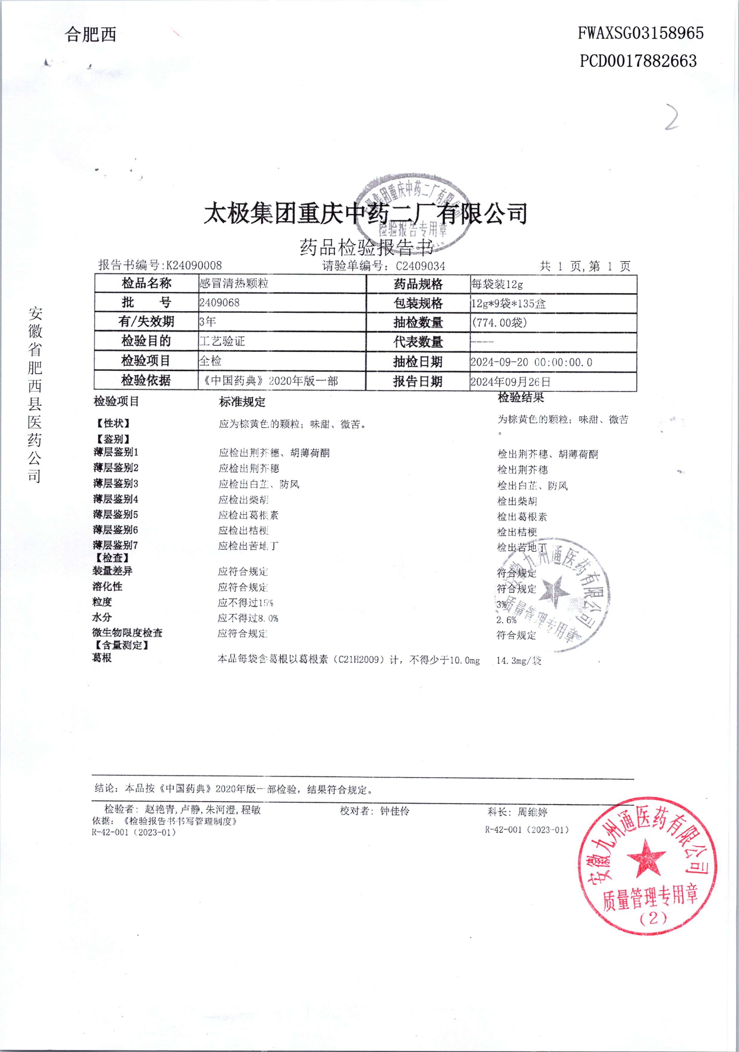 名稱 規(guī)格 批號 藥檢報告