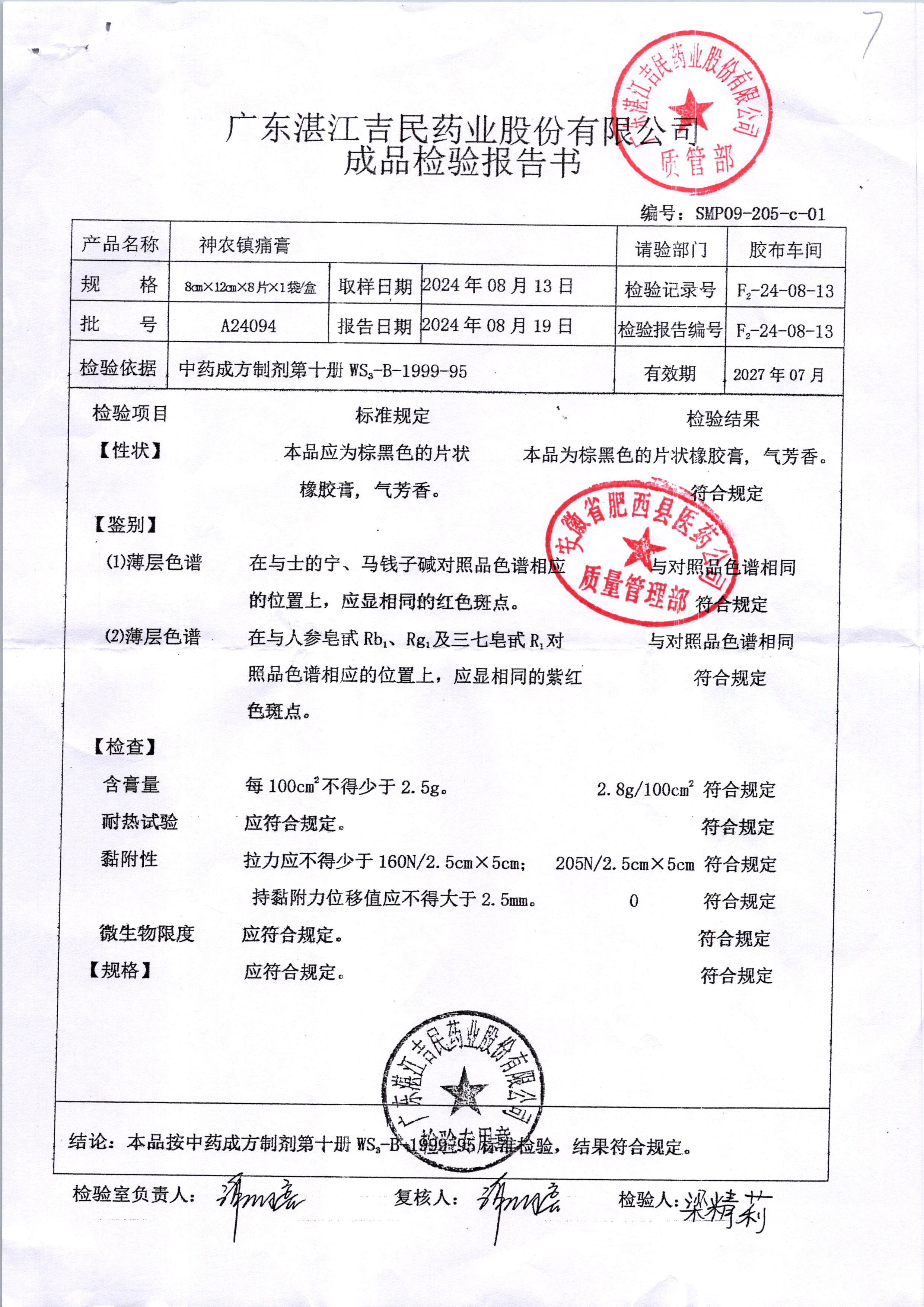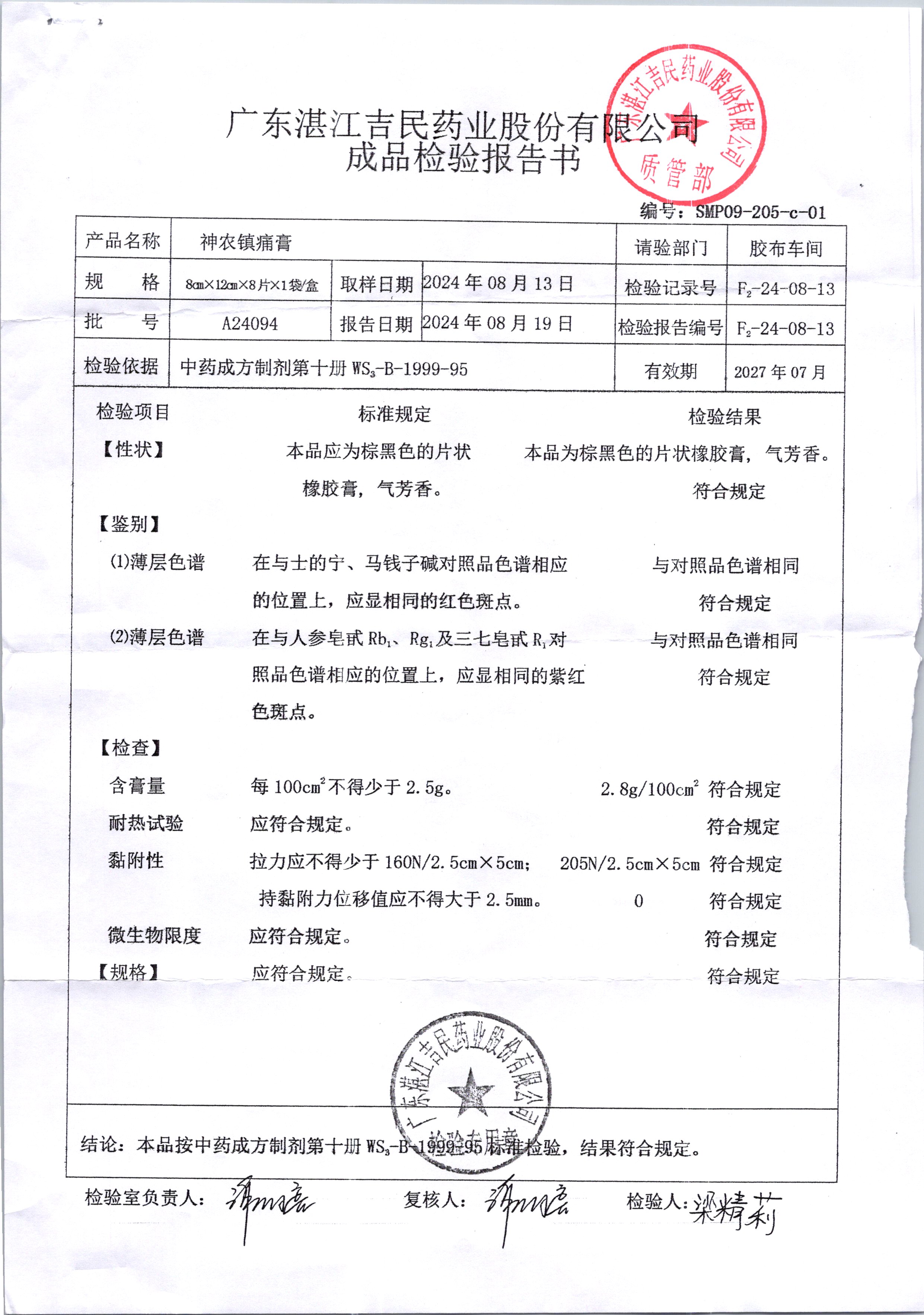 名稱 規格 批號 藥檢報告