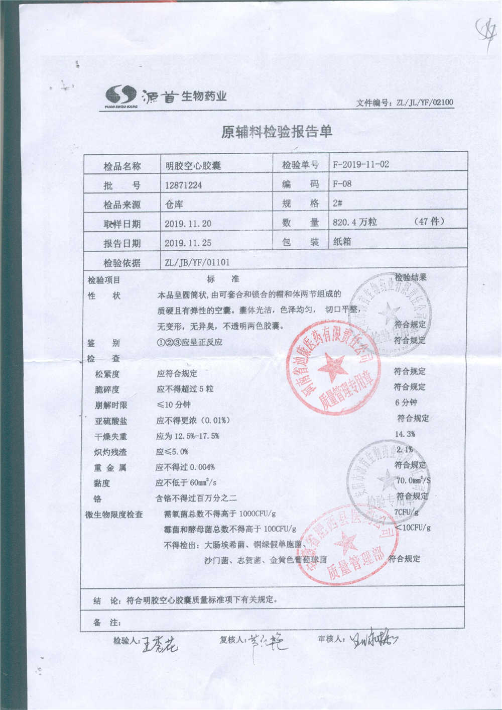 | 蠟樣芽孢桿菌活菌膠囊(源首) | 0.25g | 20190602(2/3) | 查看詳情 |