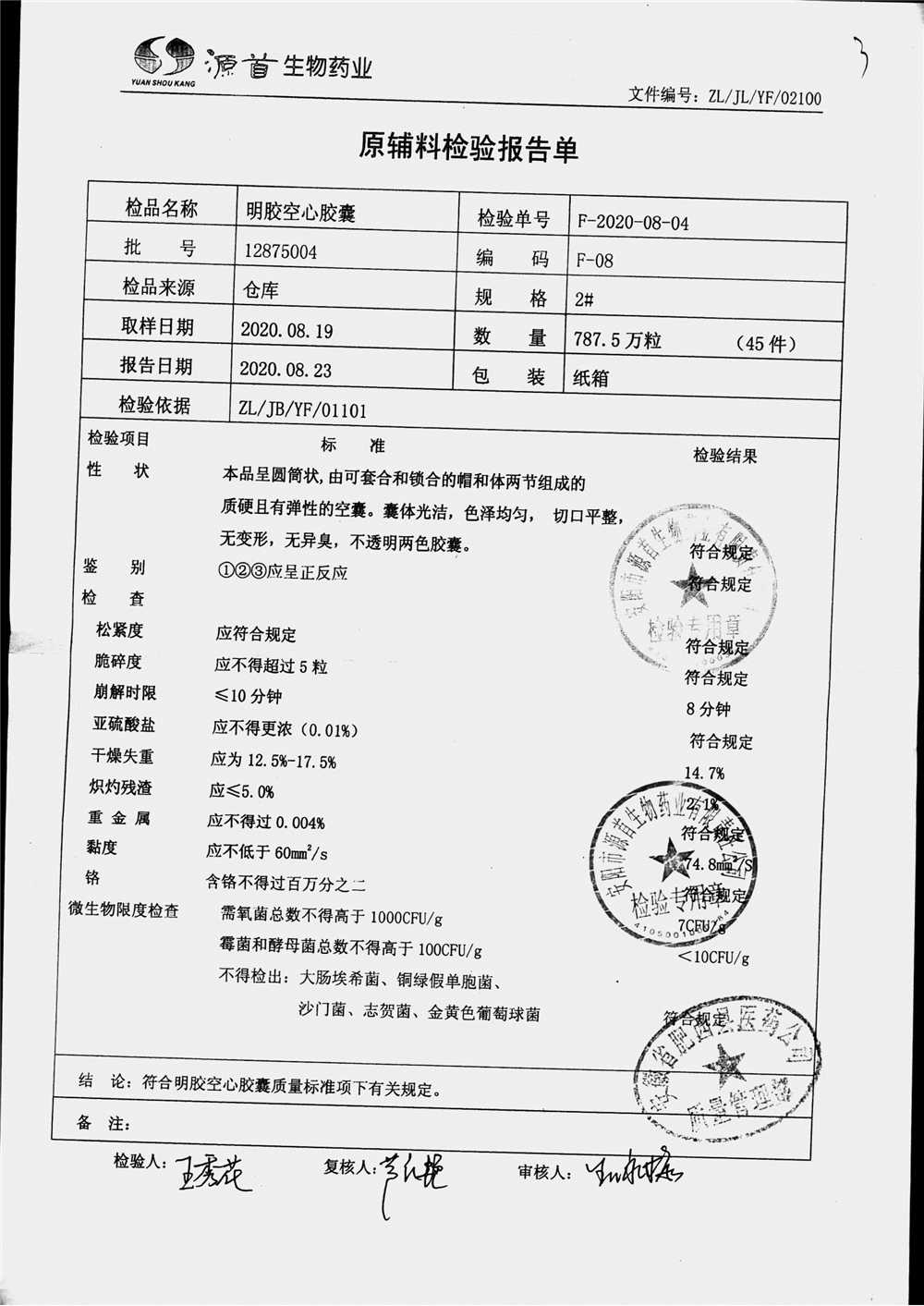 | 蠟樣芽孢桿菌活菌膠囊(源首) | 0.25g | 20200702(2/3) | 查看詳情 |