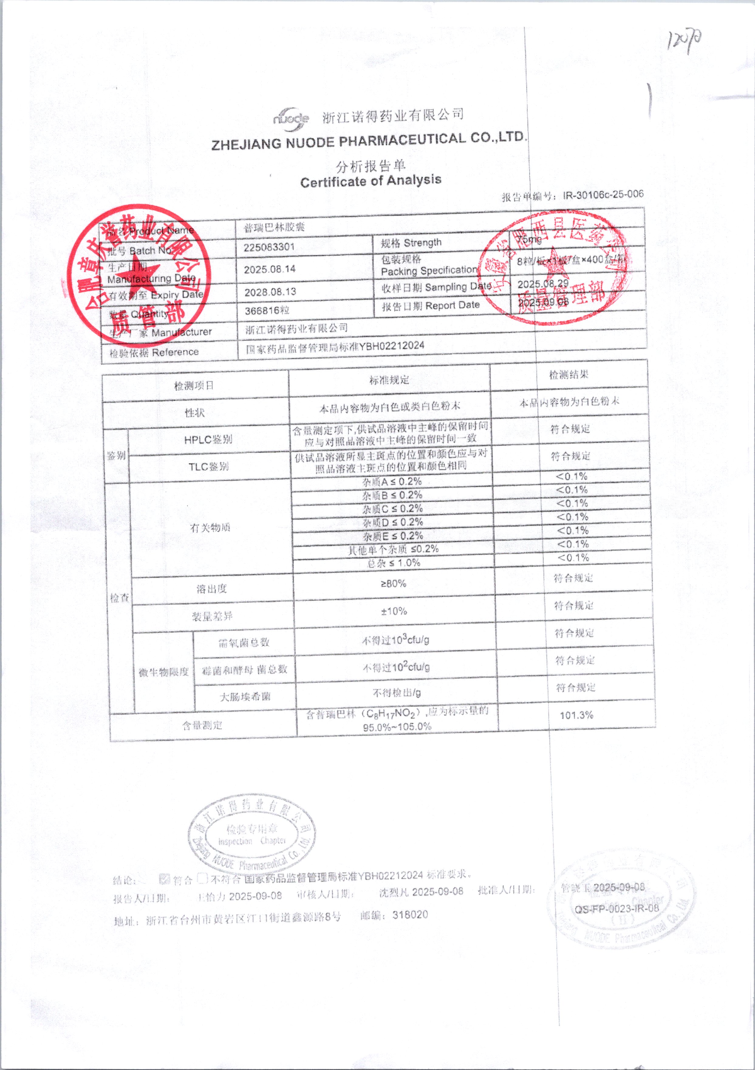 名稱 規(guī)格 批號(hào) 藥檢報(bào)告