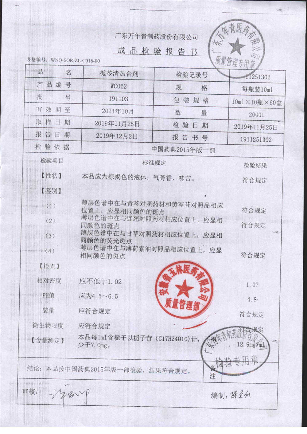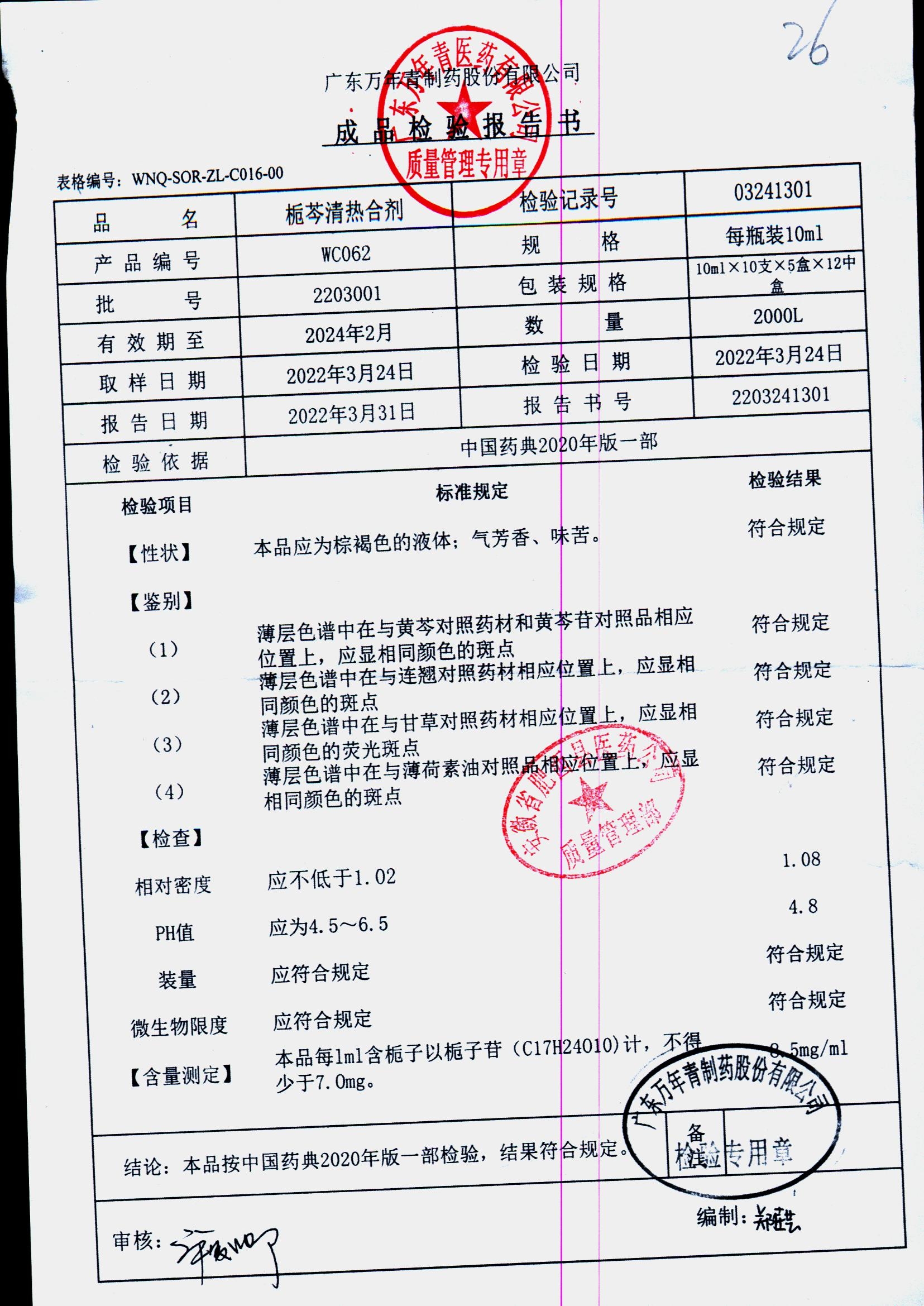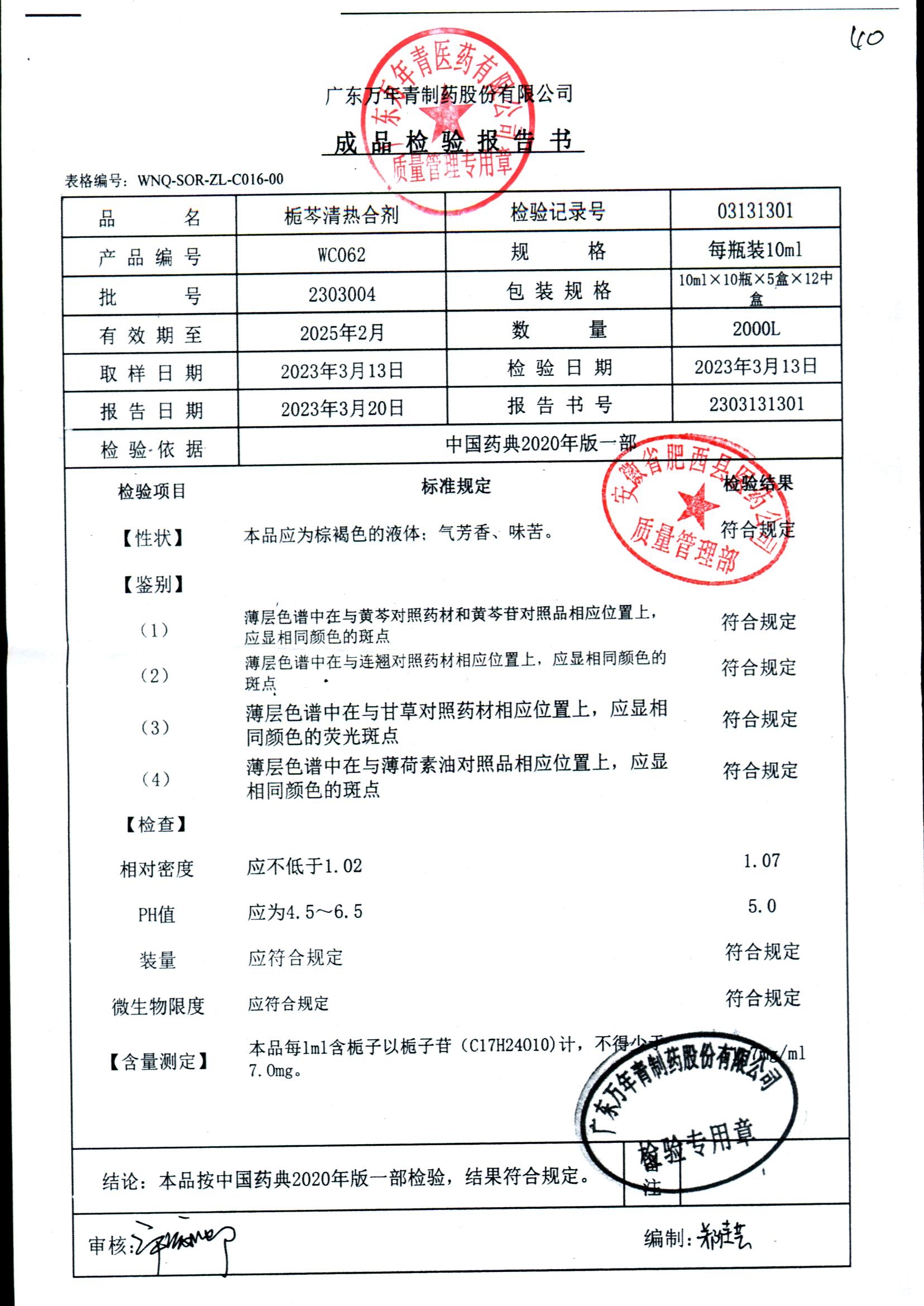 | 梔芩清熱合劑 | 10ml*10瓶 | 180301 | 查看詳情 |