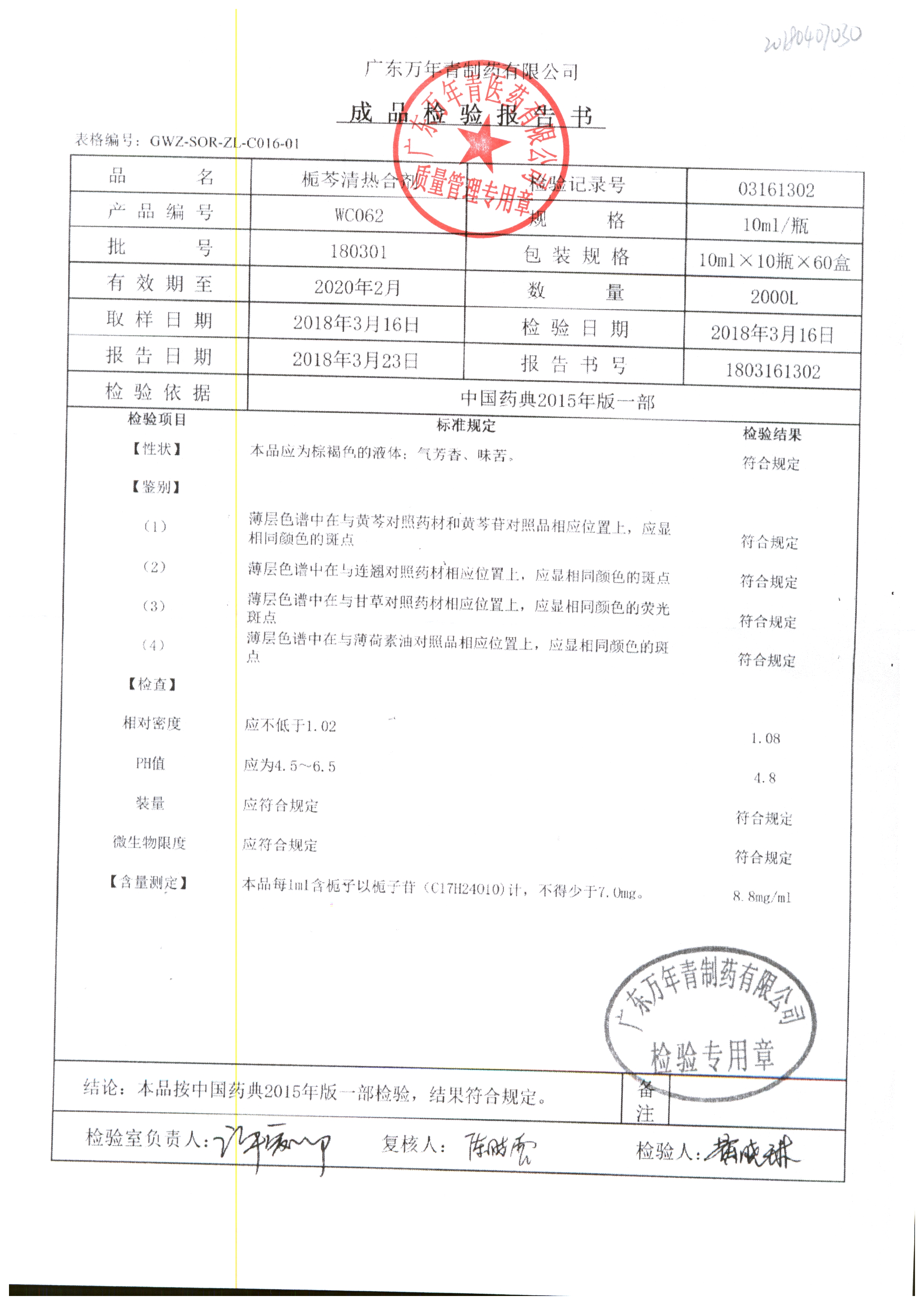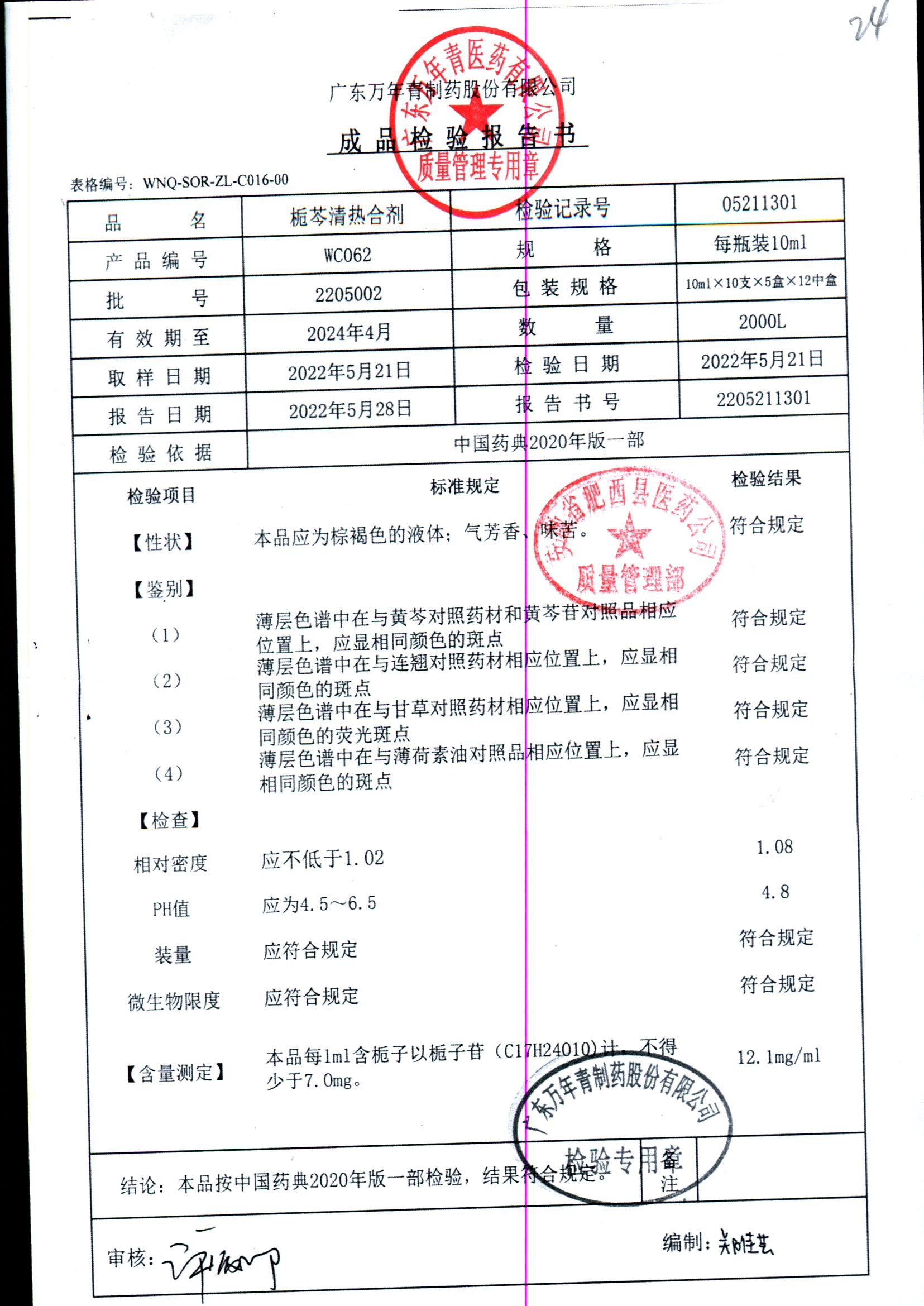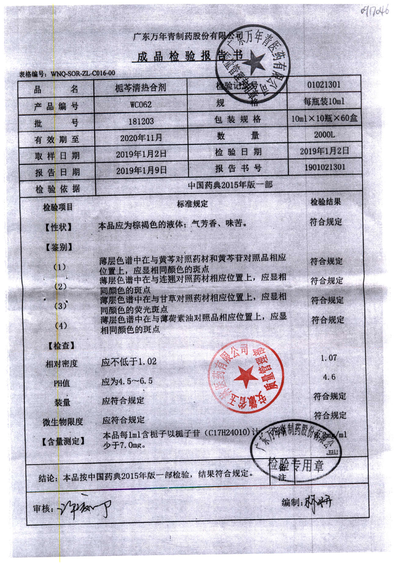 | 梔芩清熱合劑 | 10ml*10瓶 | 180301 | 查看詳情 |