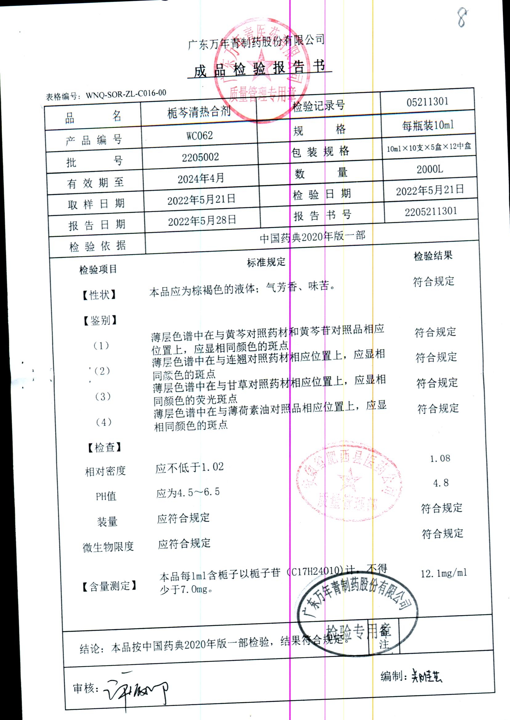 | 梔芩清熱合劑 | 10ml*10瓶 | 210901 | 查看詳情 |