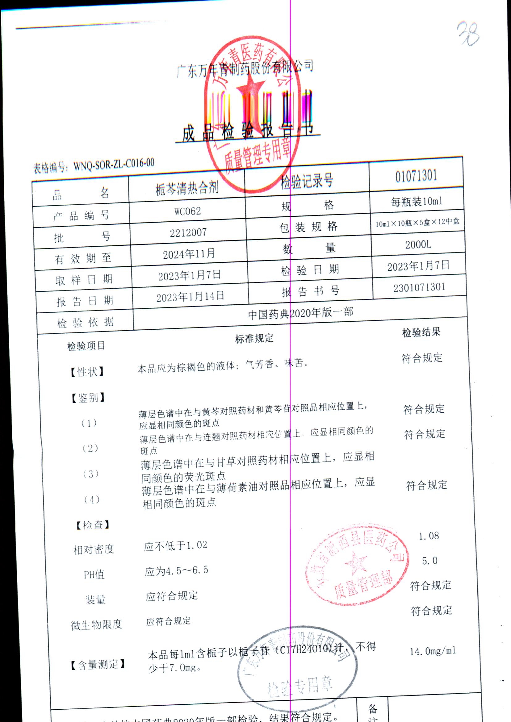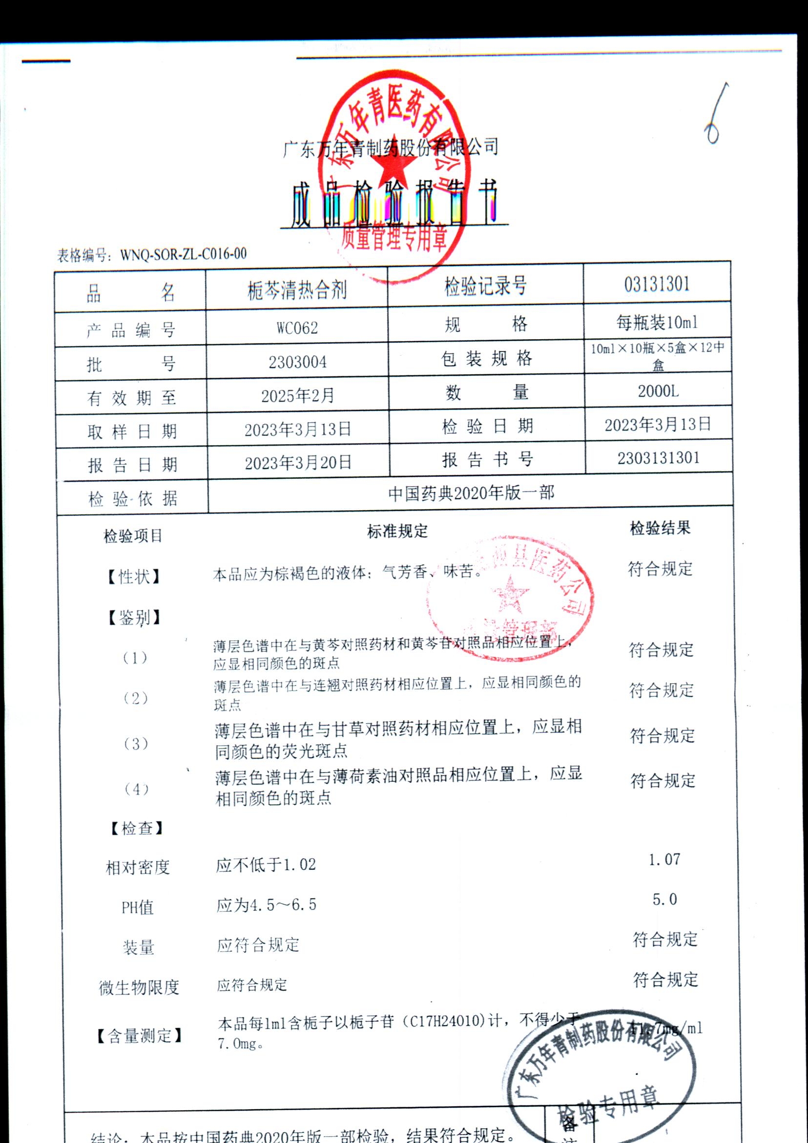 | 梔芩清熱合劑 | 10ml*10瓶 | 2303005 | 查看詳情 |
