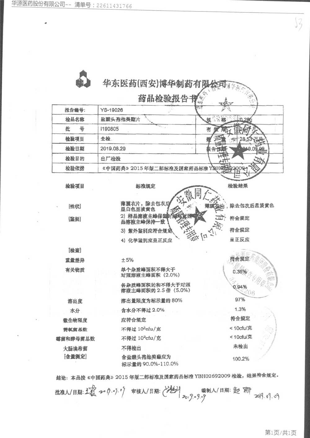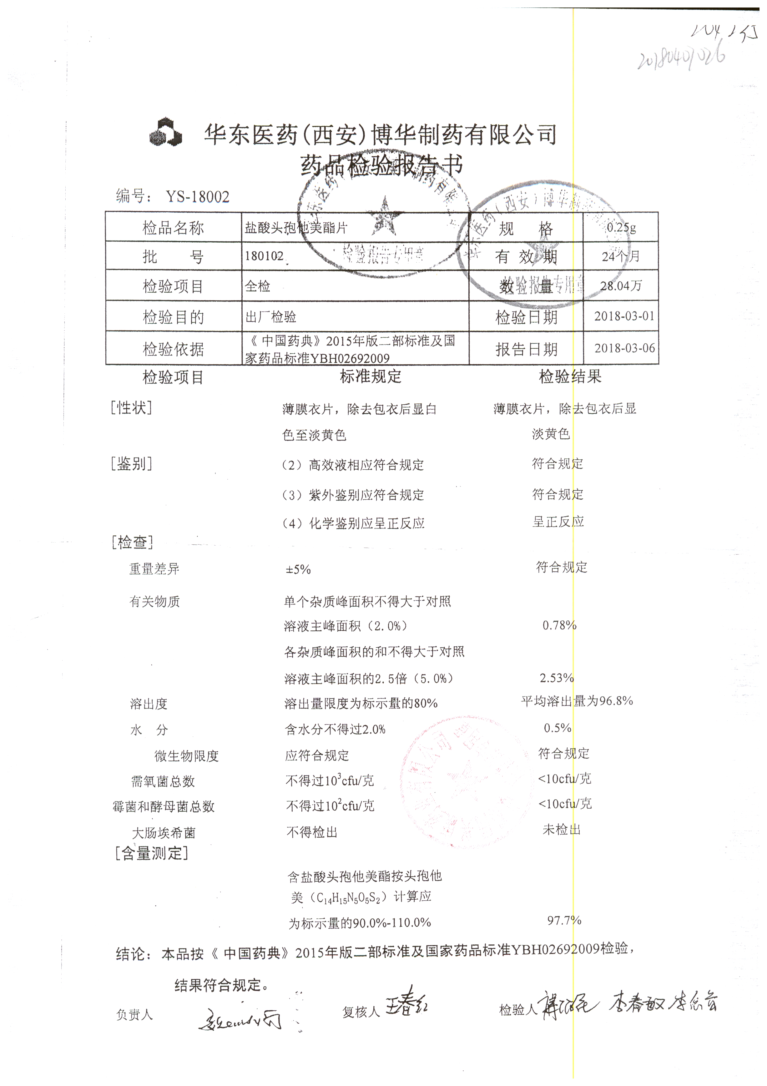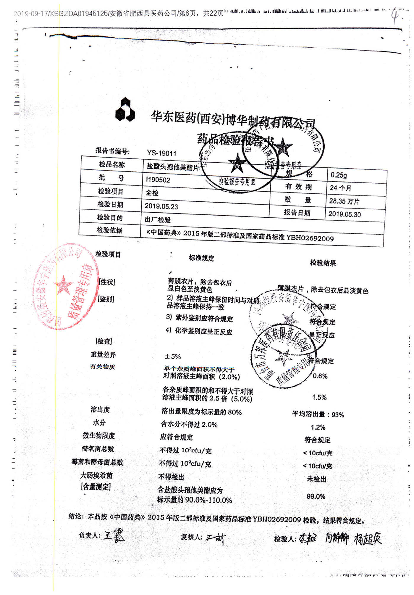 | 鹽酸頭孢他美酯片 | 0.25g | I190601 | 查看詳情 |