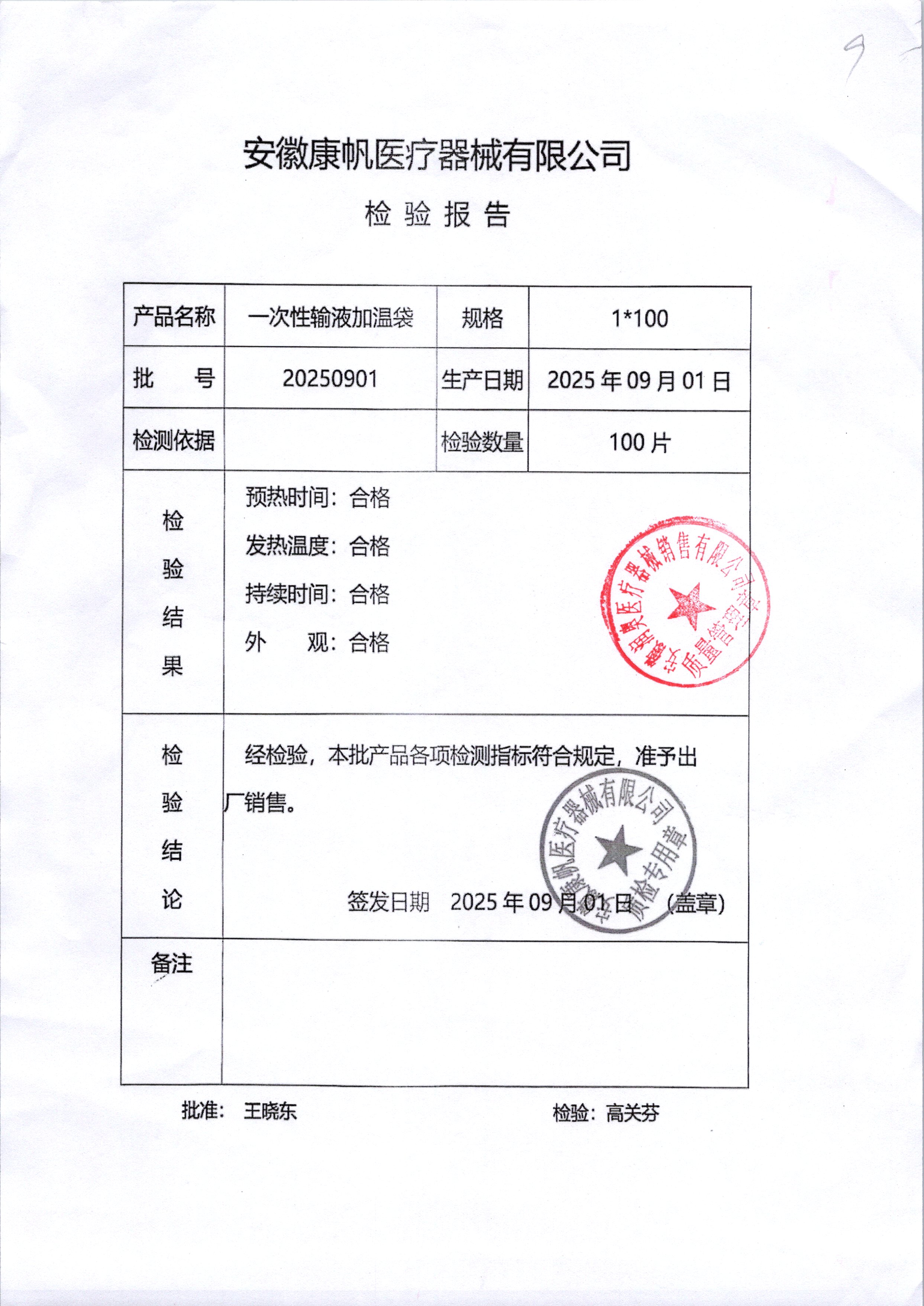 一次性輸液加溫袋 1*100 20250901 查看詳情