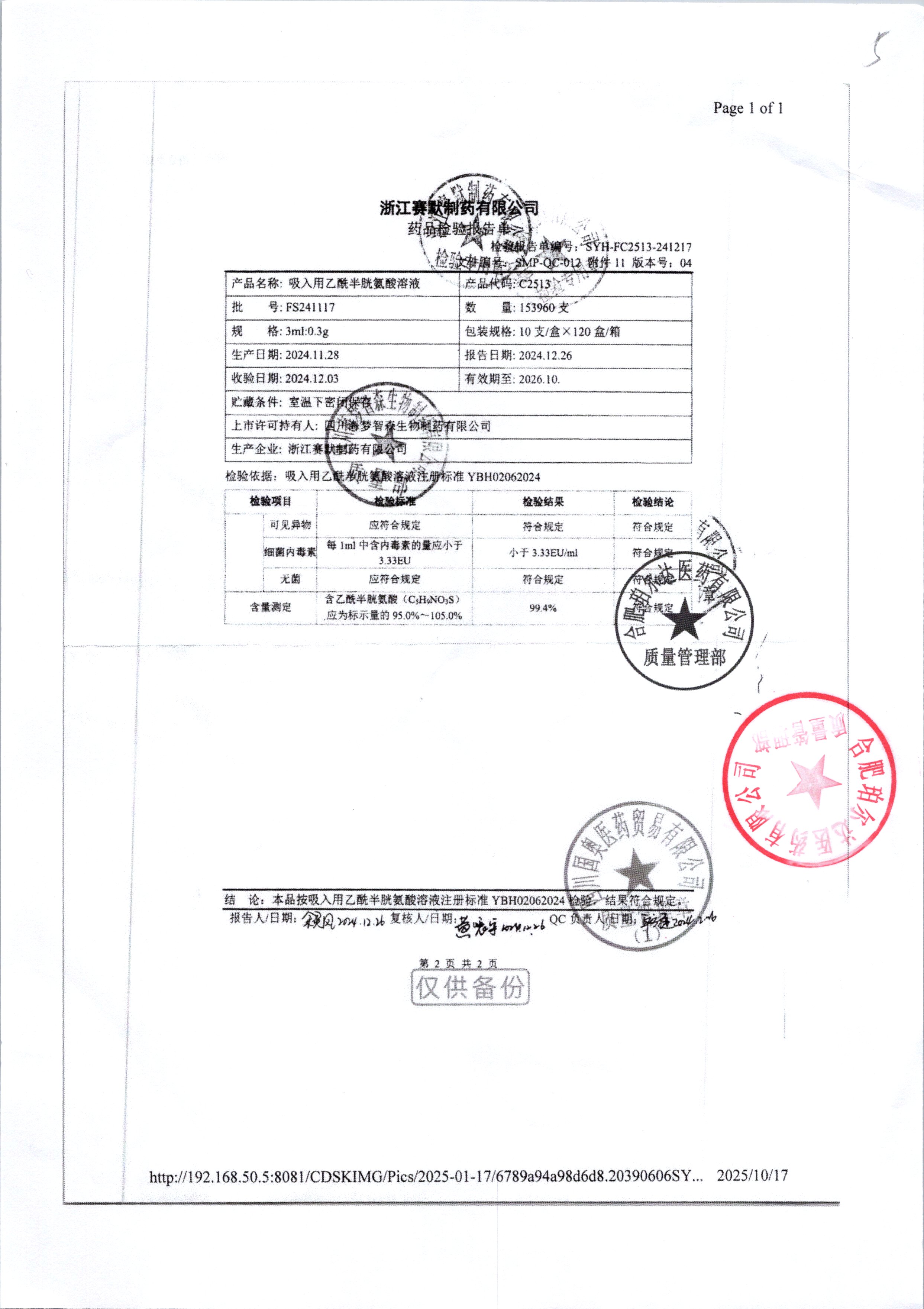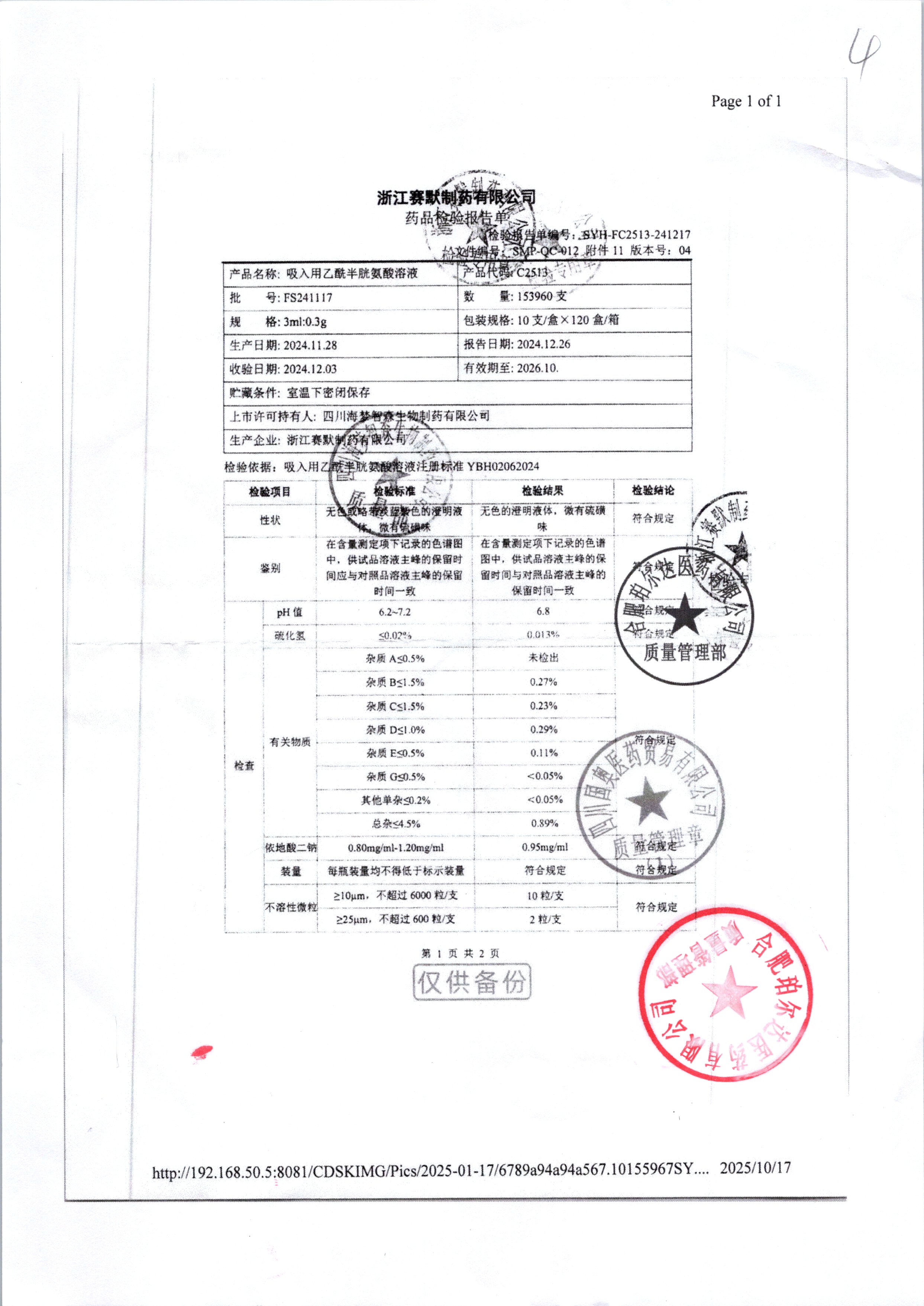 吸入用乙酰半胱氨酸溶液 3ml:0.3g*10支 FS241117/1 查看詳情