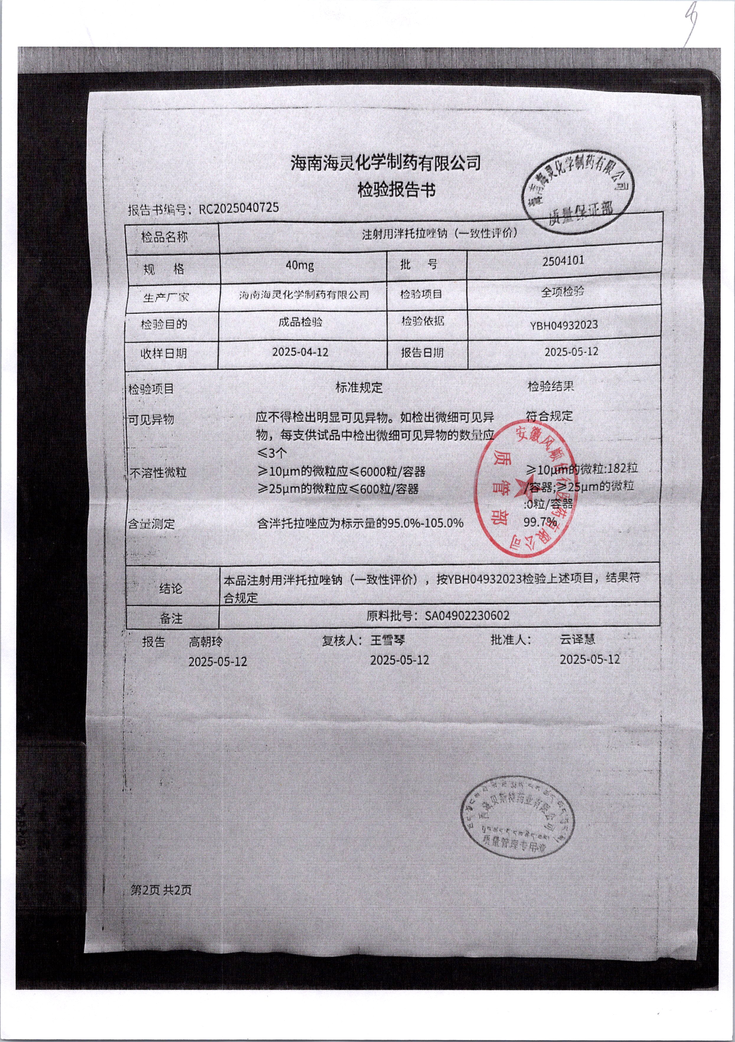 名稱 規格 批號 藥檢報告