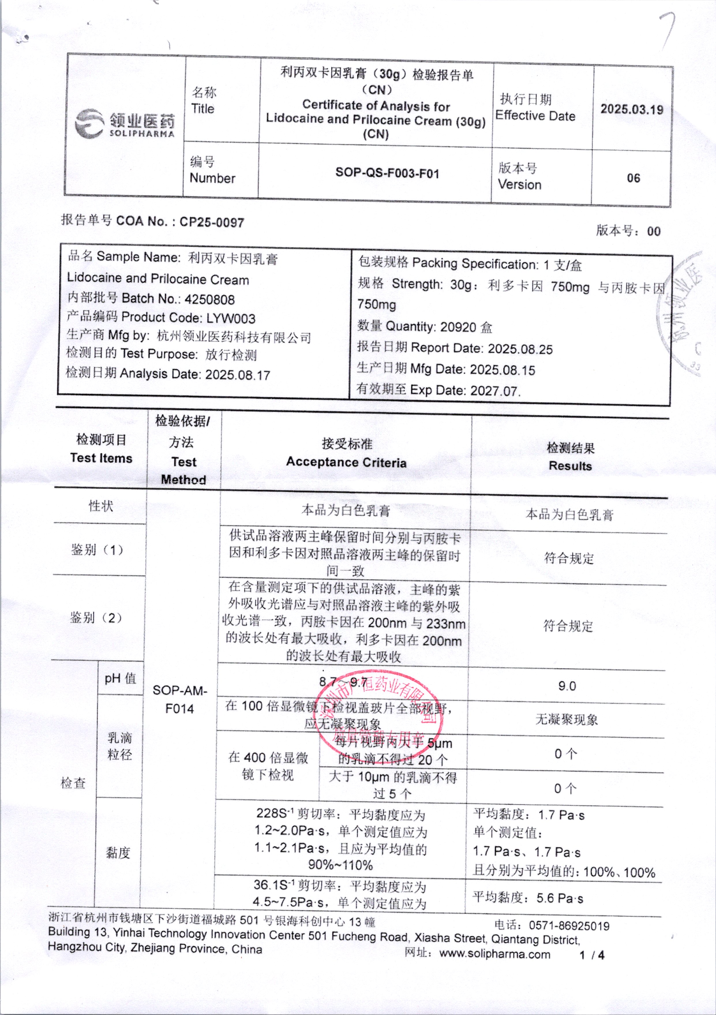利丙雙卡因乳膏 30g 4250808/2 查看詳情