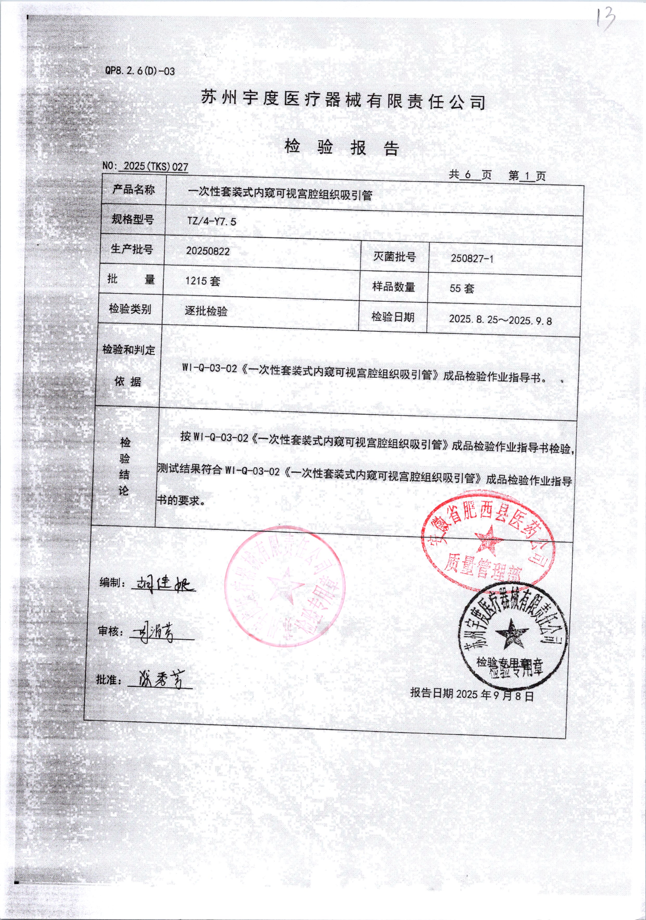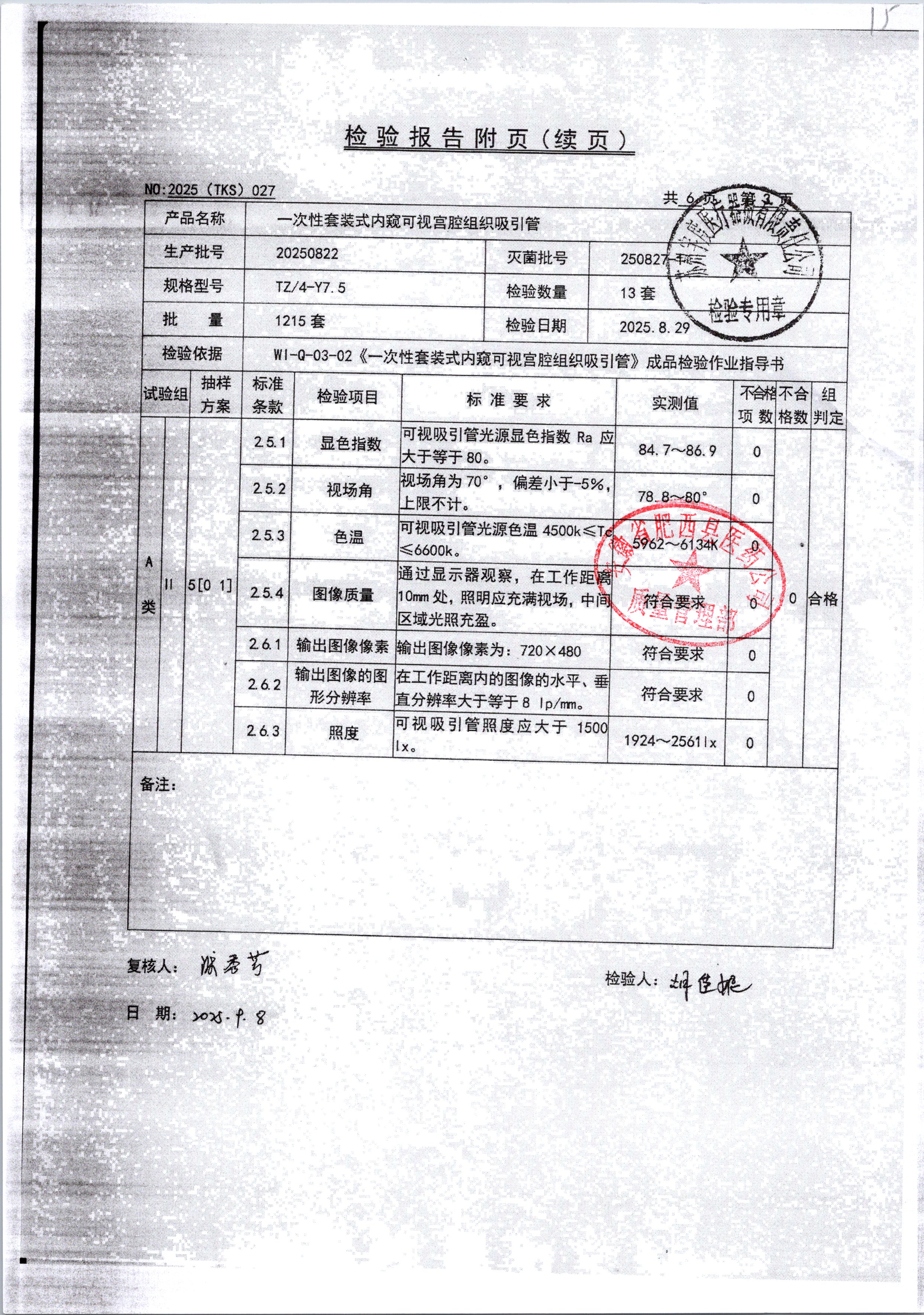 | 一次性套裝式內窺可視宮腔組織吸引管 | TZ/Y7.5 | 20250822/2 | 查看詳情 |