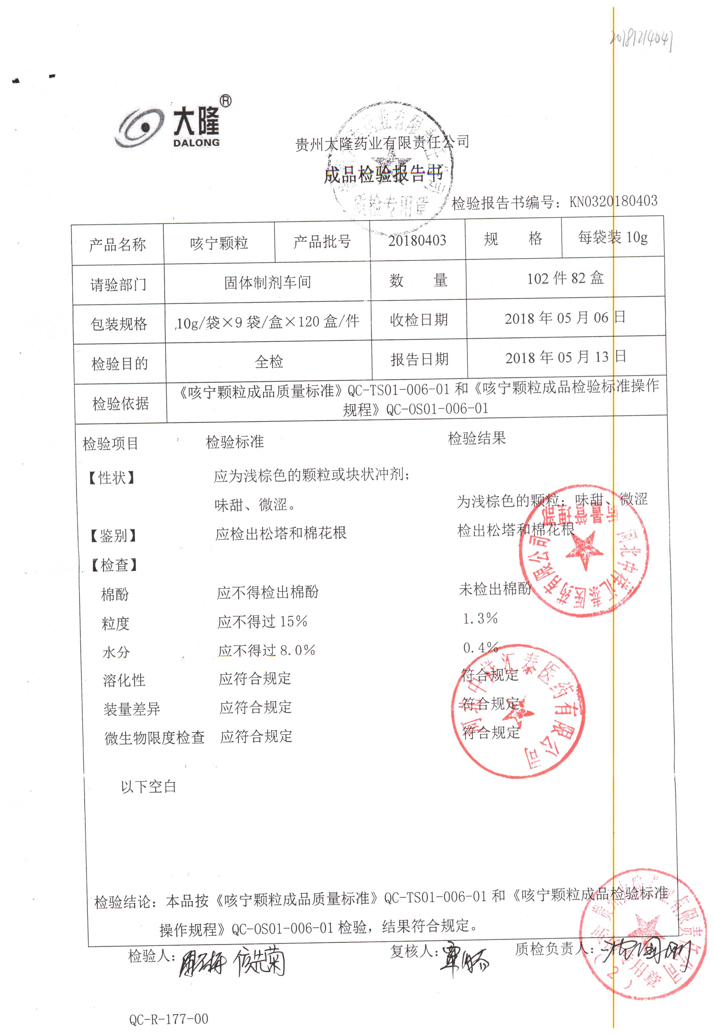 | 咳寧顆粒 | 10g*9袋 | 20180403 | 查看詳情 |