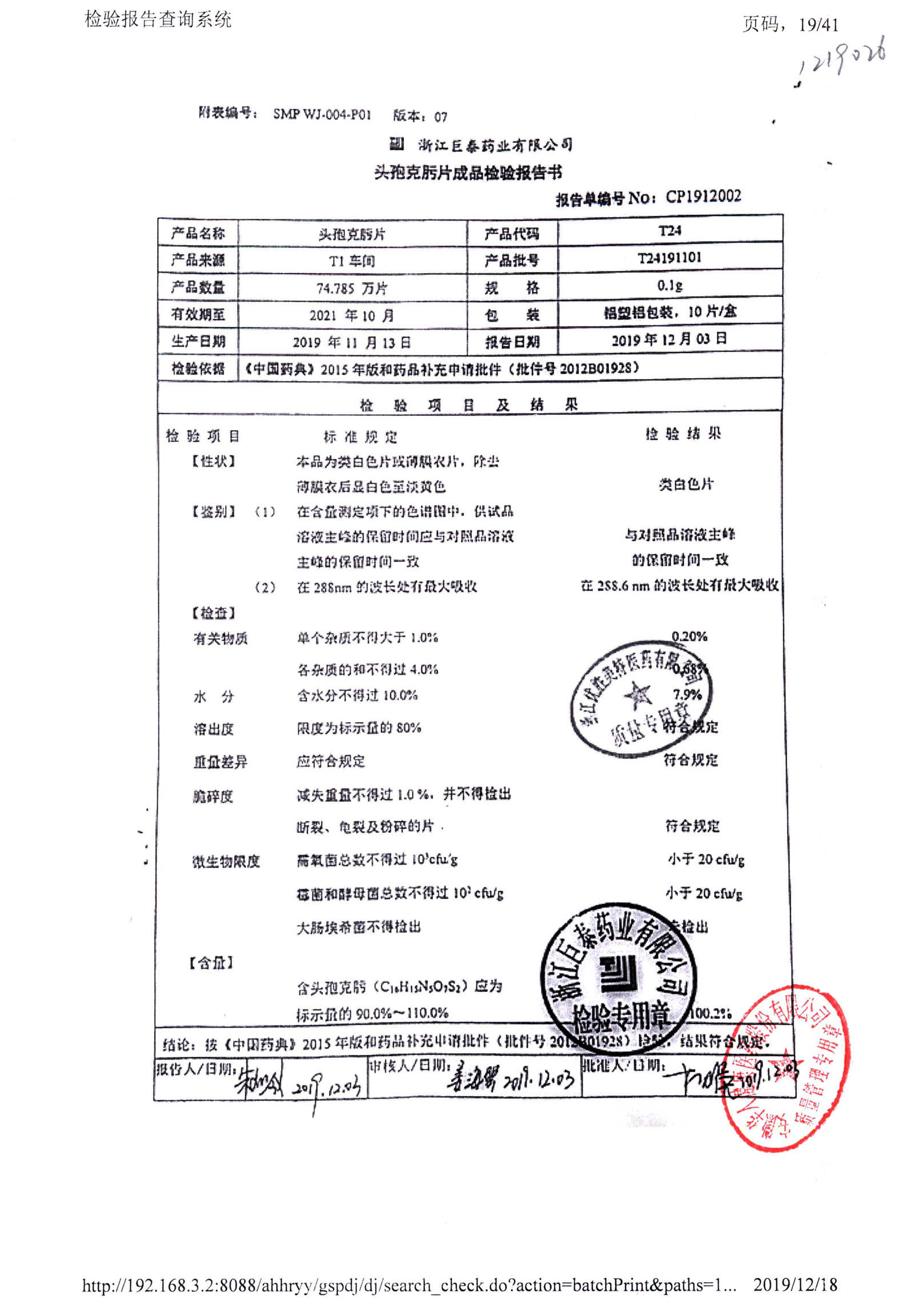 | 頭孢克肟片 | 0.1g*10s | T24181101 | 查看詳情 |