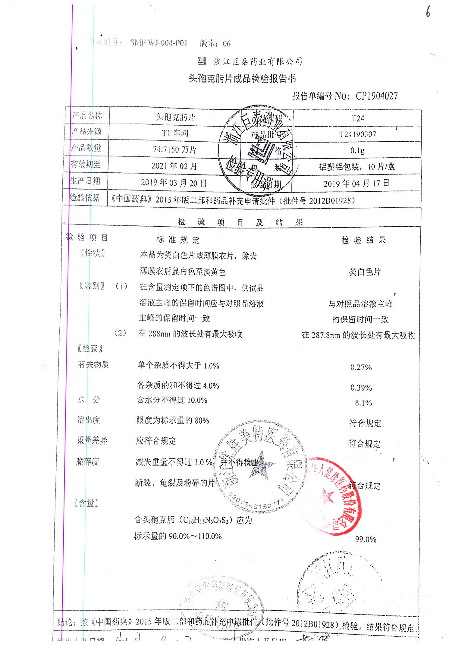 | 頭孢克肟片 | 0.1g*10s | T24200201 | 查看詳情 |