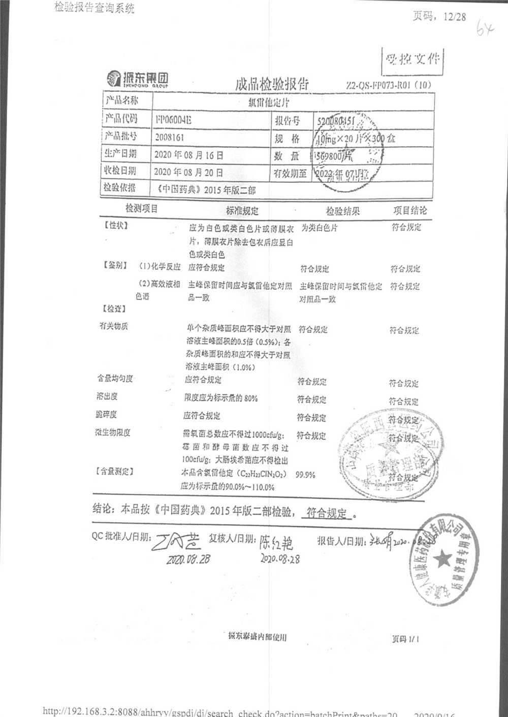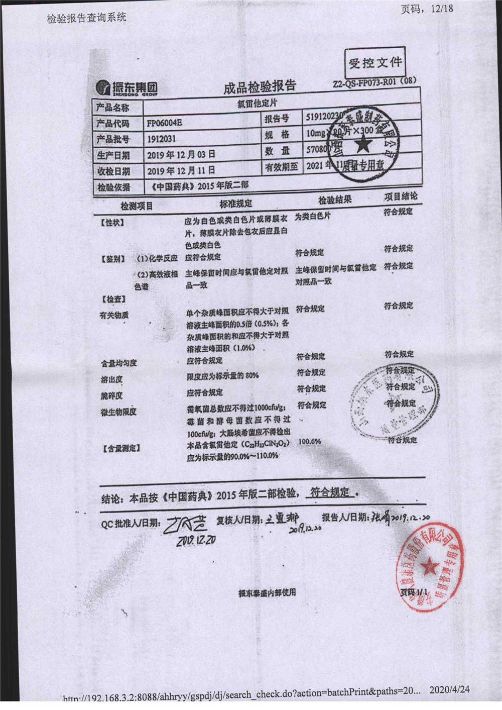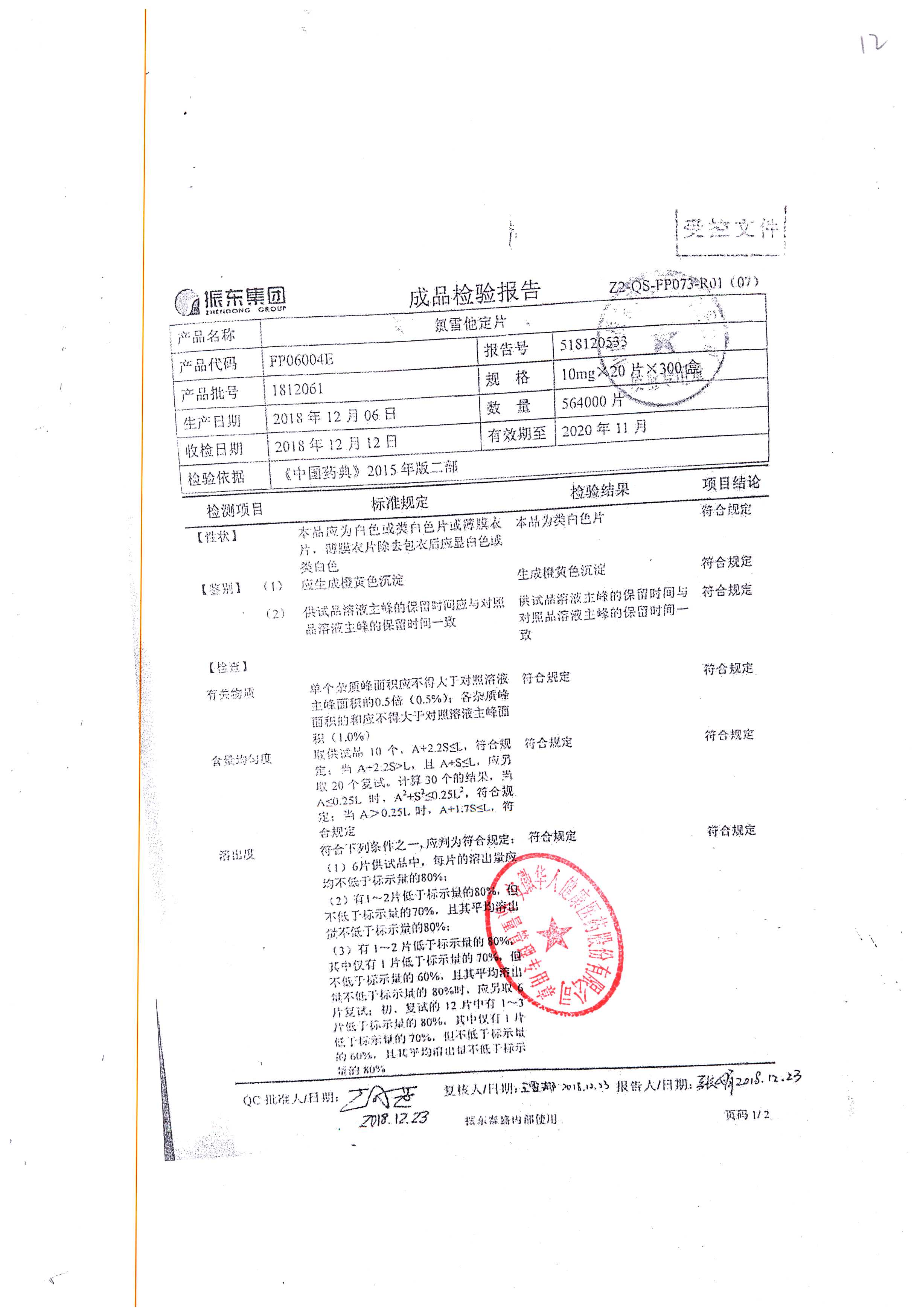 | 氯雷他定片 | 10mg*20s | 1812052(2/2) | 查看詳情 |
