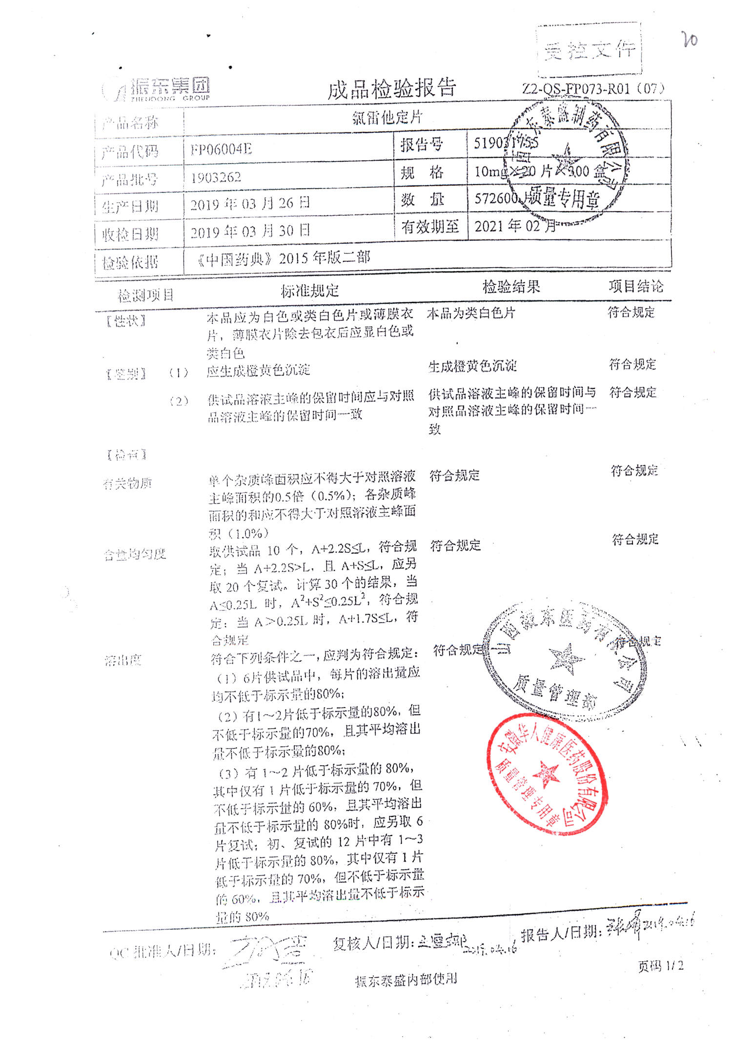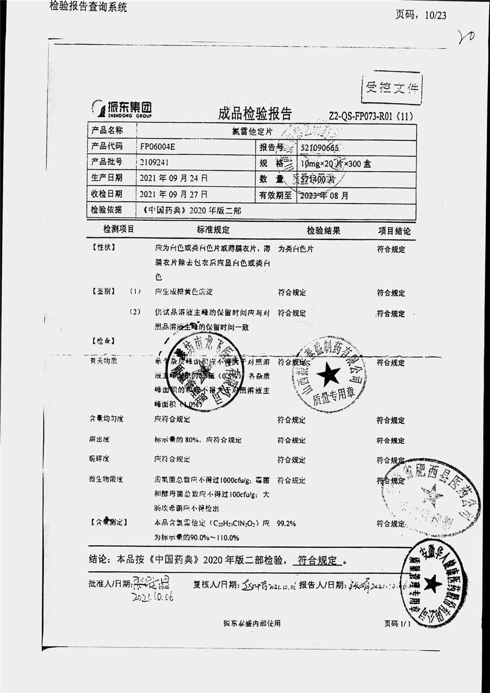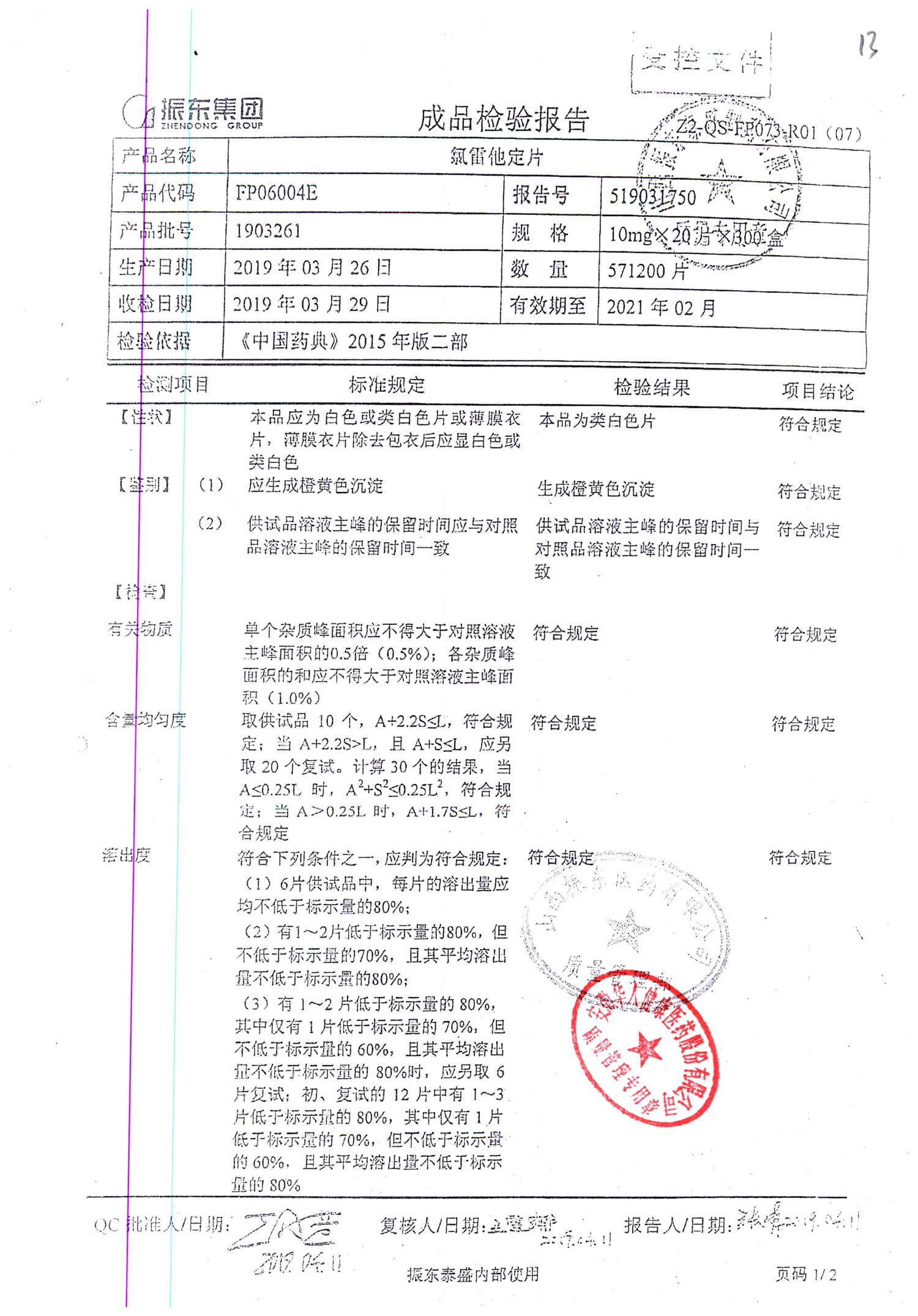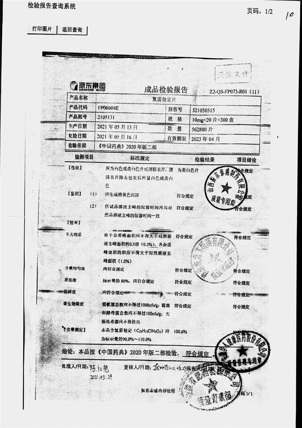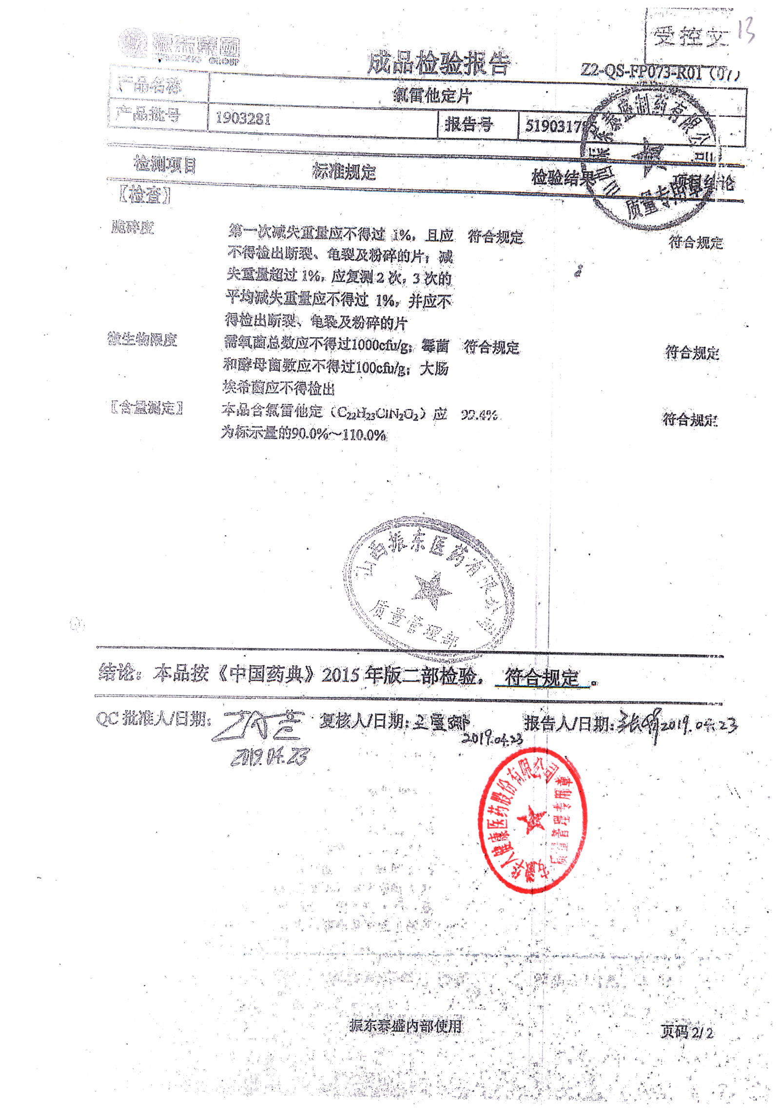 | 氯雷他定片 | 10mg*20s | 1903281(2/2) | 查看詳情 |