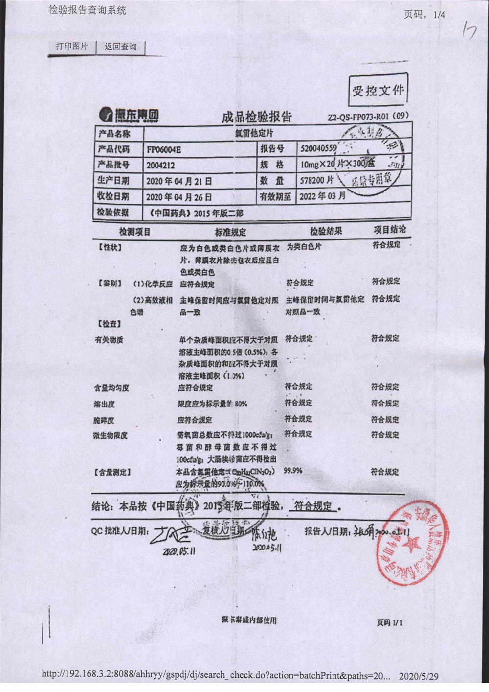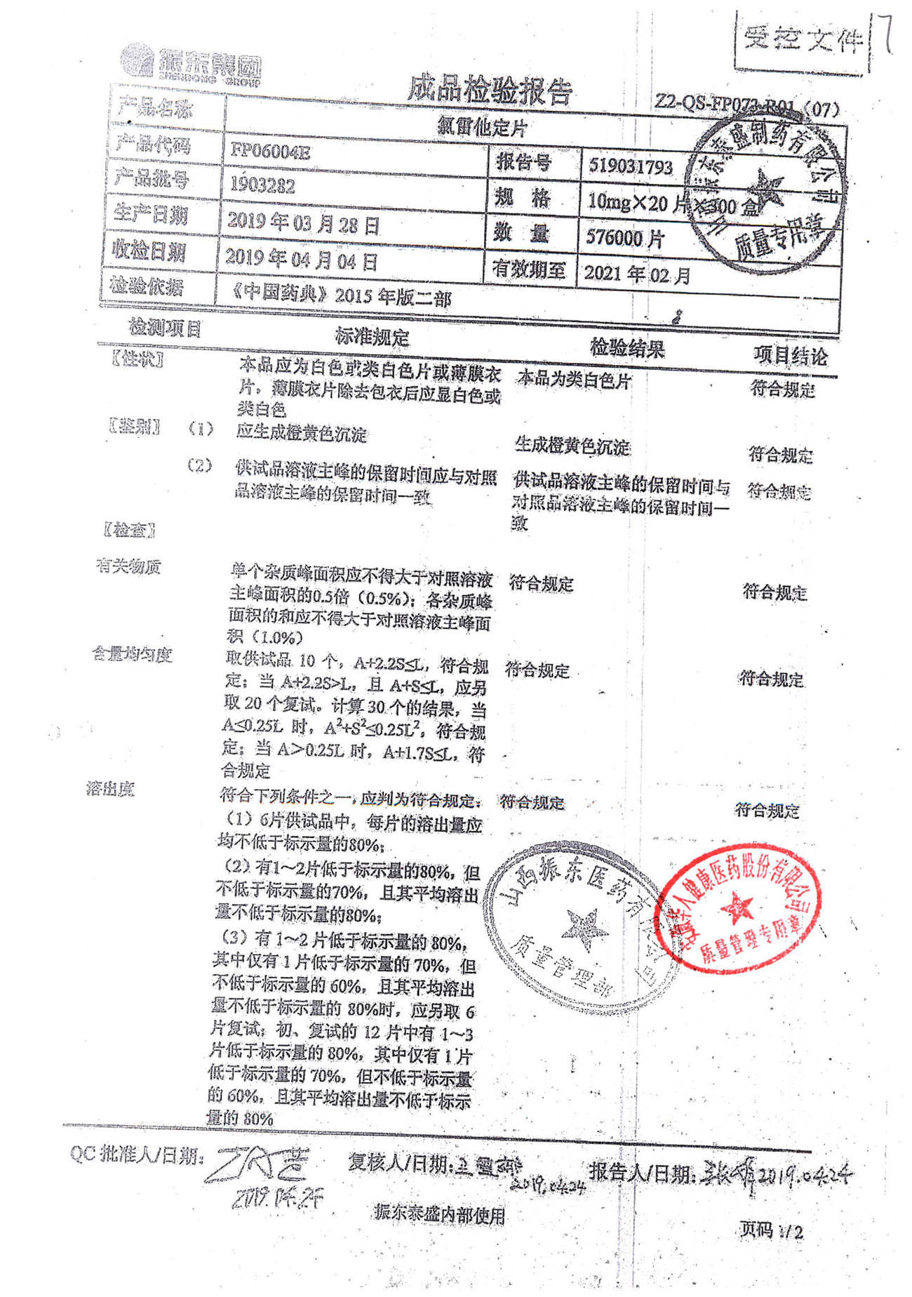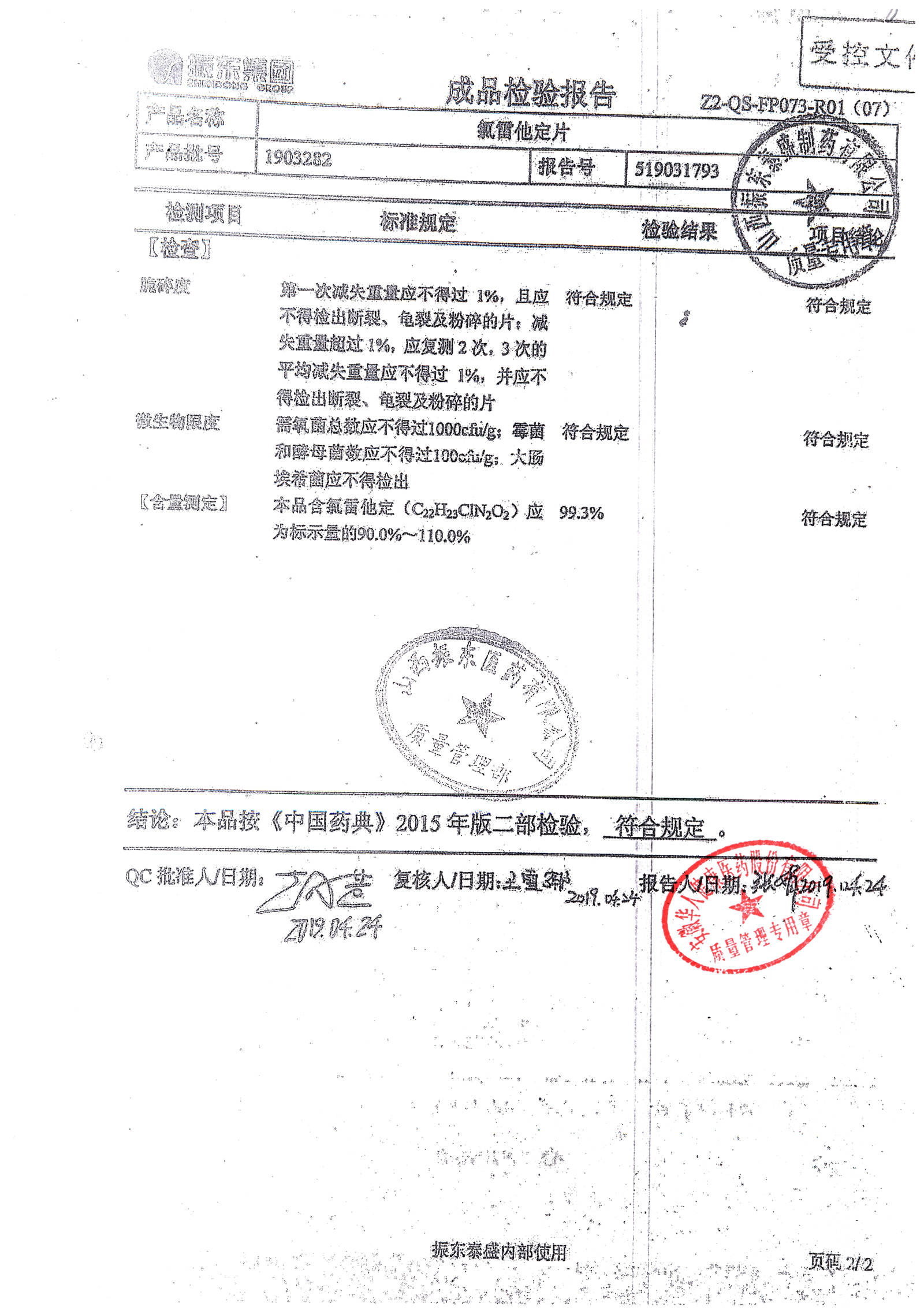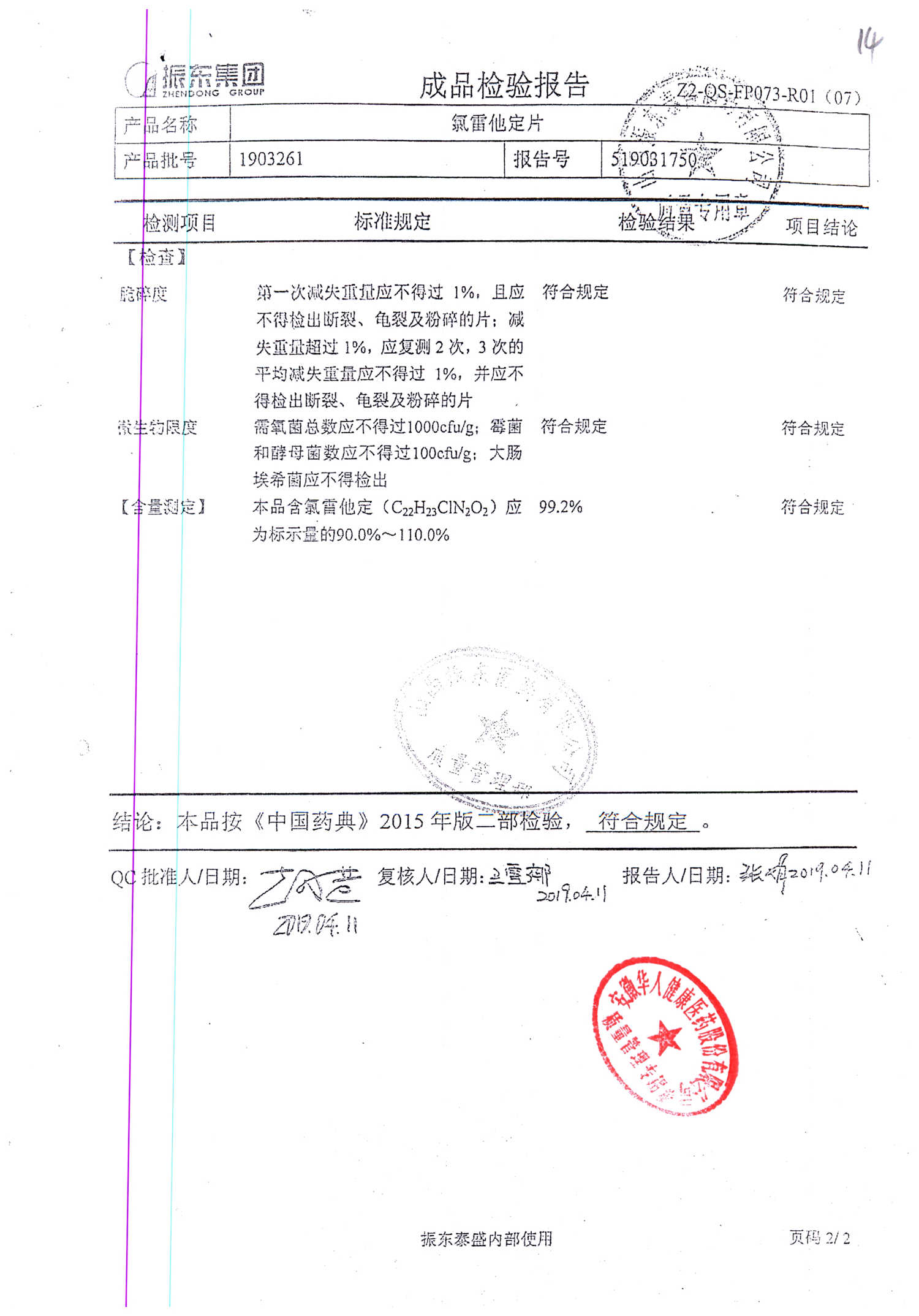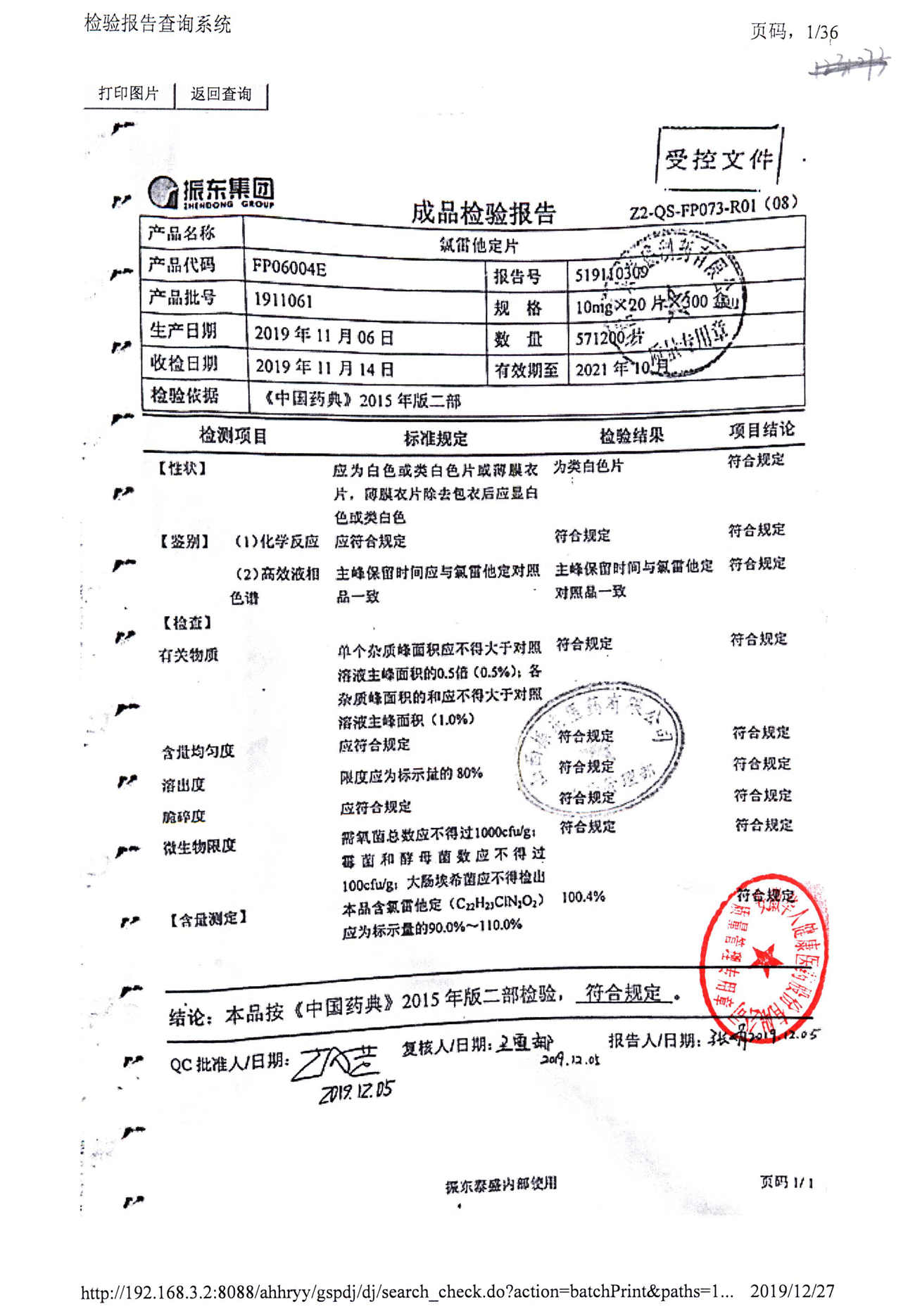 | 氯雷他定片 | 10mg*20s | 1903281(2/2) | 查看詳情 |