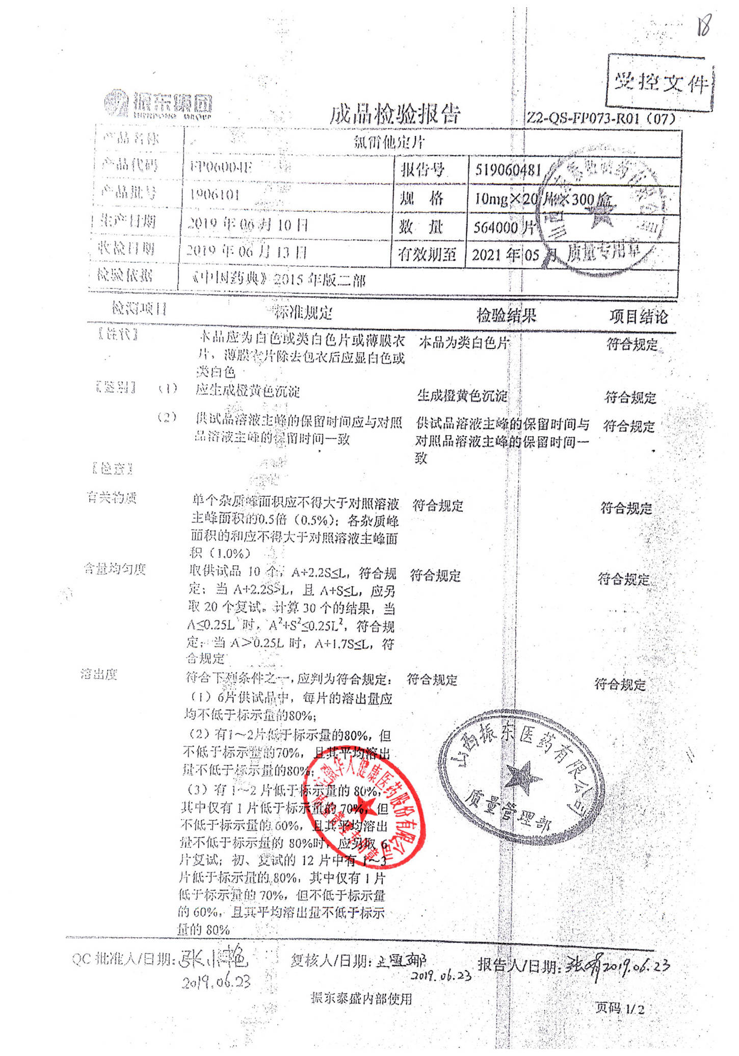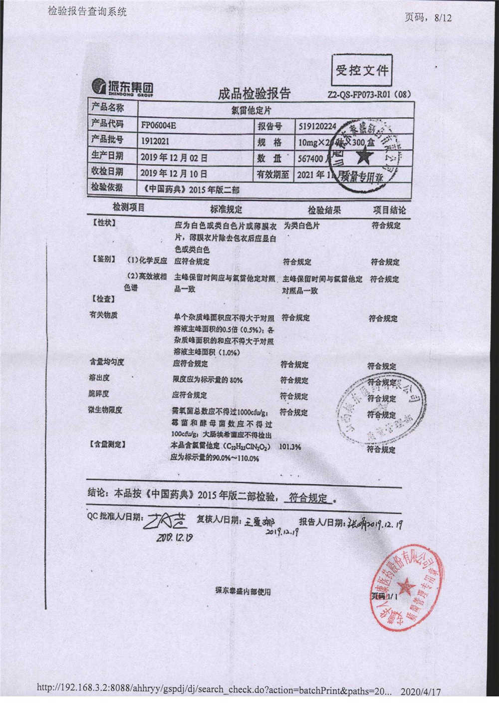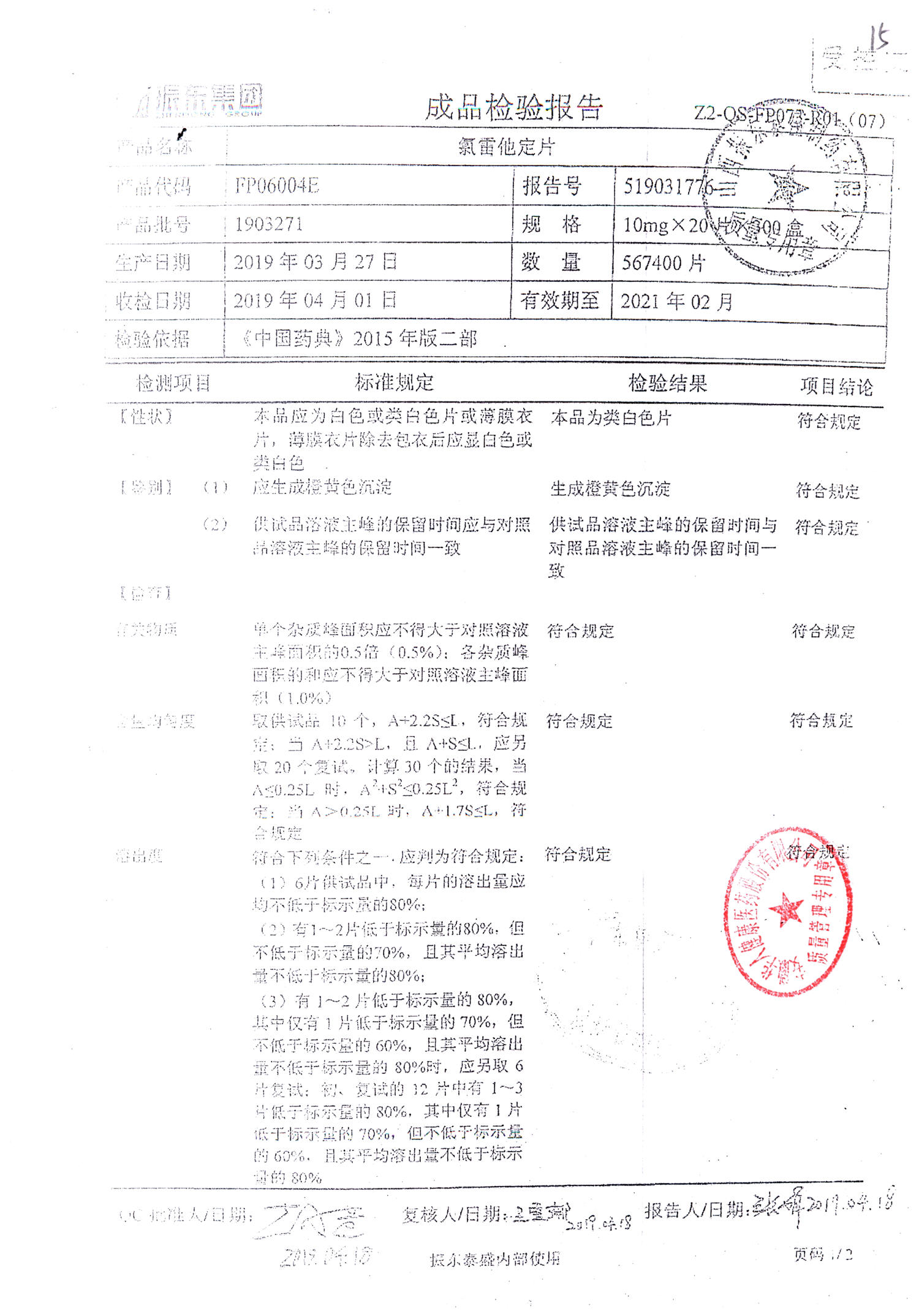 | 氯雷他定片 | 10mg*20s | 1906101(2/2) | 查看詳情 |