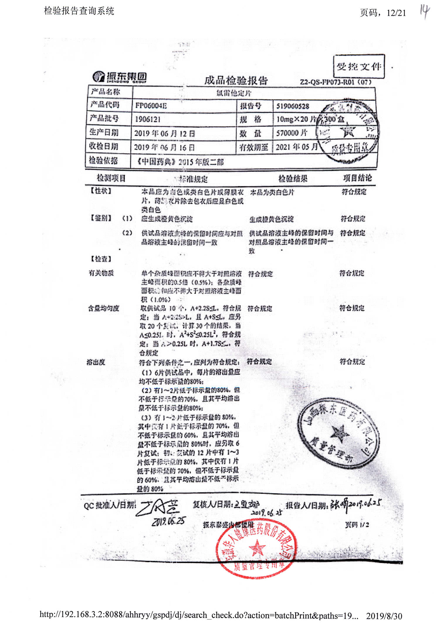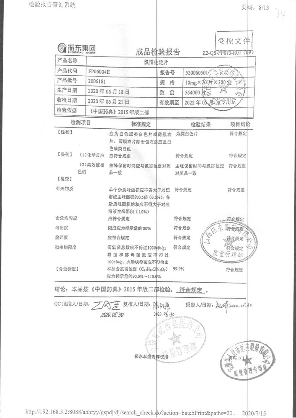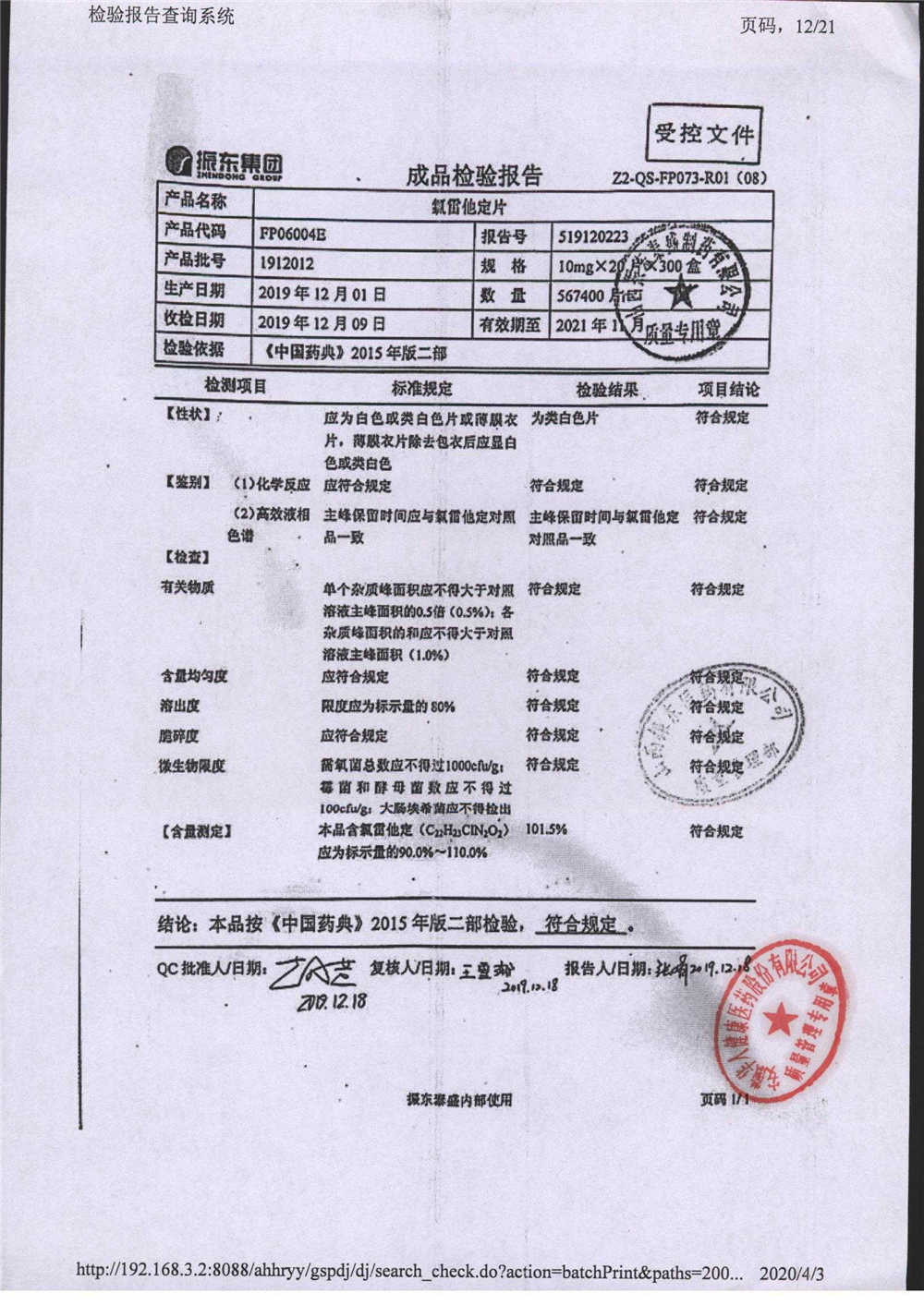 | 氯雷他定片 | 10mg*20s | 1906101(2/2) | 查看詳情 |