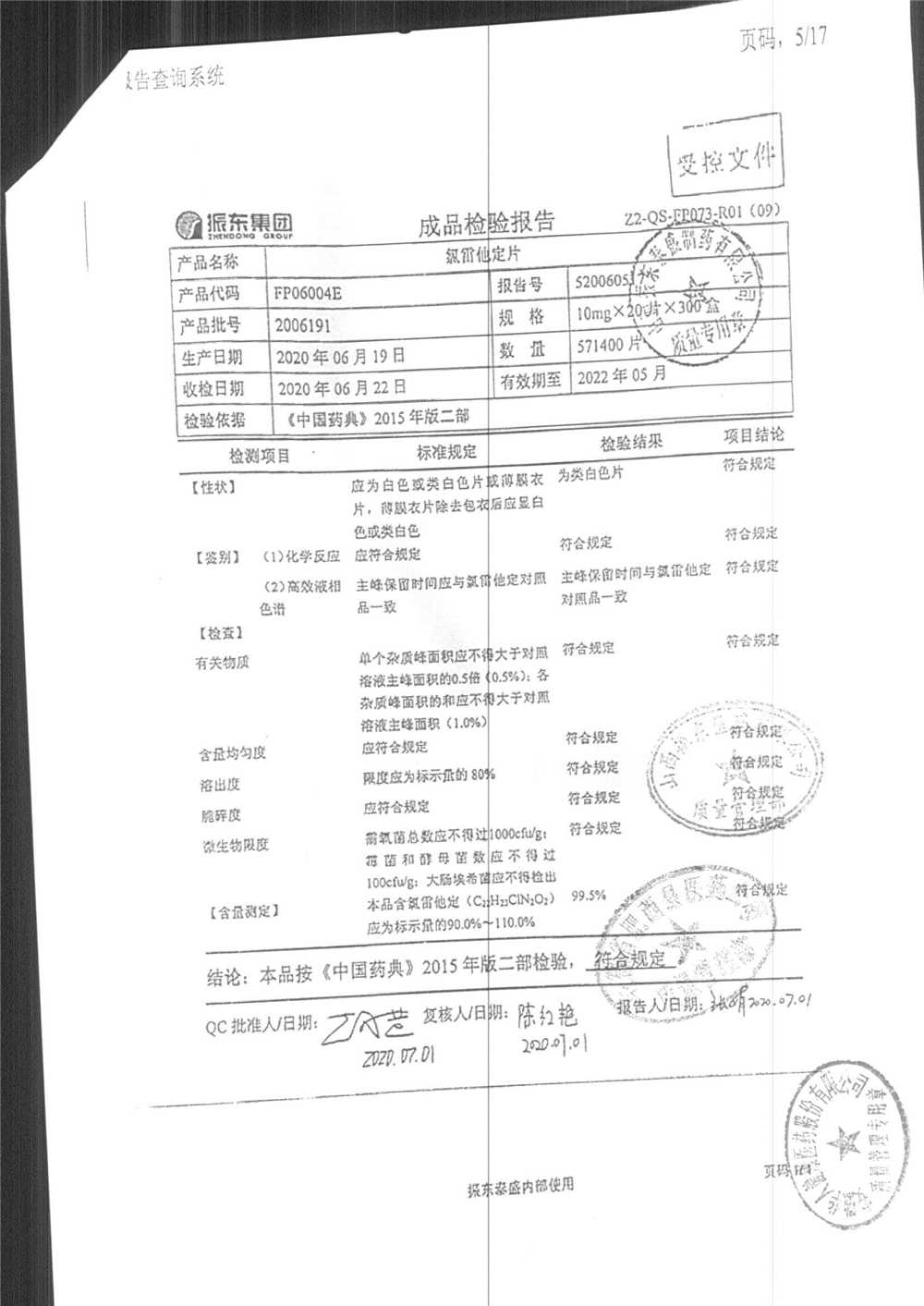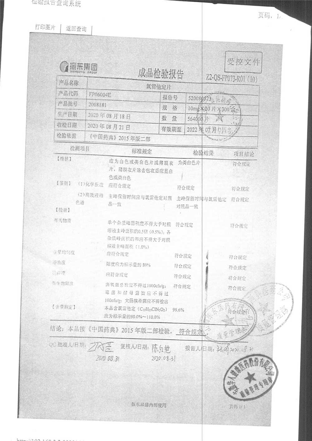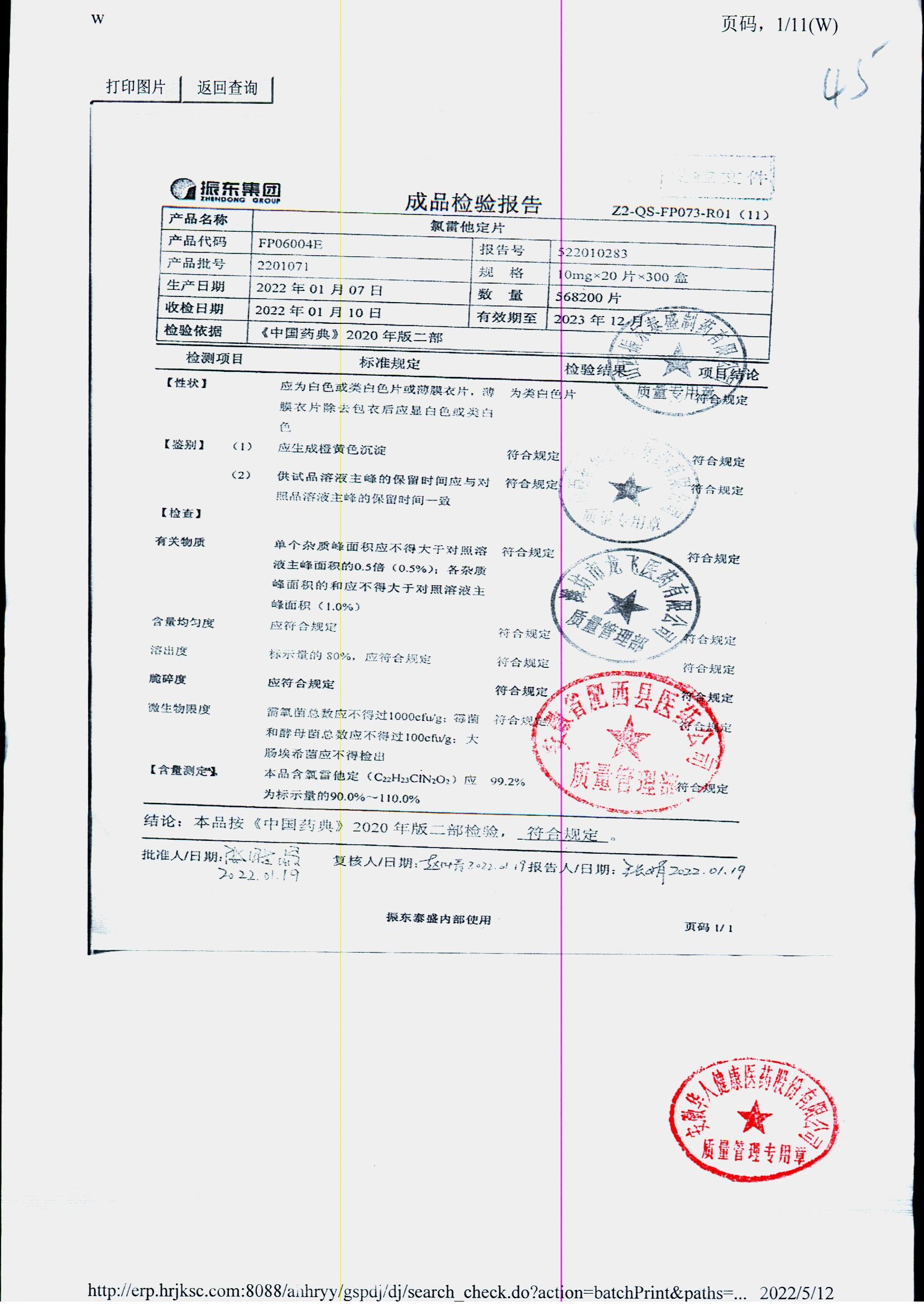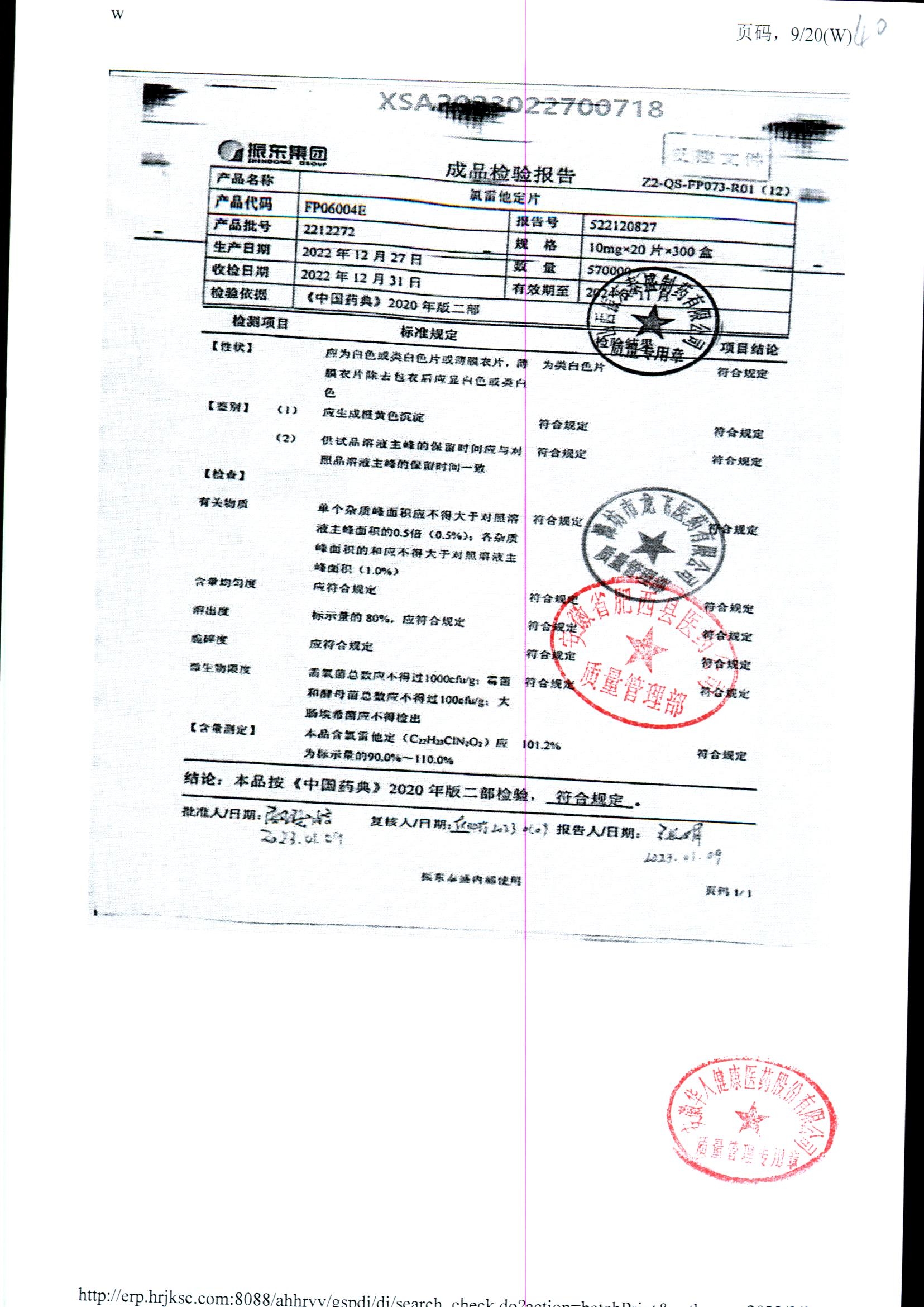| 氯雷他定片 | 10mg*20s | 1809111(2/2) | 查看詳情 |