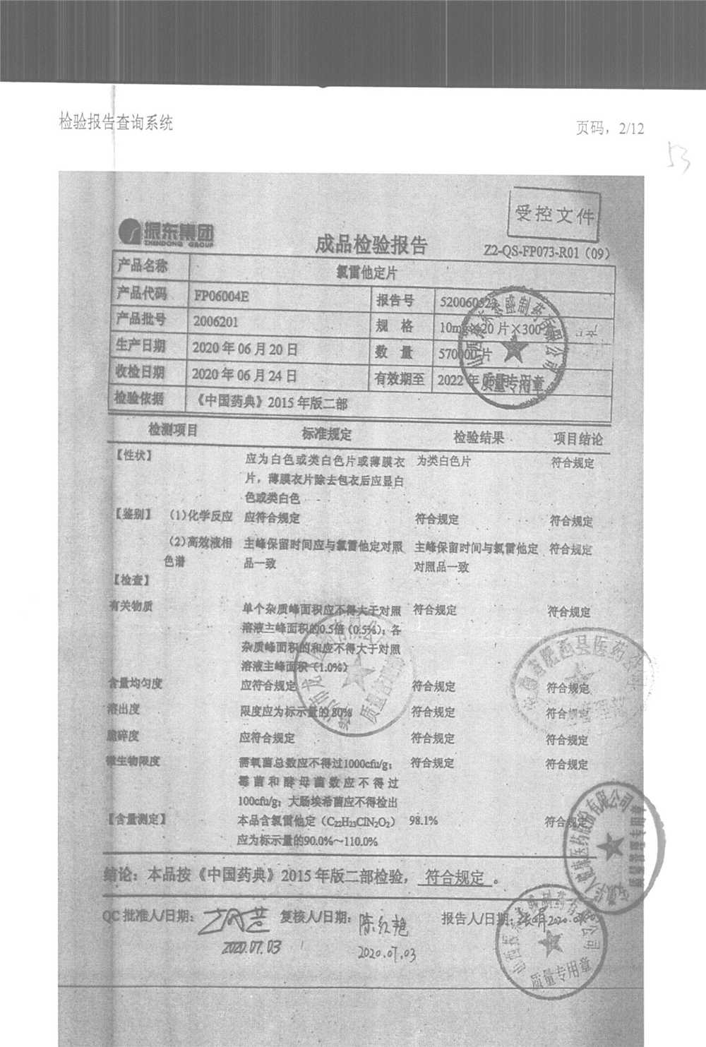| 氯雷他定片 | 10mg*20s | 2008161(2/2) | 查看詳情 |