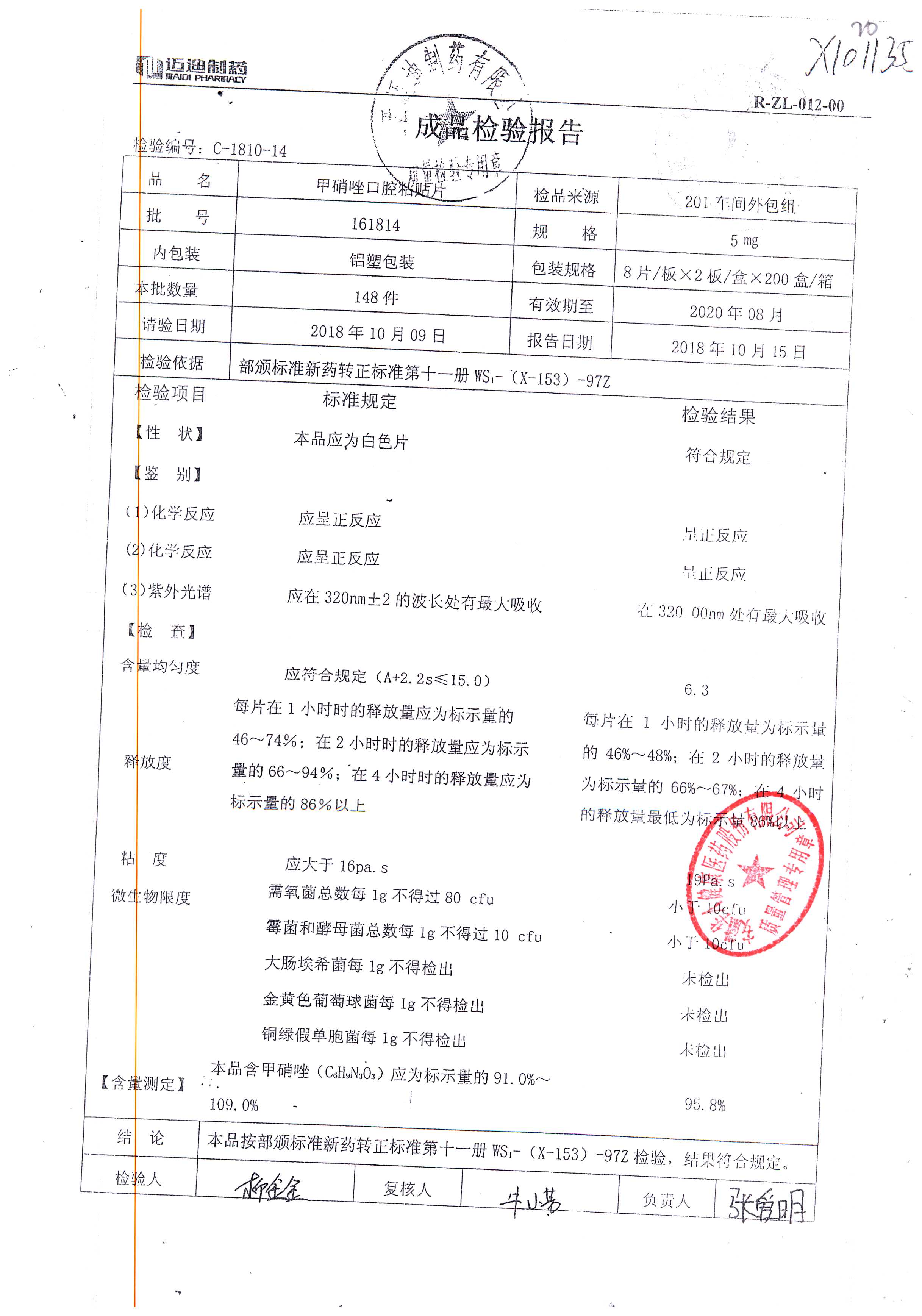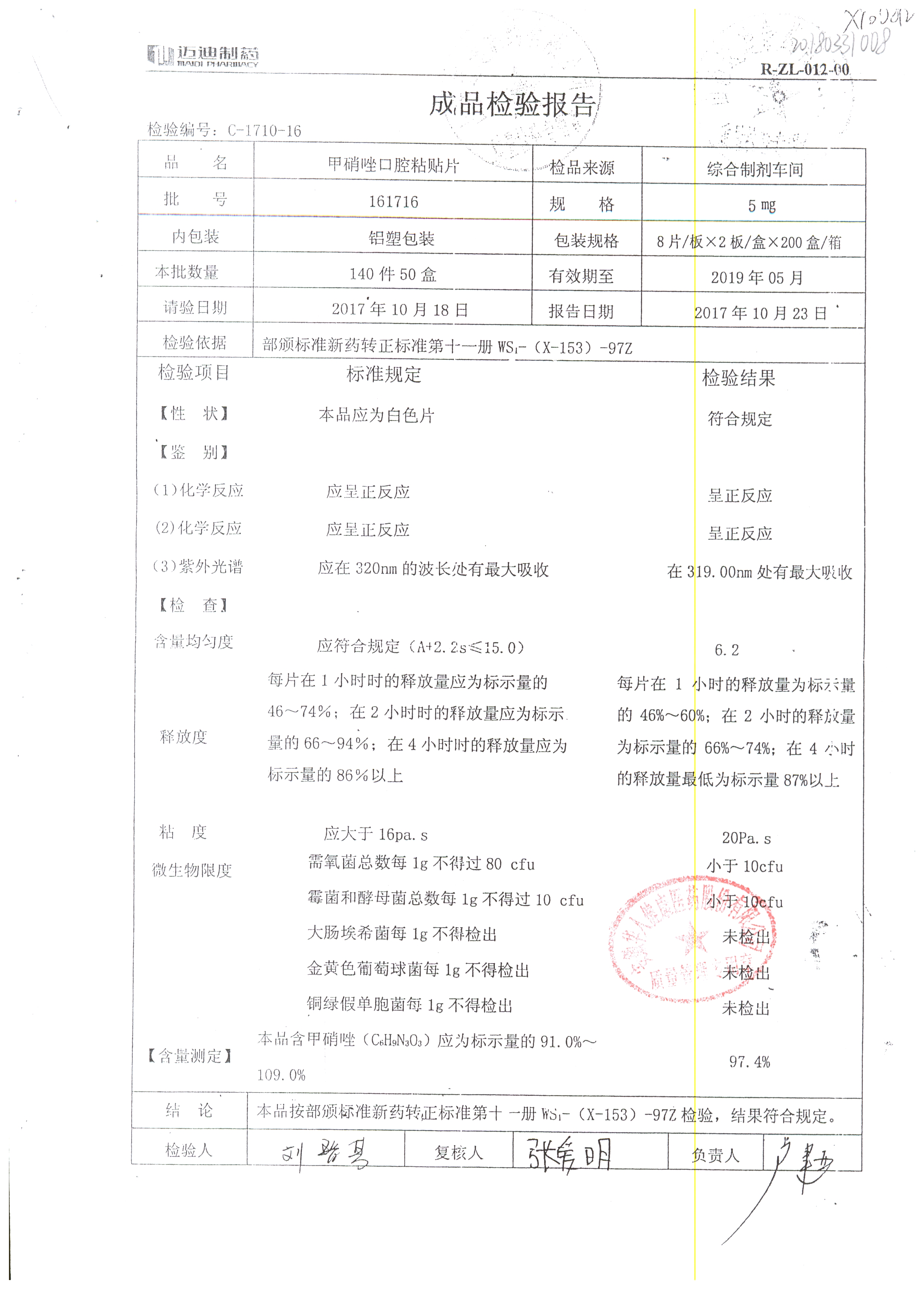甲硝唑口腔粘貼片 5mg*16片 161810 查看詳情