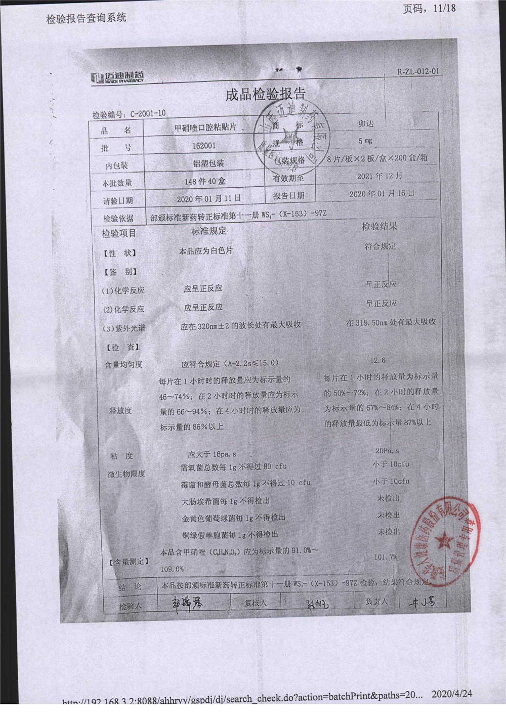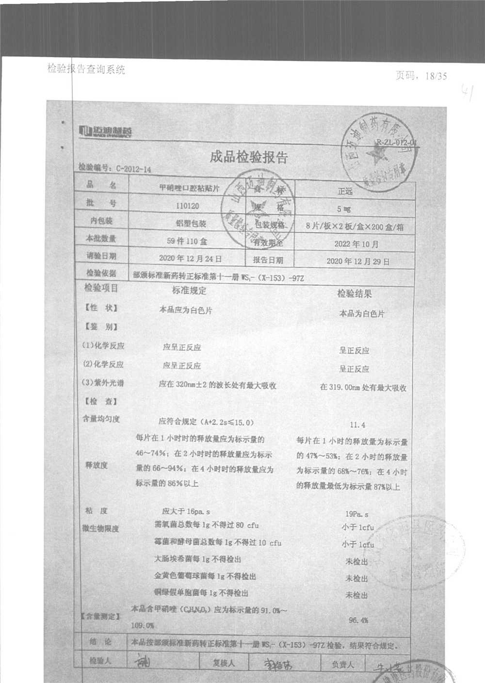 甲硝唑口腔粘貼片 5mg*16片 162013 查看詳情