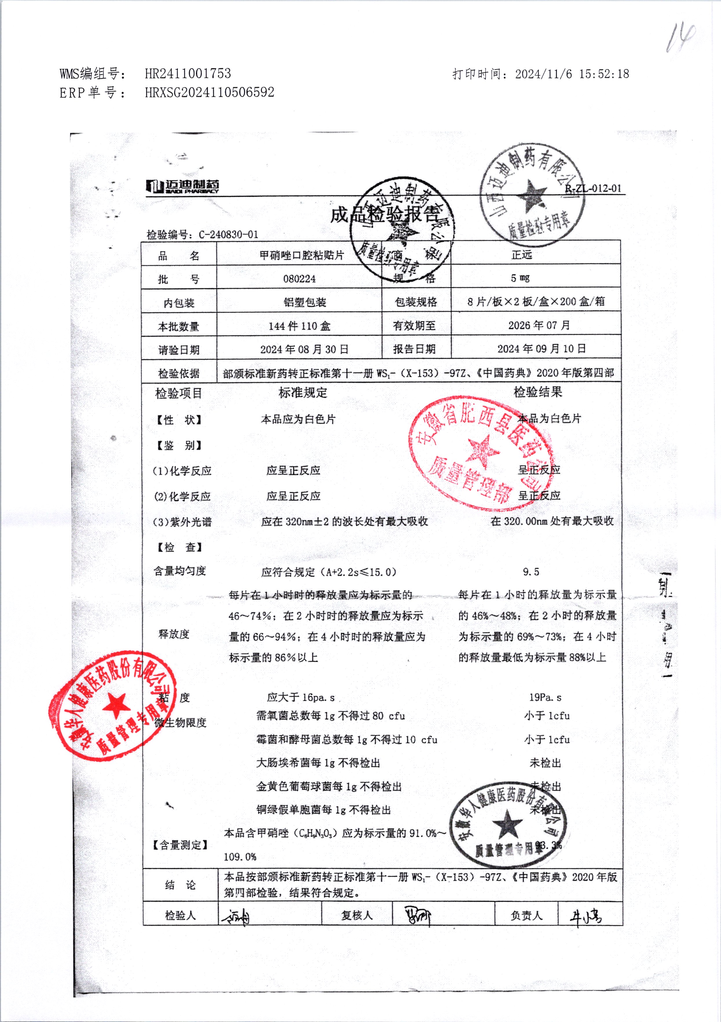 甲硝唑口腔粘貼片 5mg*16片 080224 查看詳情