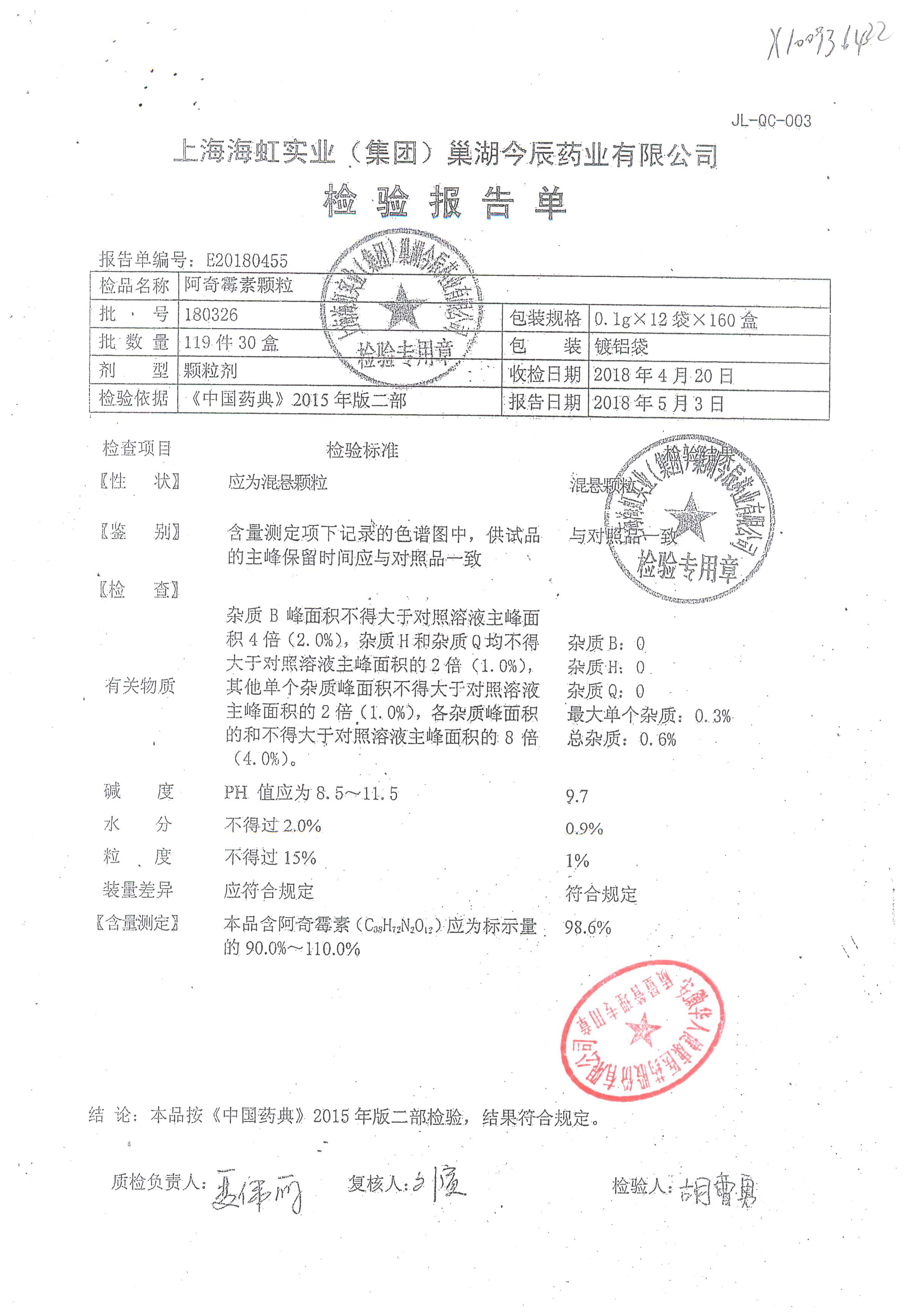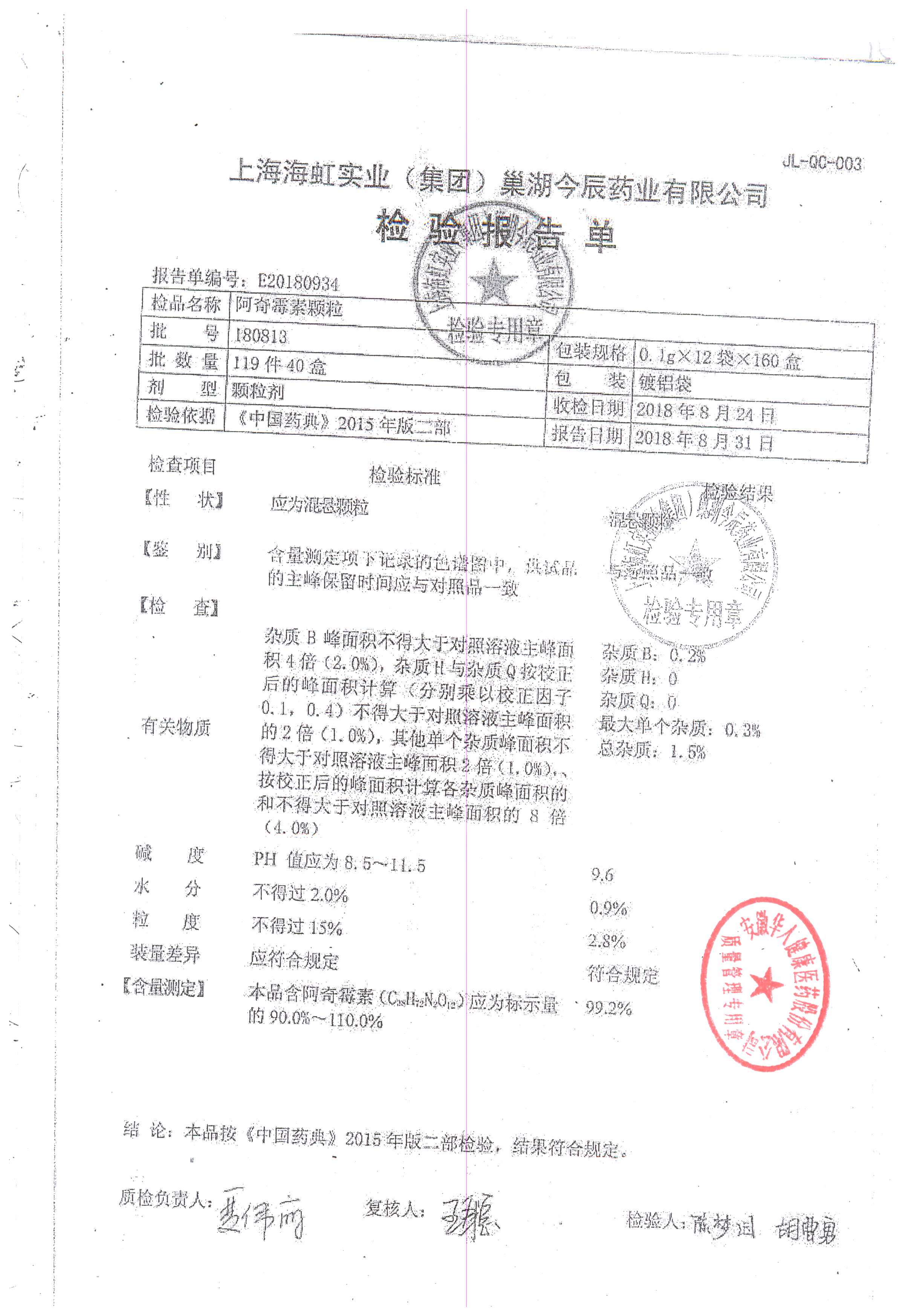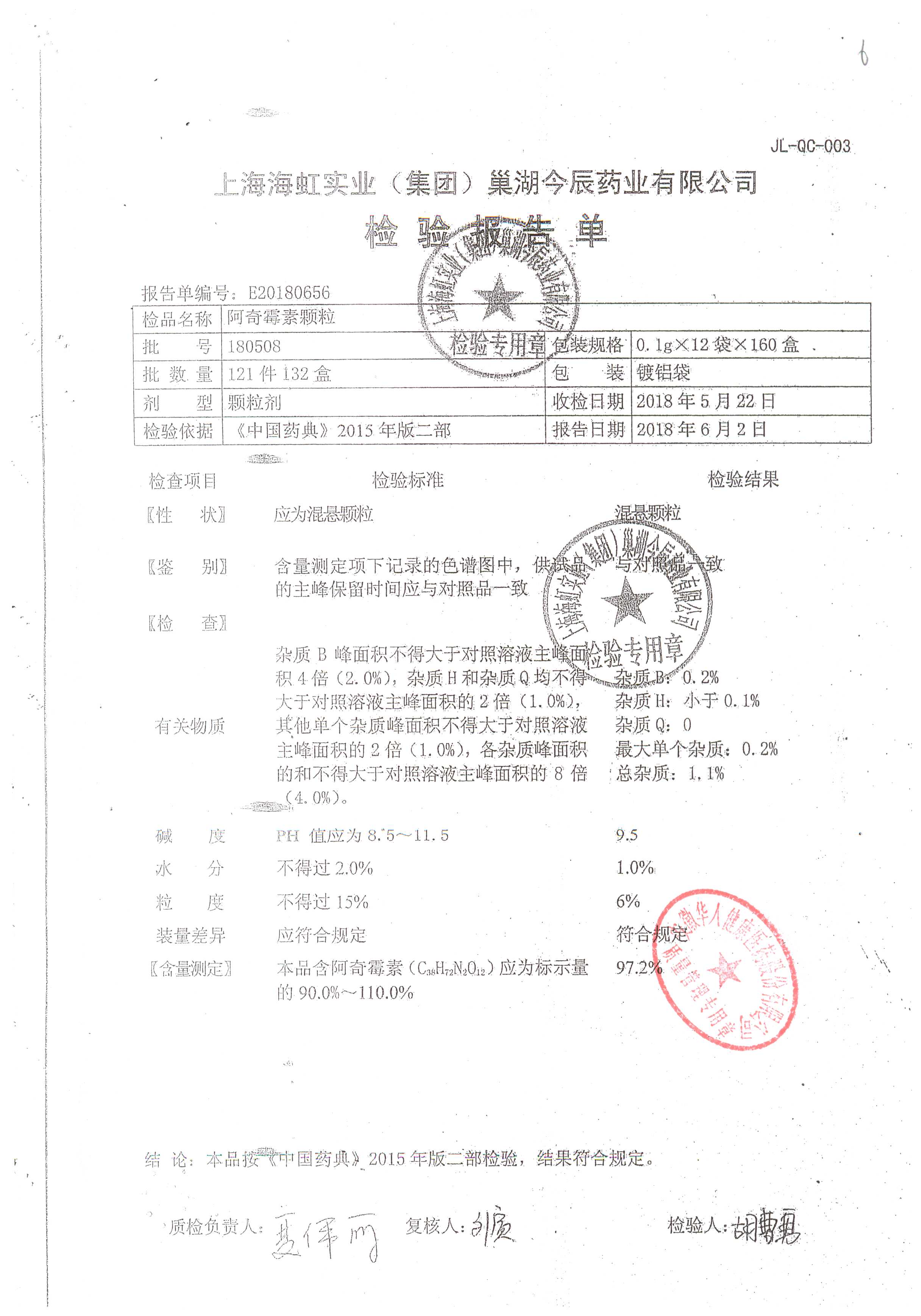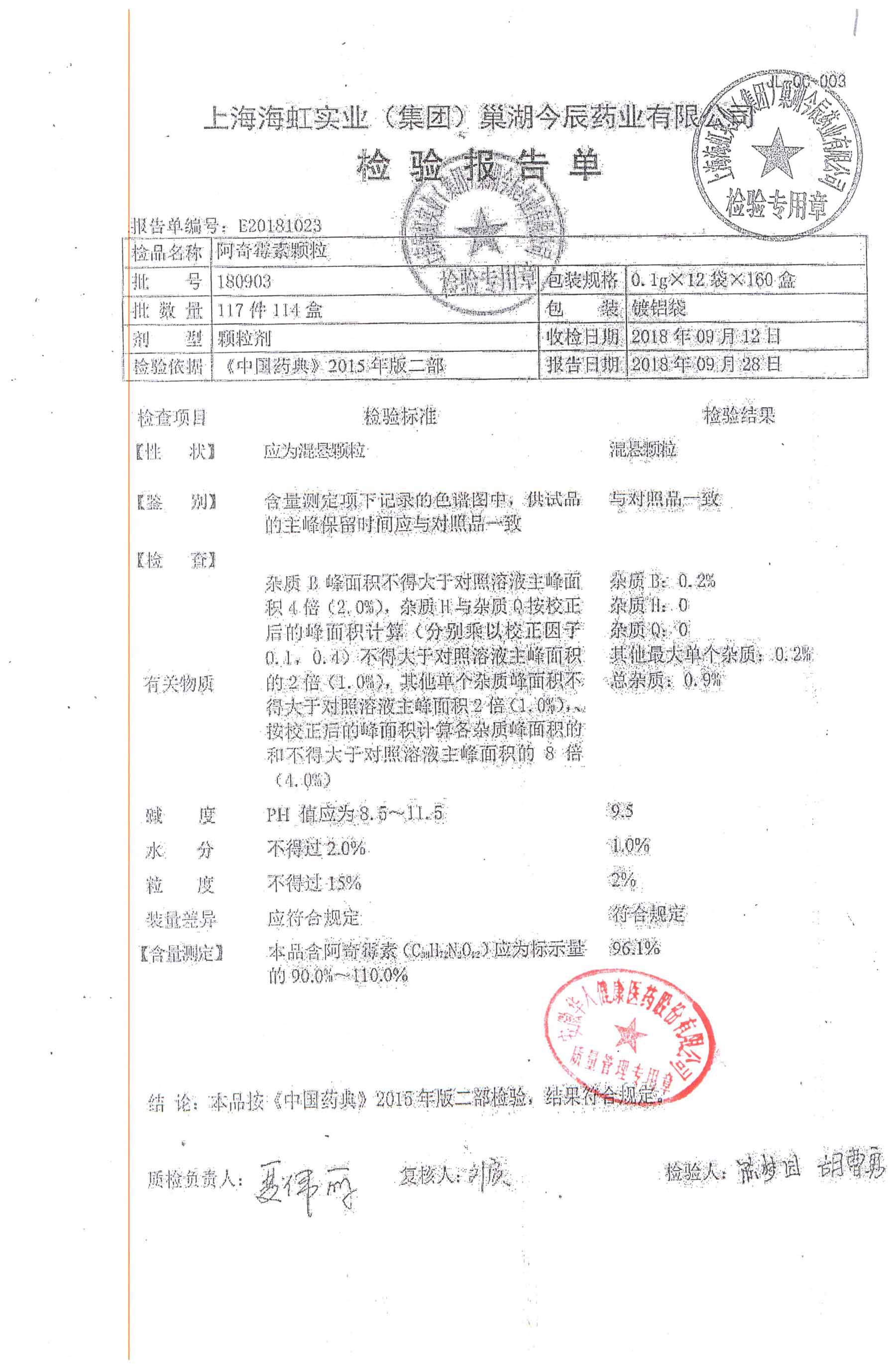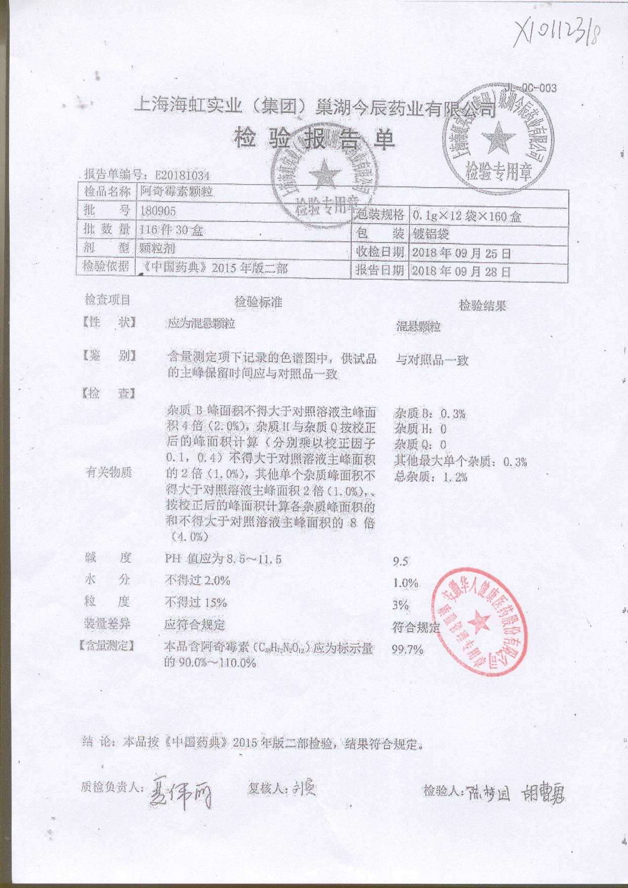 阿奇霉素顆粒 0.1g-12袋 180813 查看詳情
