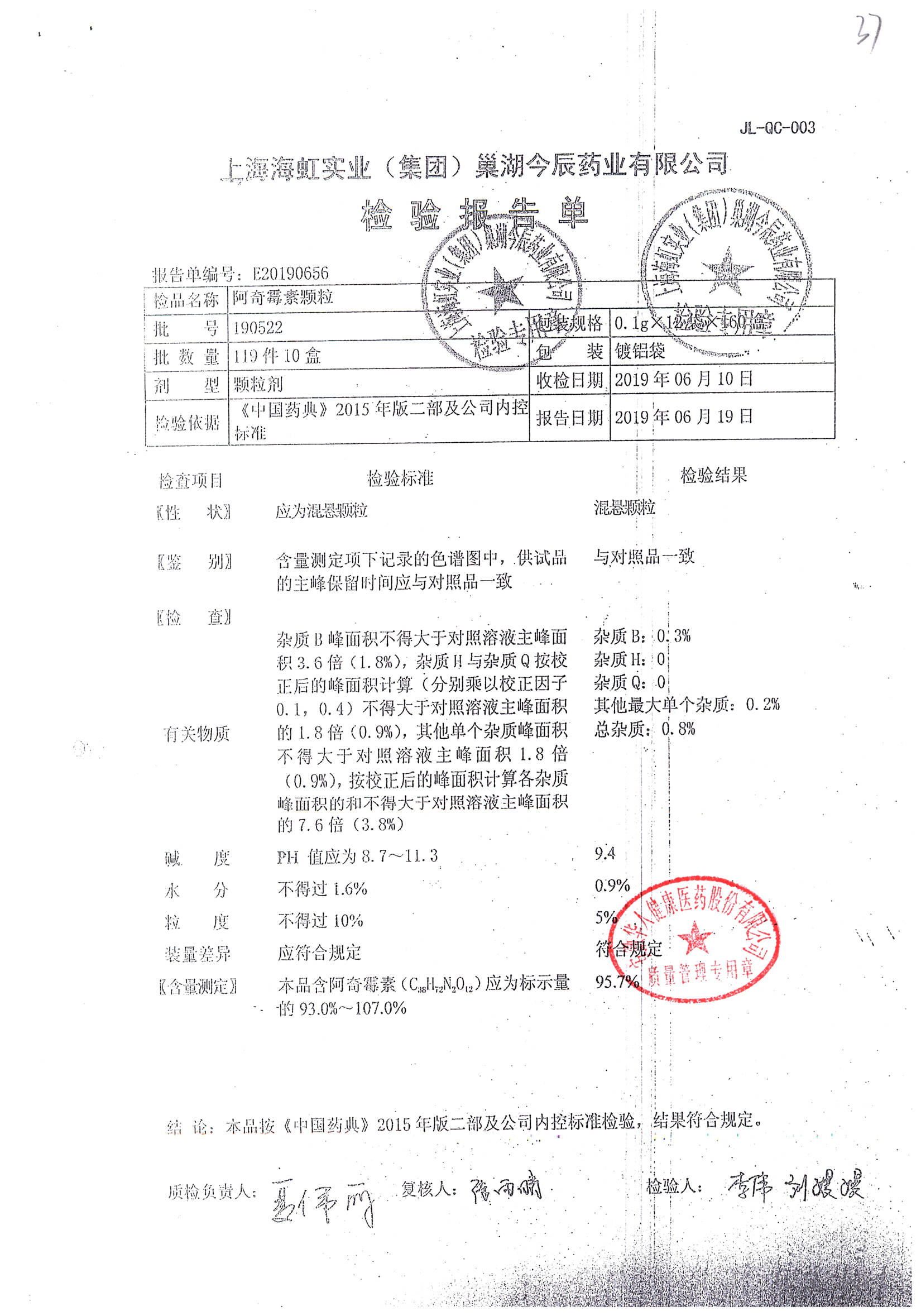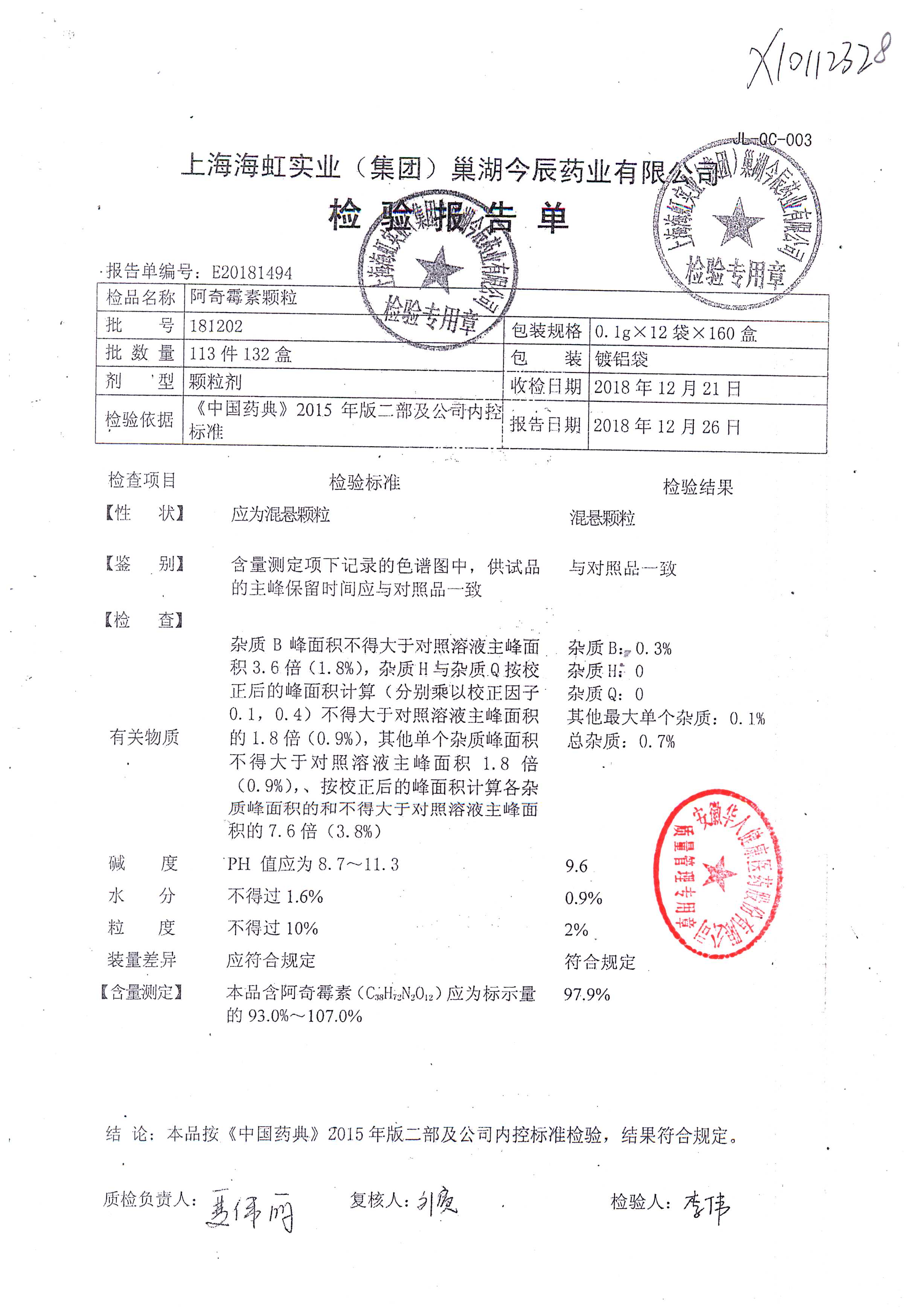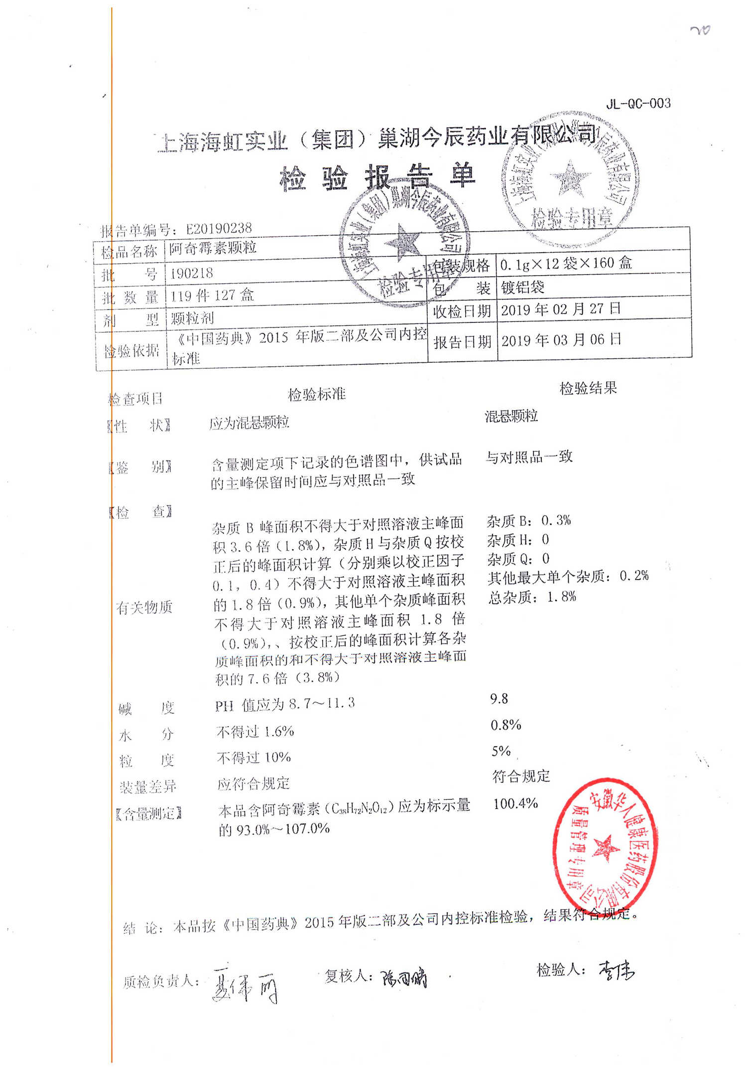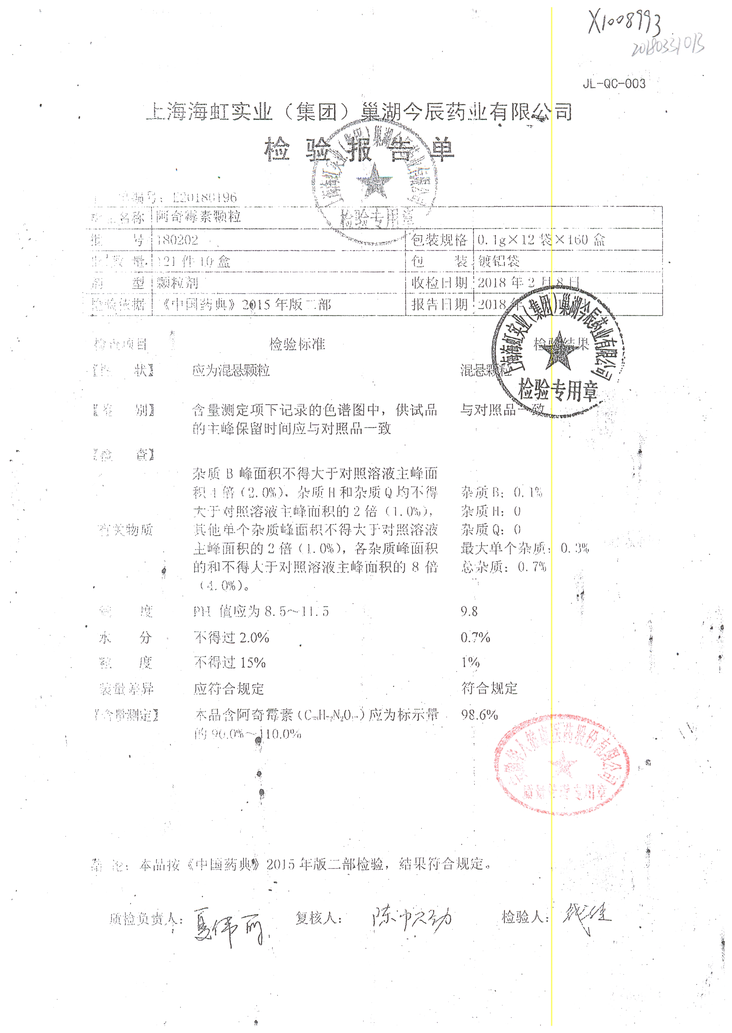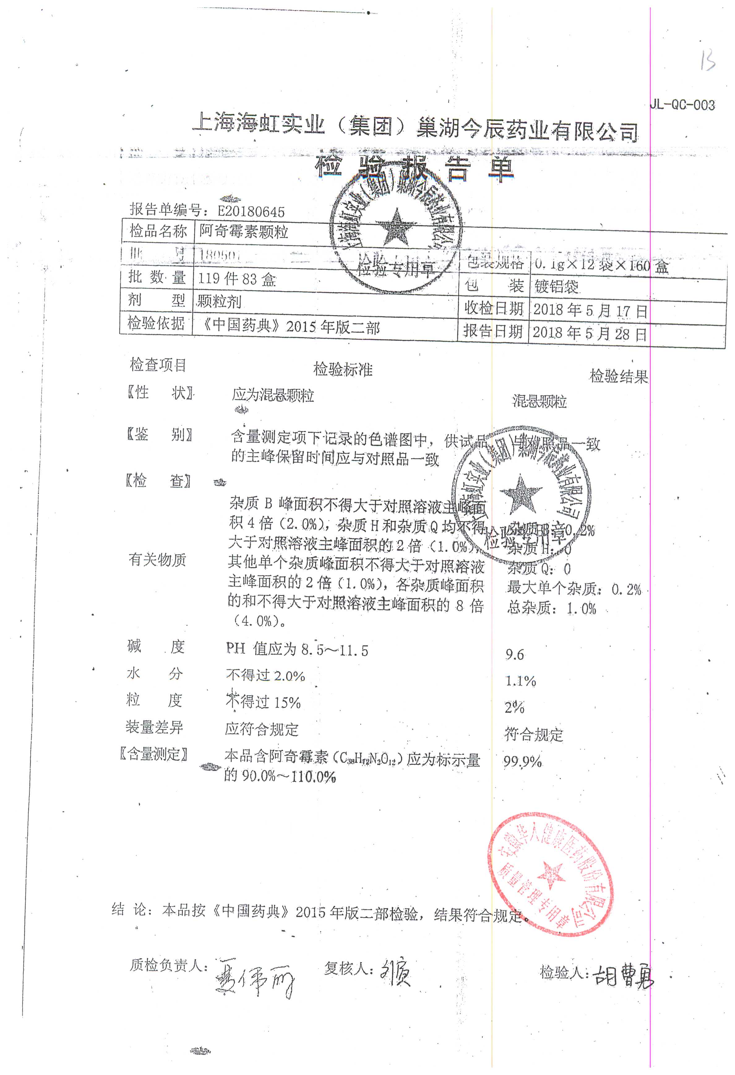 阿奇霉素顆粒 0.1g-12袋 180813 查看詳情