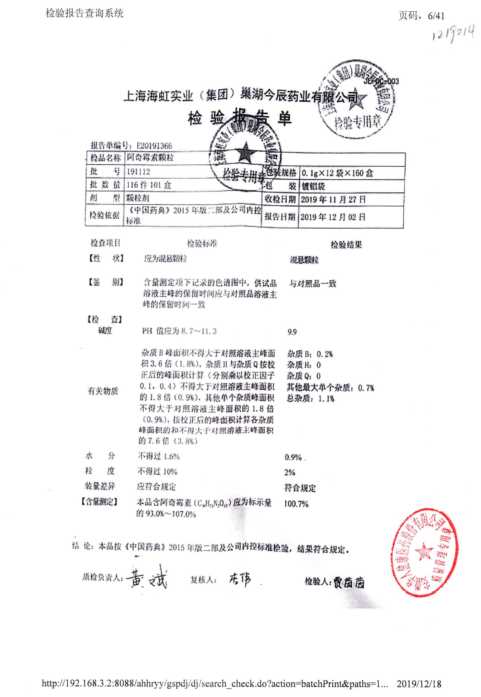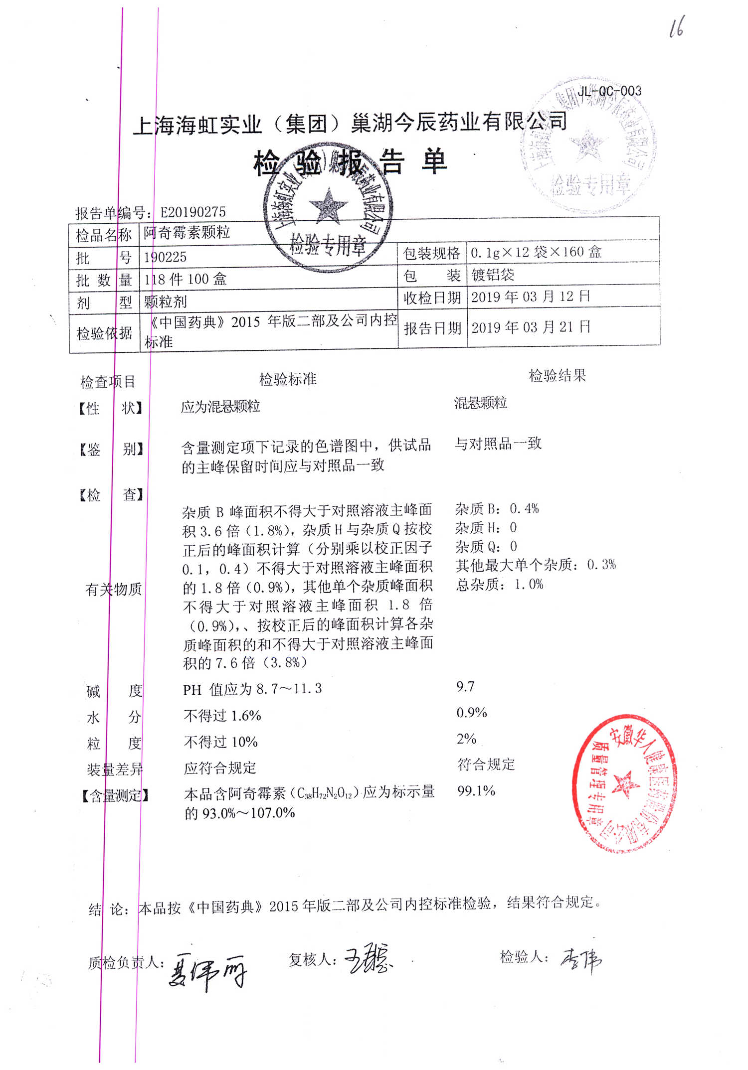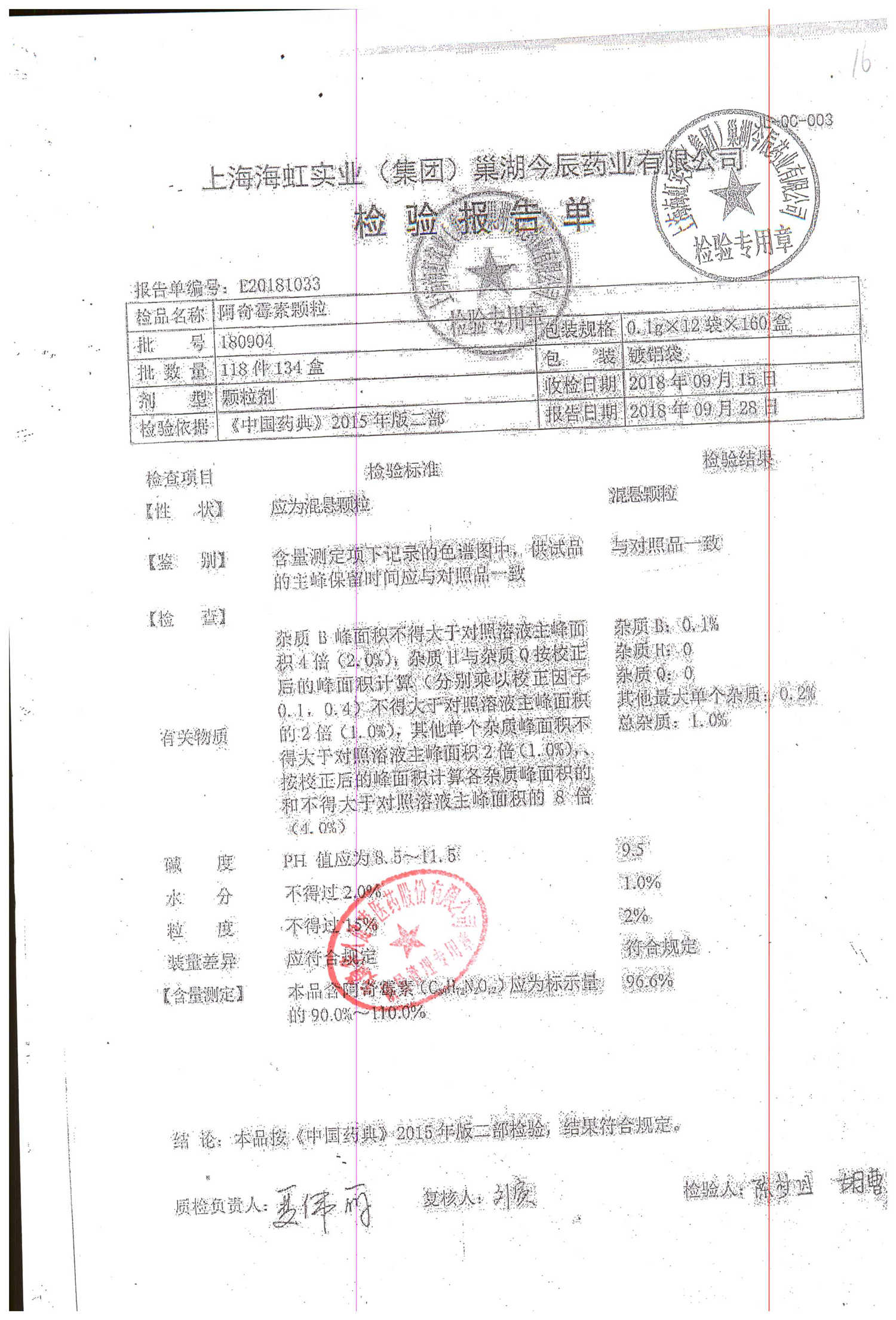 名稱 規格 批號 藥檢報告