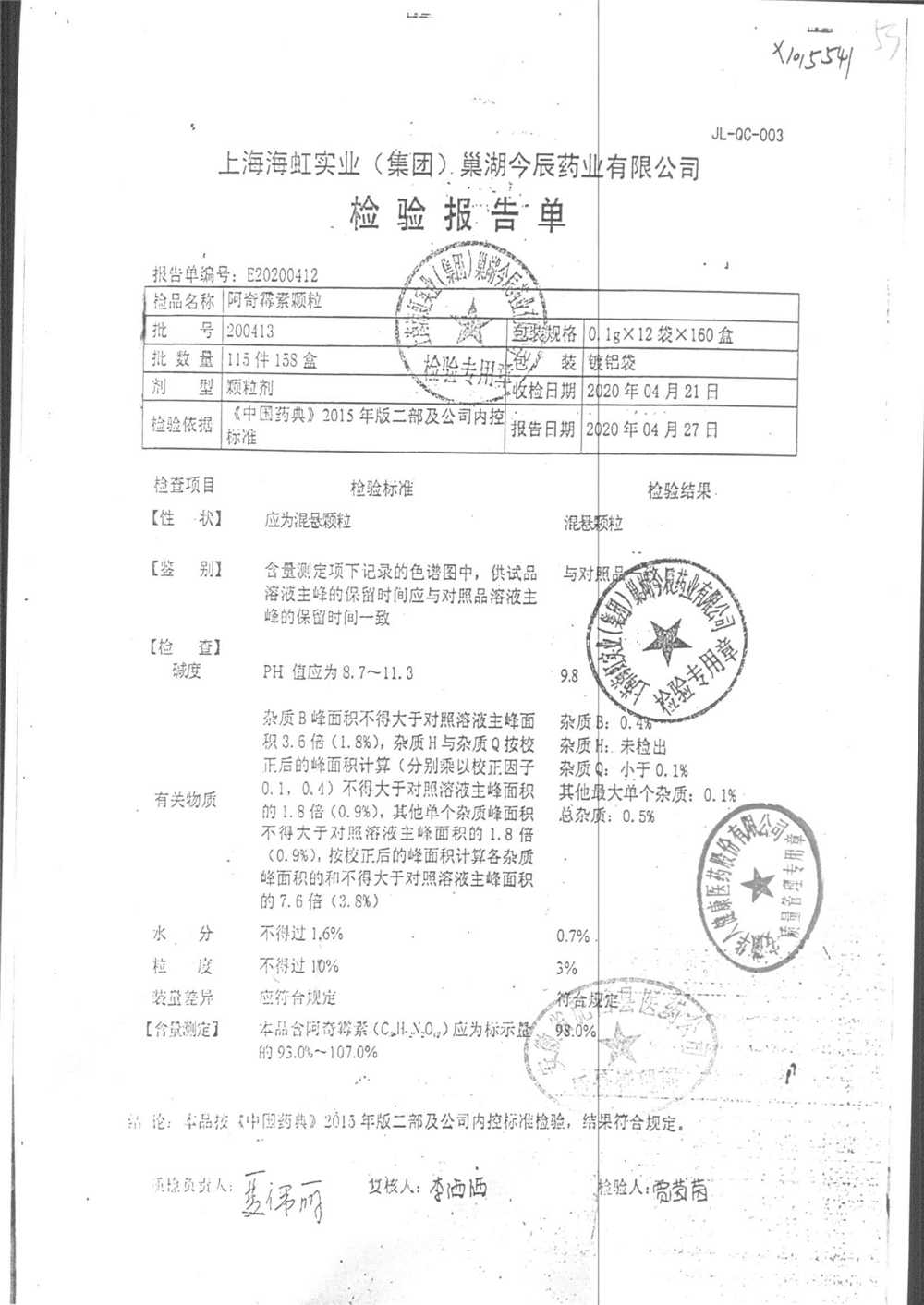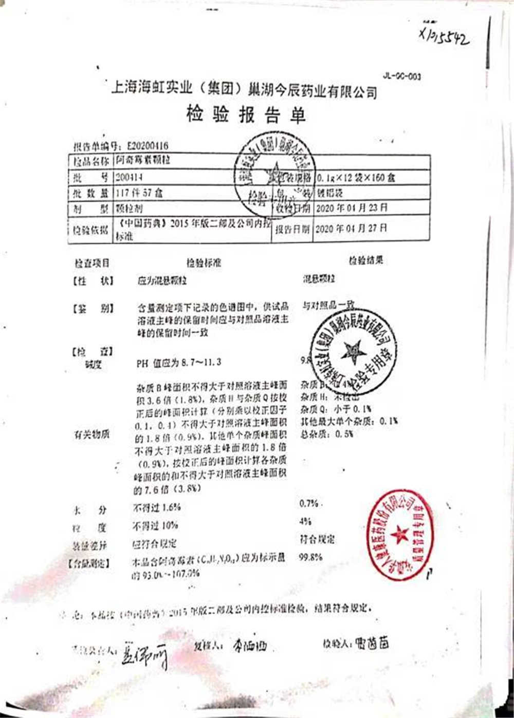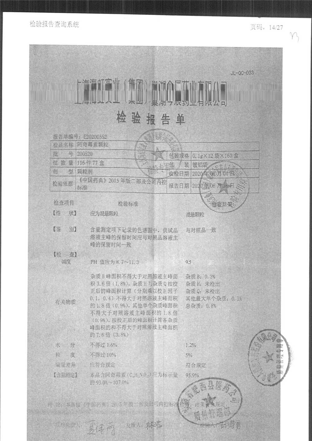 名稱 規格 批號 藥檢報告