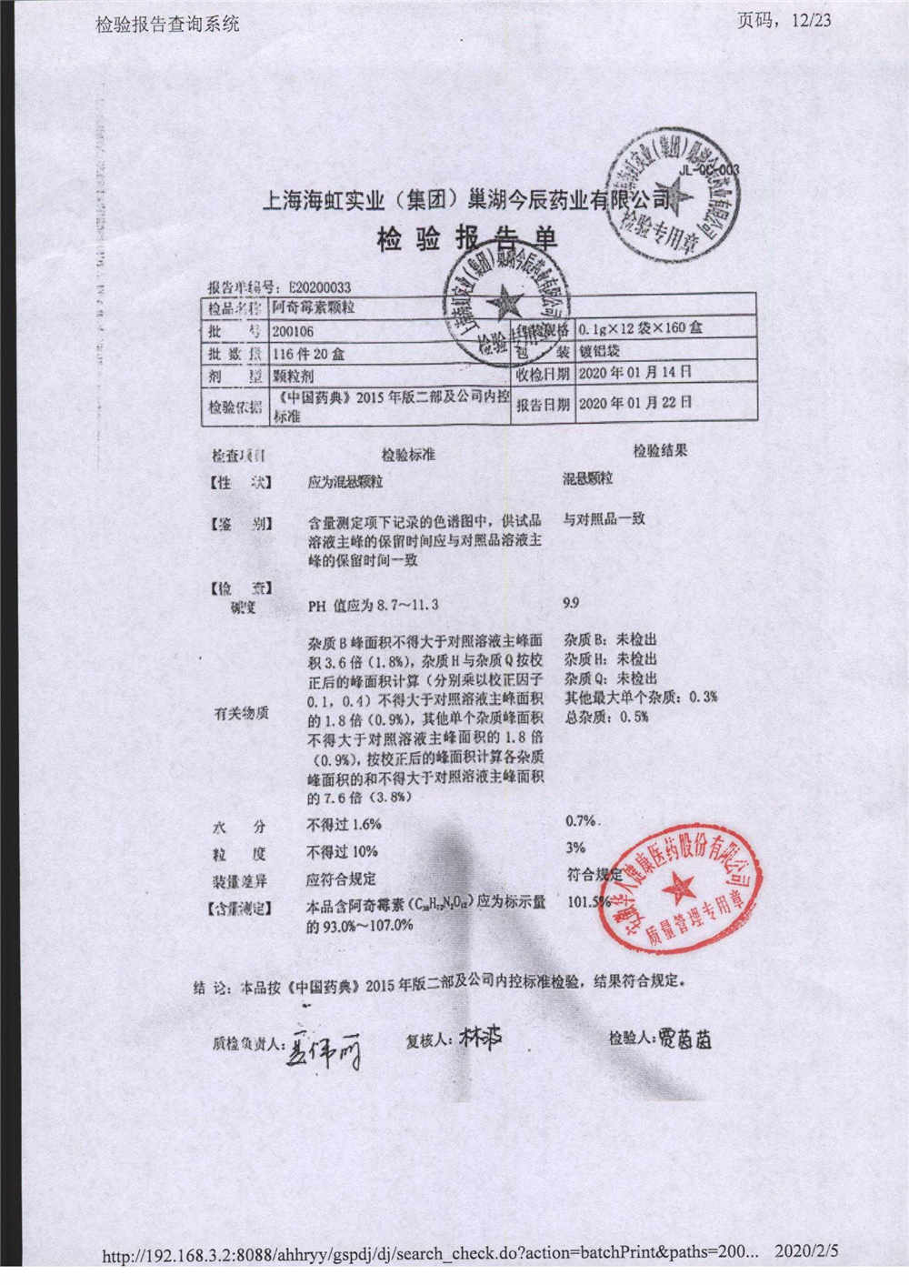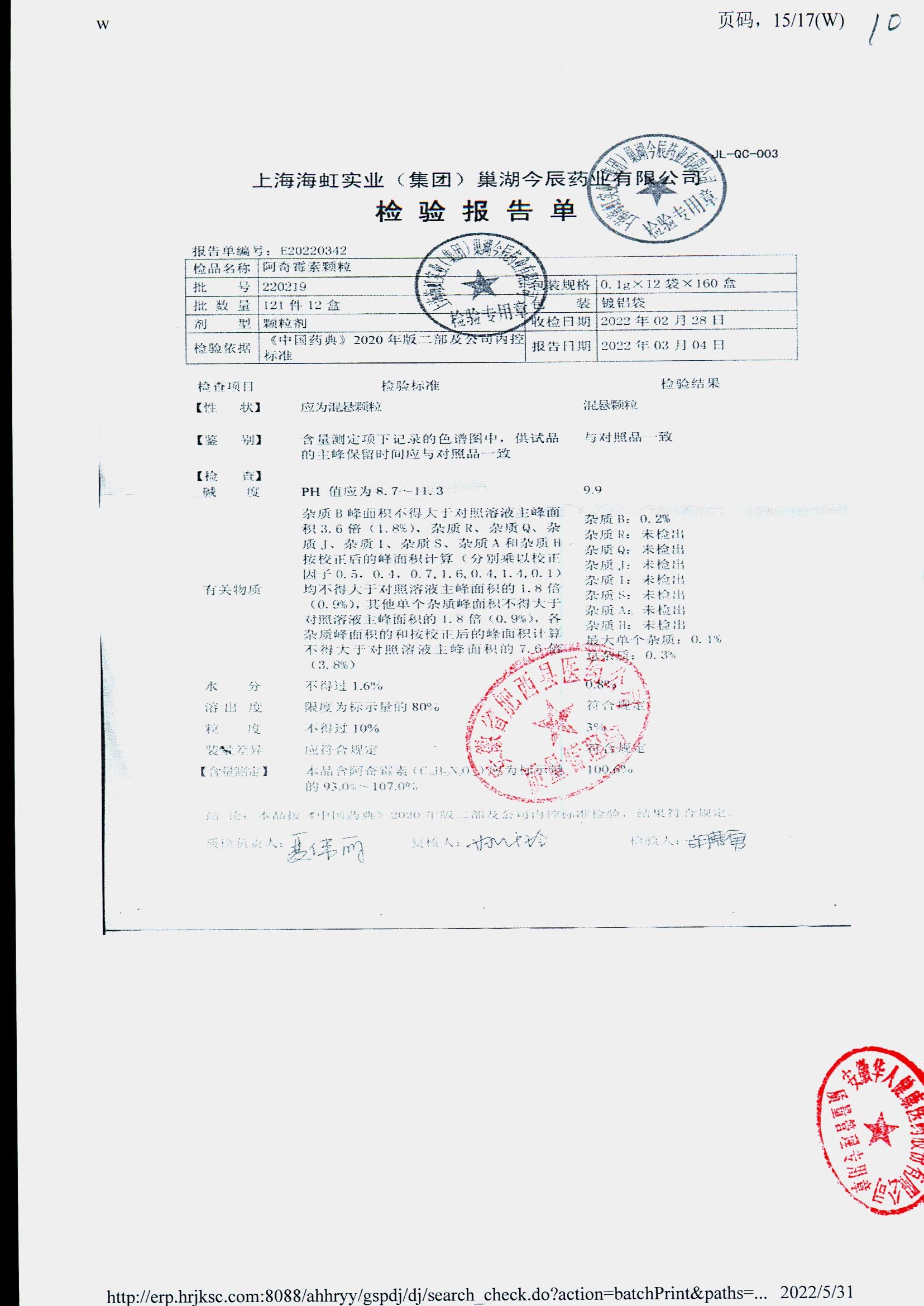 阿奇霉素顆粒 0.1g-12袋 220218 查看詳情