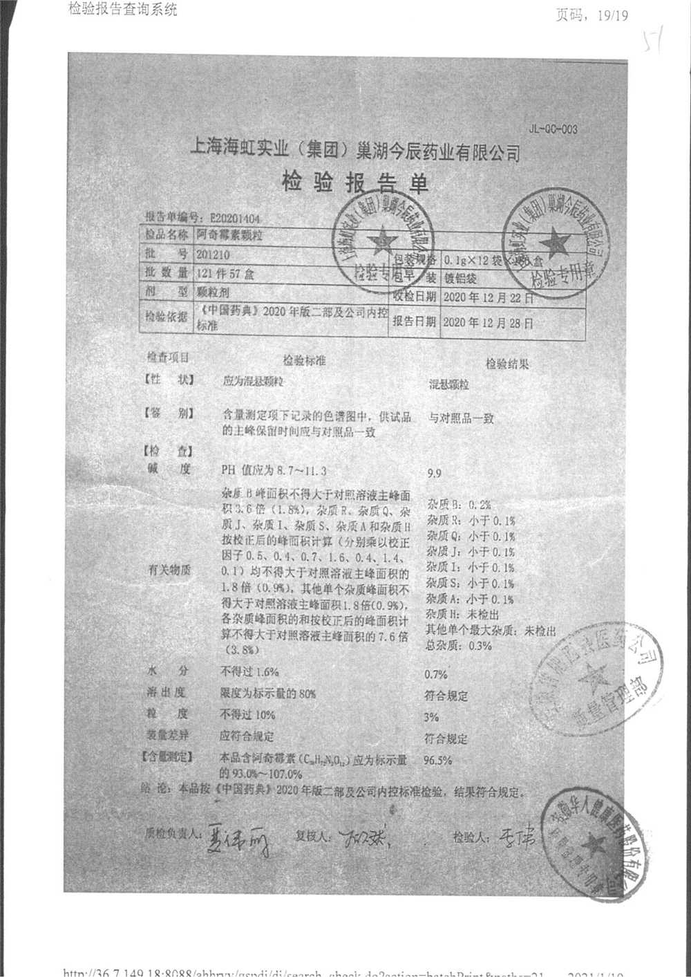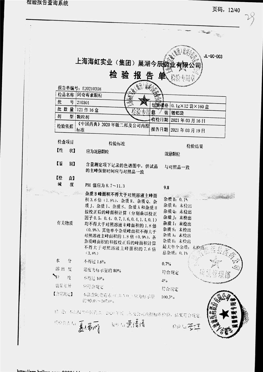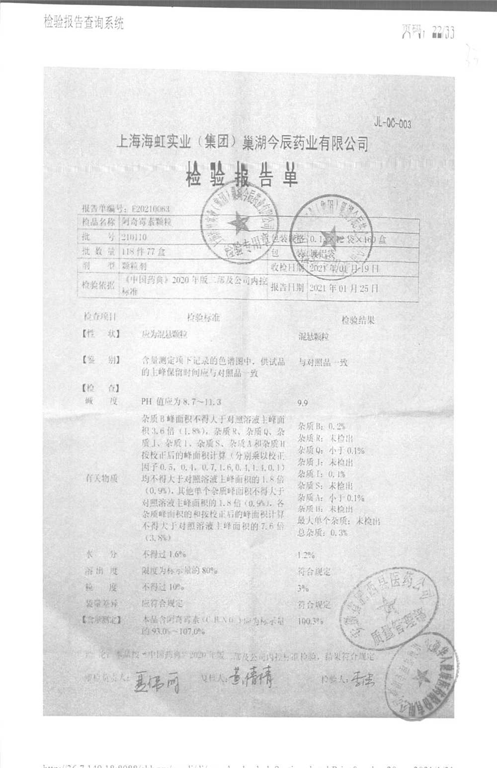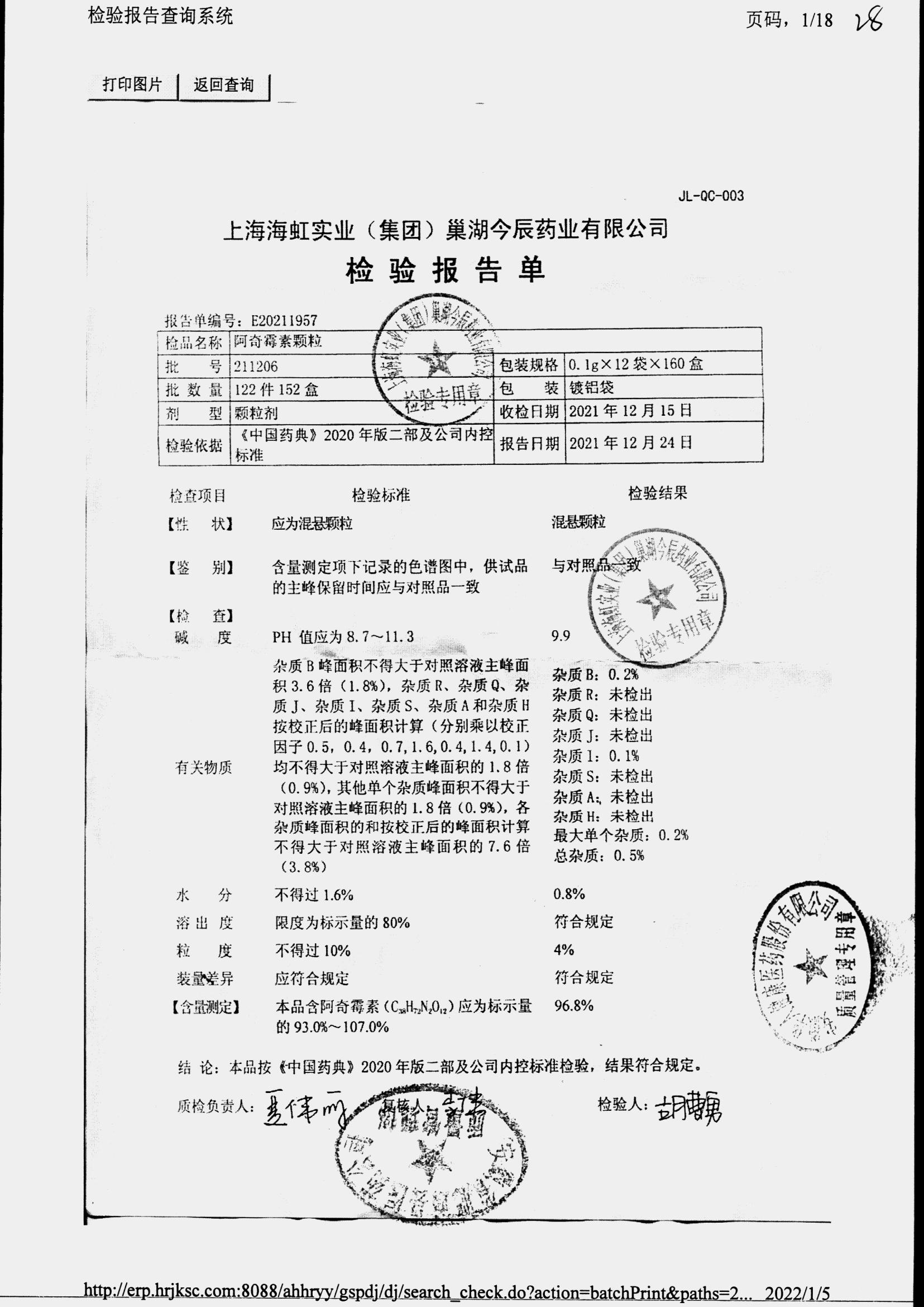 阿奇霉素顆粒 0.1g-12袋 210301 查看詳情