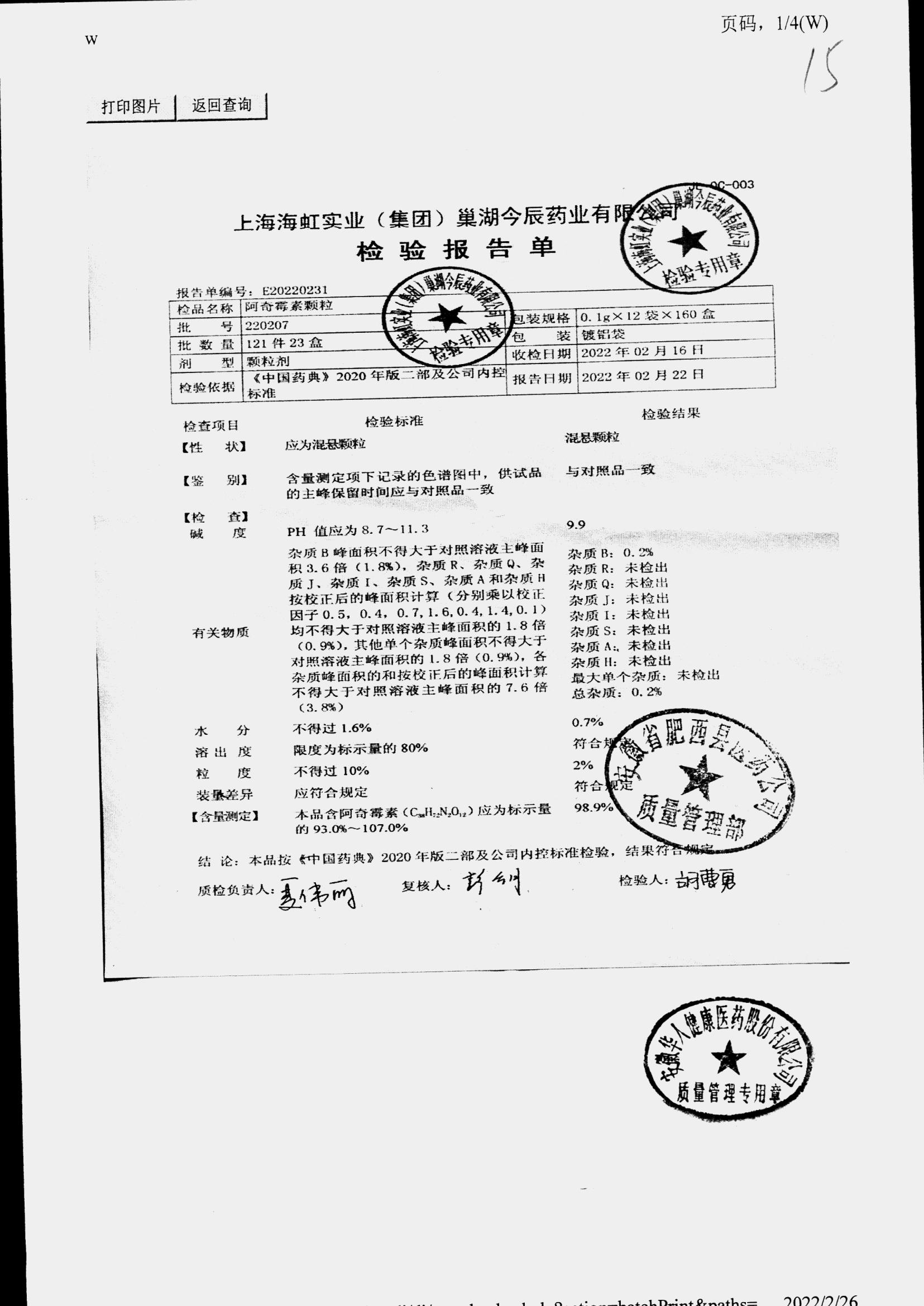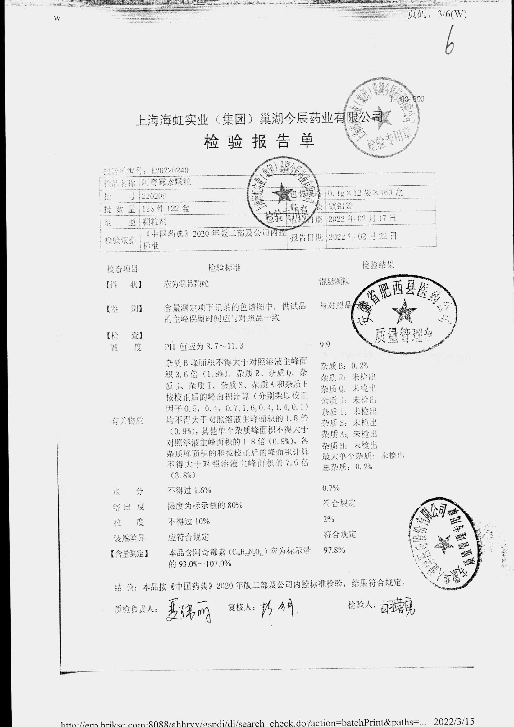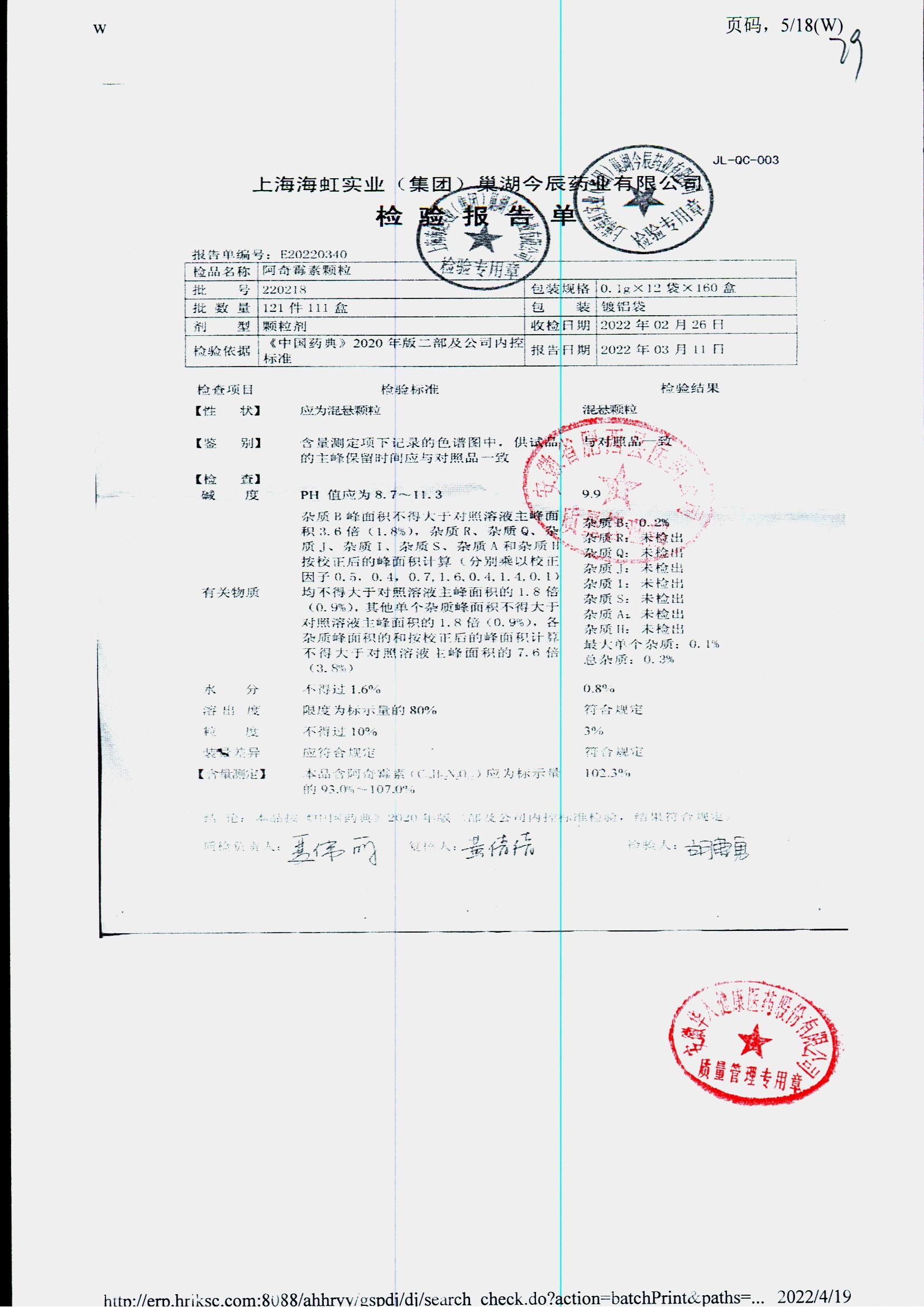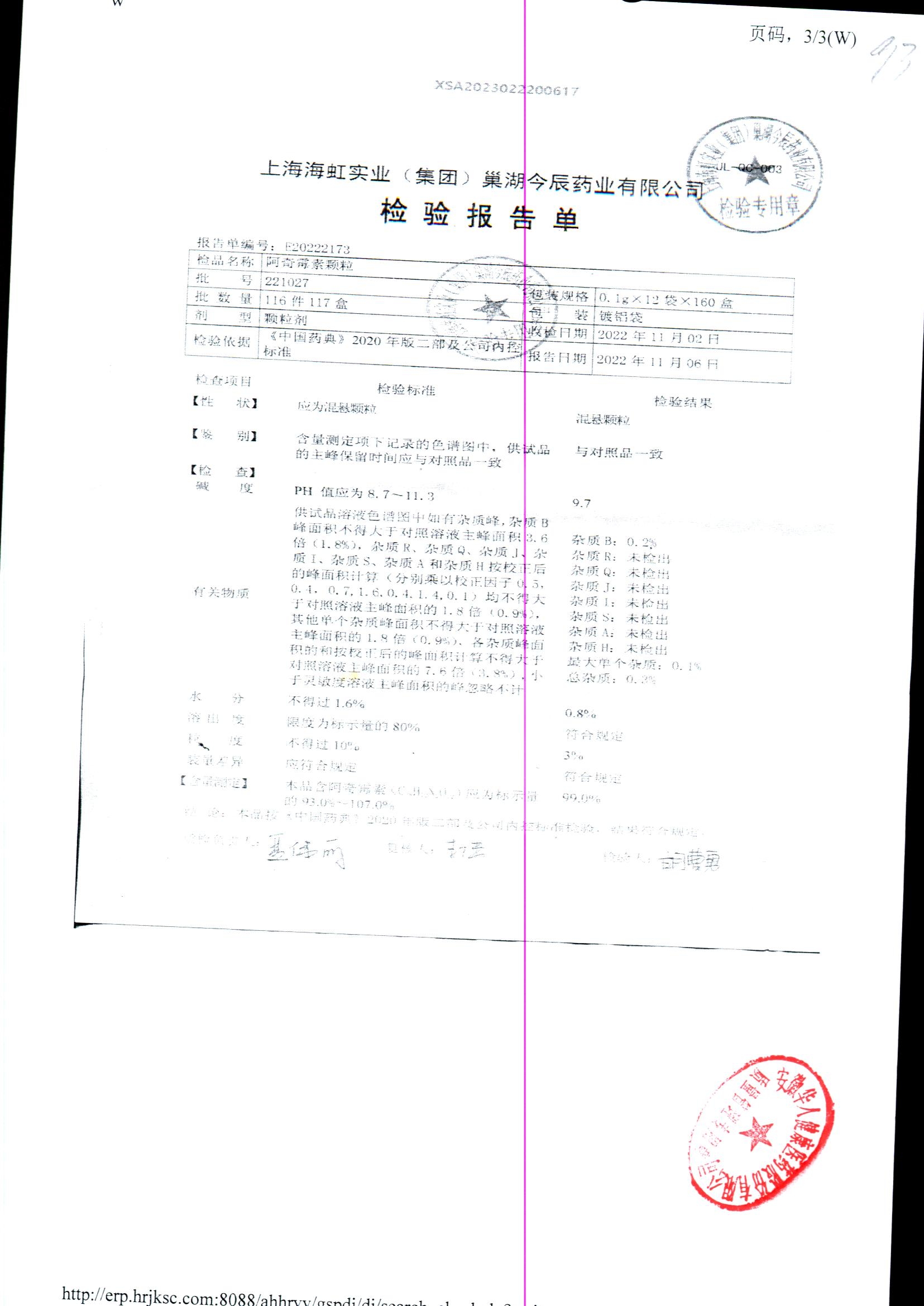 阿奇霉素顆粒 0.1g-12袋 220208 查看詳情