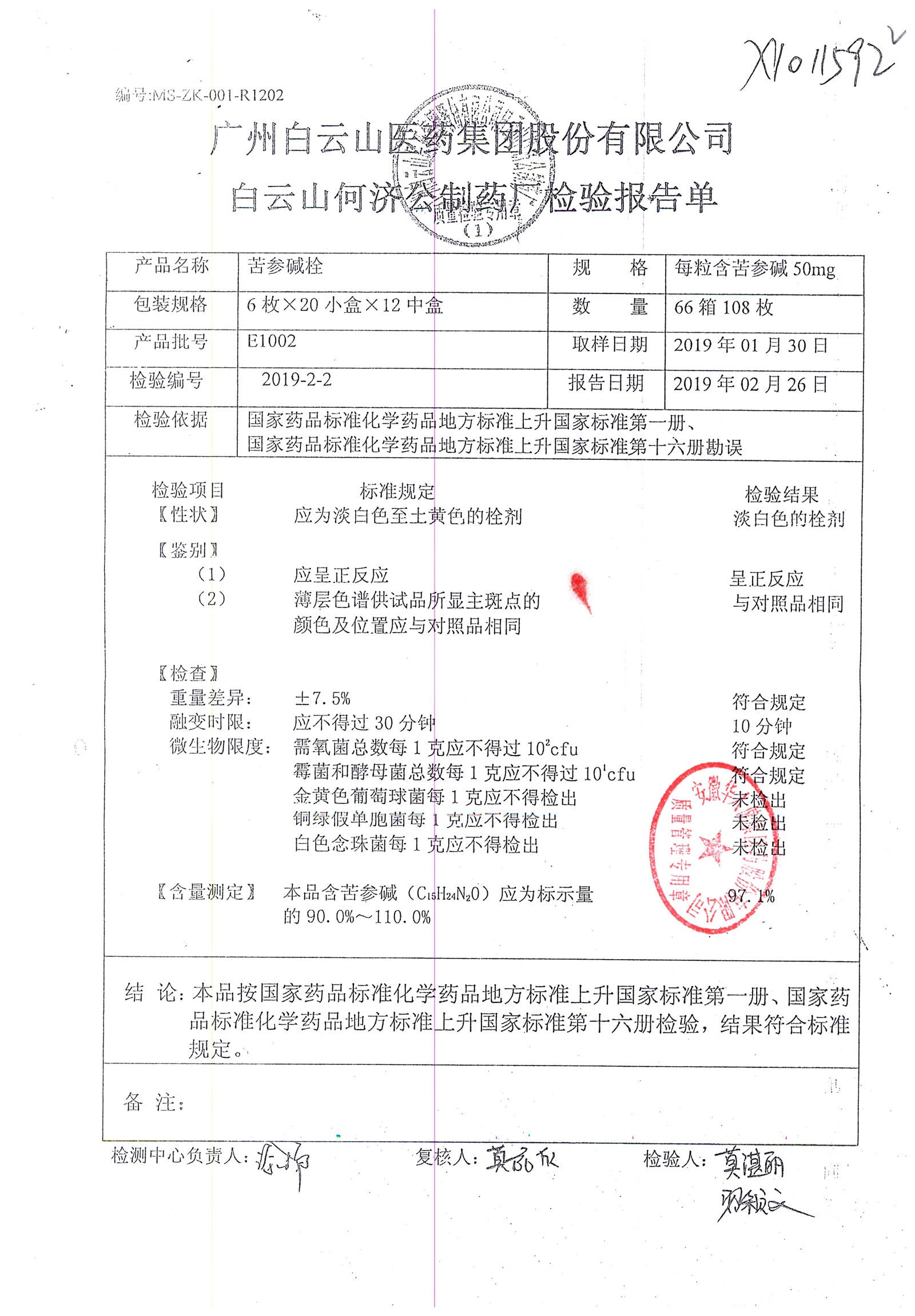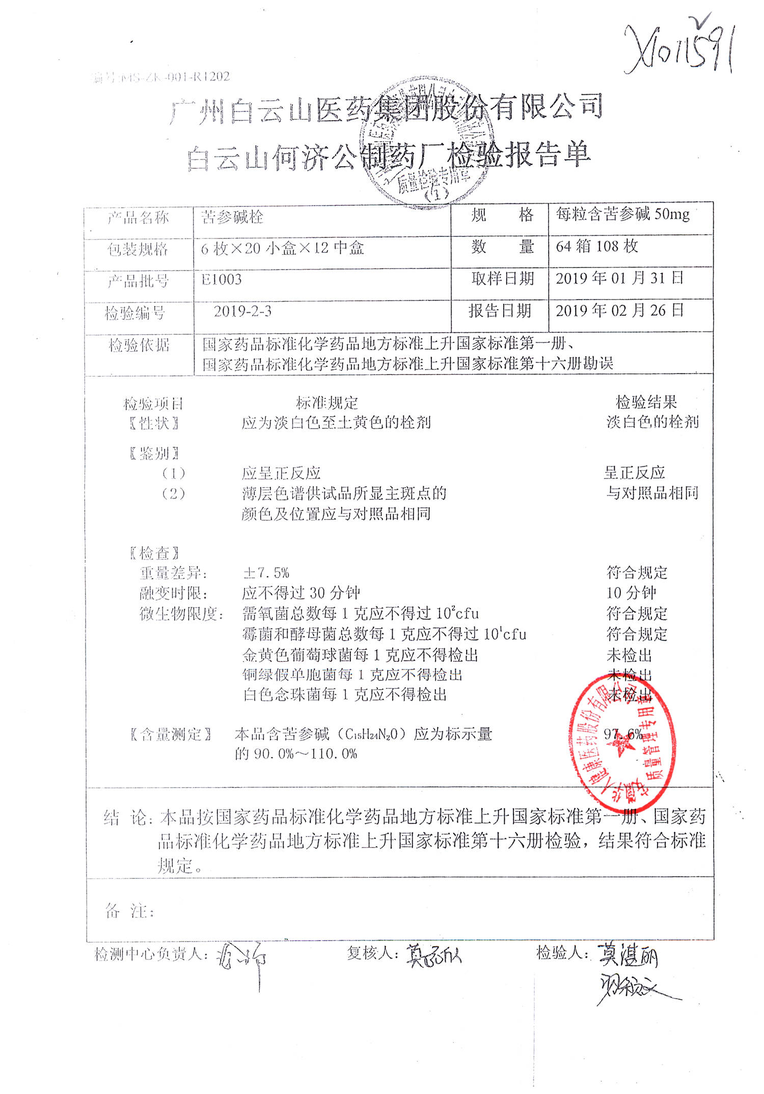 苦參堿栓 50mg*6枚 C1003 查看詳情